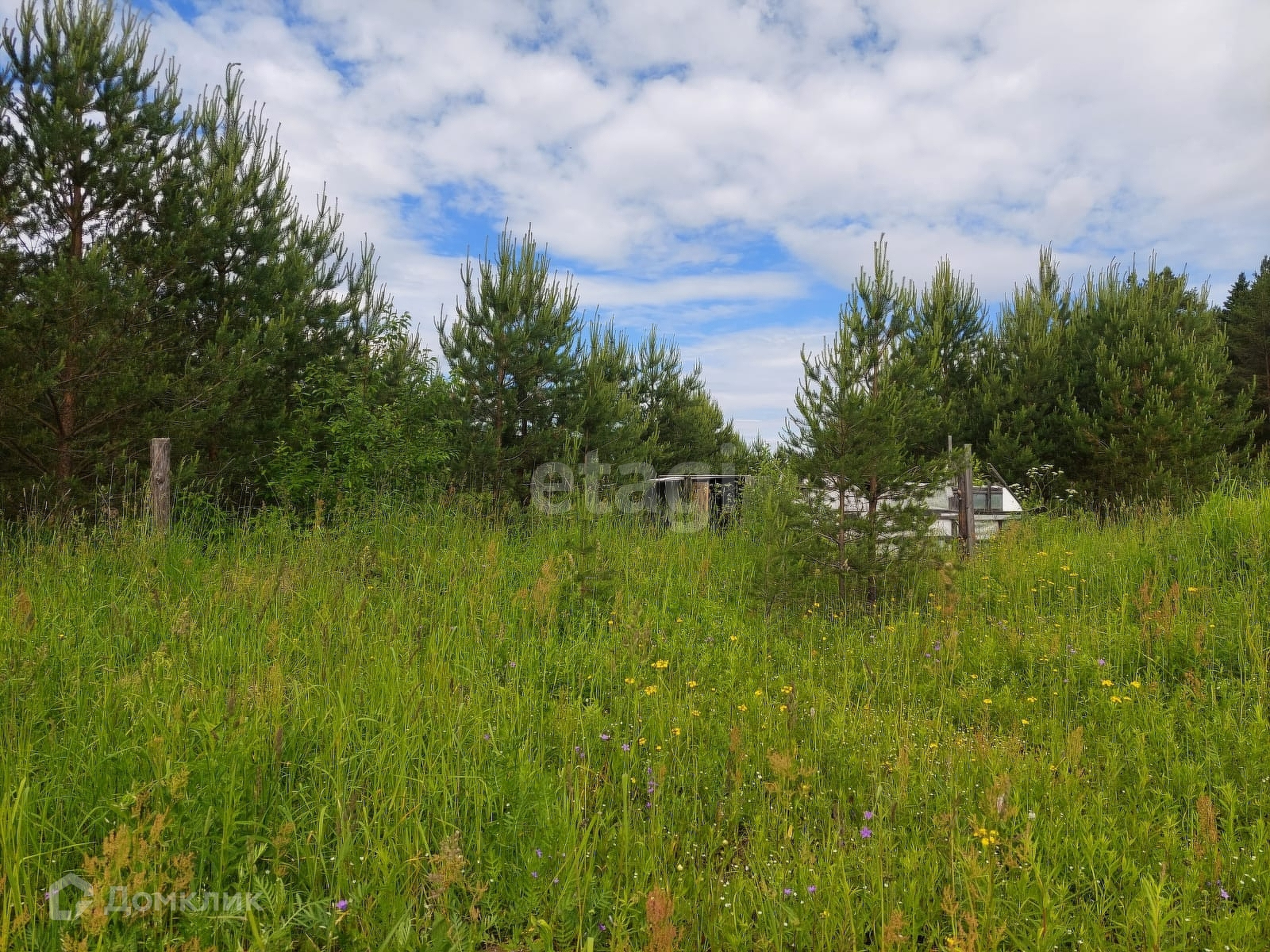 Границы участка отмечены столбами.