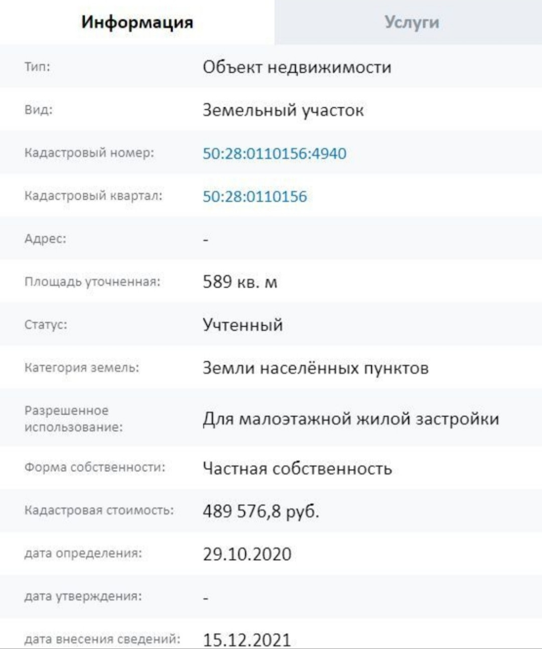 Площадь участка 5.89 сот.