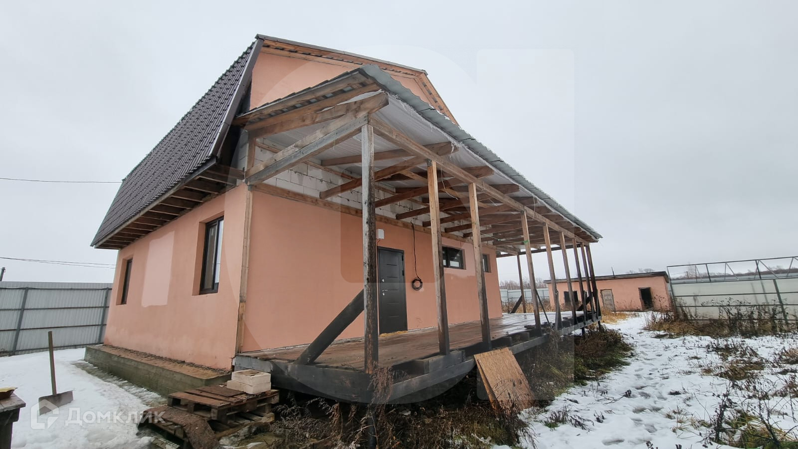 Дом блочный, оштукатурен и покрашен. На участке имеется также колодец для полива и теплица.