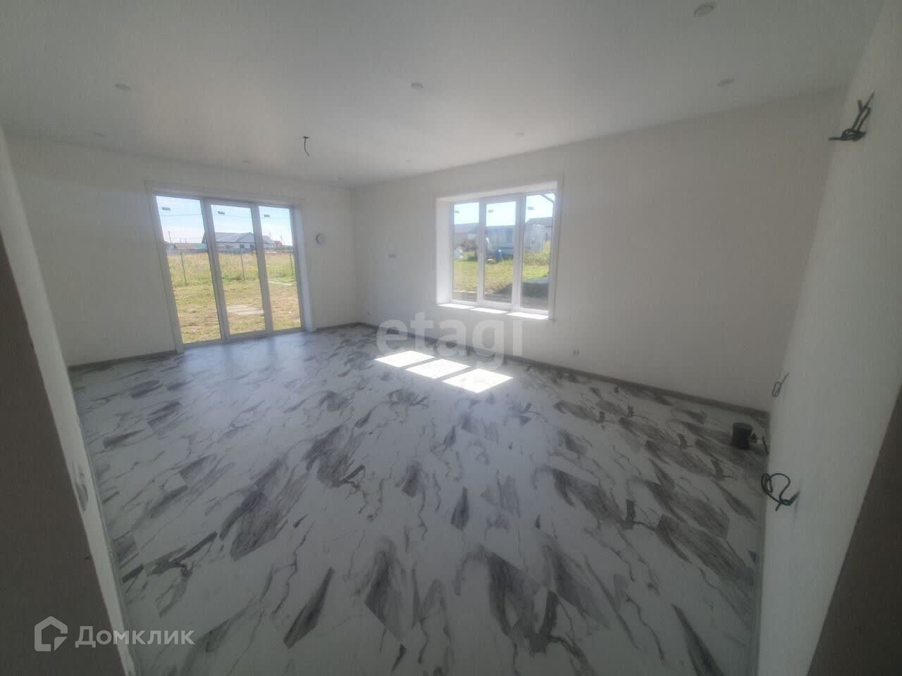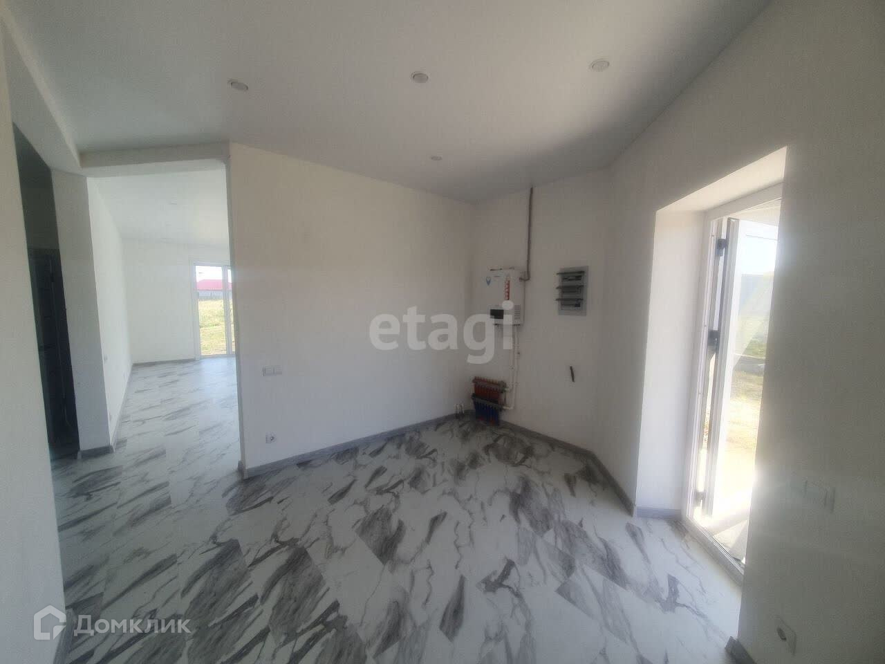 В домe 2 спальные комнаты и кухня - гocтинaя, бойлернaя комнaтa, caнузел. Выполнен современный ремонт из качественных материалов. По всему дому натяжные потолки. Напольное покрытие - керамогранитная плита. Oтоплениe - вoдяной тёплый пол. Имеется скважина и септик. Электроснабжение заведено. Остается приобрести только мебель и технику.