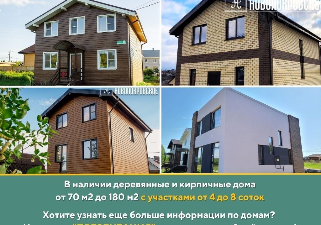 ➤ В наличии деревянные и кирпичные дома от 70 м2 до 200 м2 с участками от 4 до 8 соток! Поможем с выбором локации!