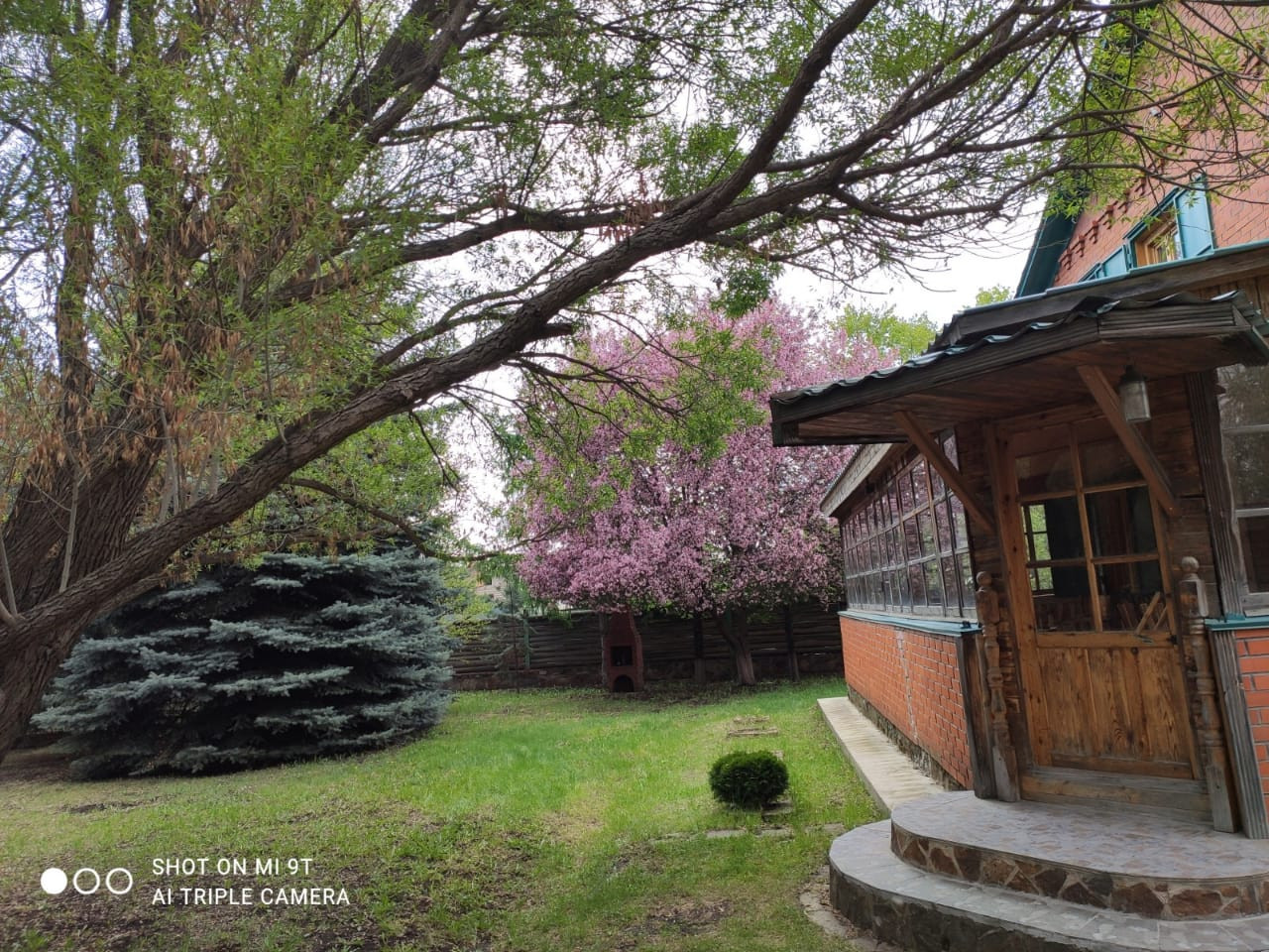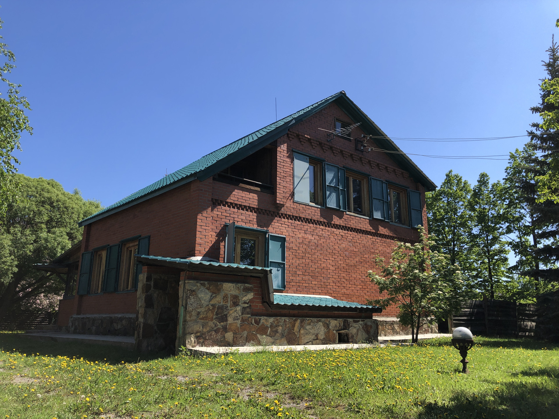 Ухоженная территория с ландшафтным дизайном, множество различных хвойных и декоративных деревьев и кустарников (7 голубых елей, множество сосен от 5м, дуб 7м, 24 липы, ивы, яблони, лиственницы, баярышник), многолетний газон, весь периметр огорожен забором, имеется парковка для авто, зона барбекю. Хорошие соседи. Все благоустроено, отличное место с возможностью отдыхать круглый год. Чистейший горный воздух, грибные, ягодные и рыбные места.