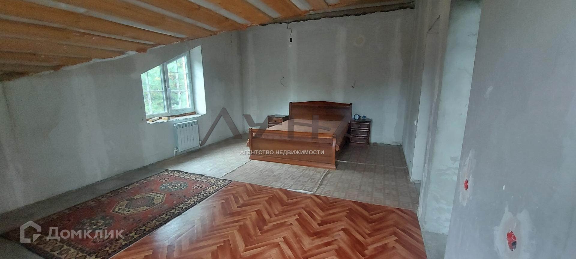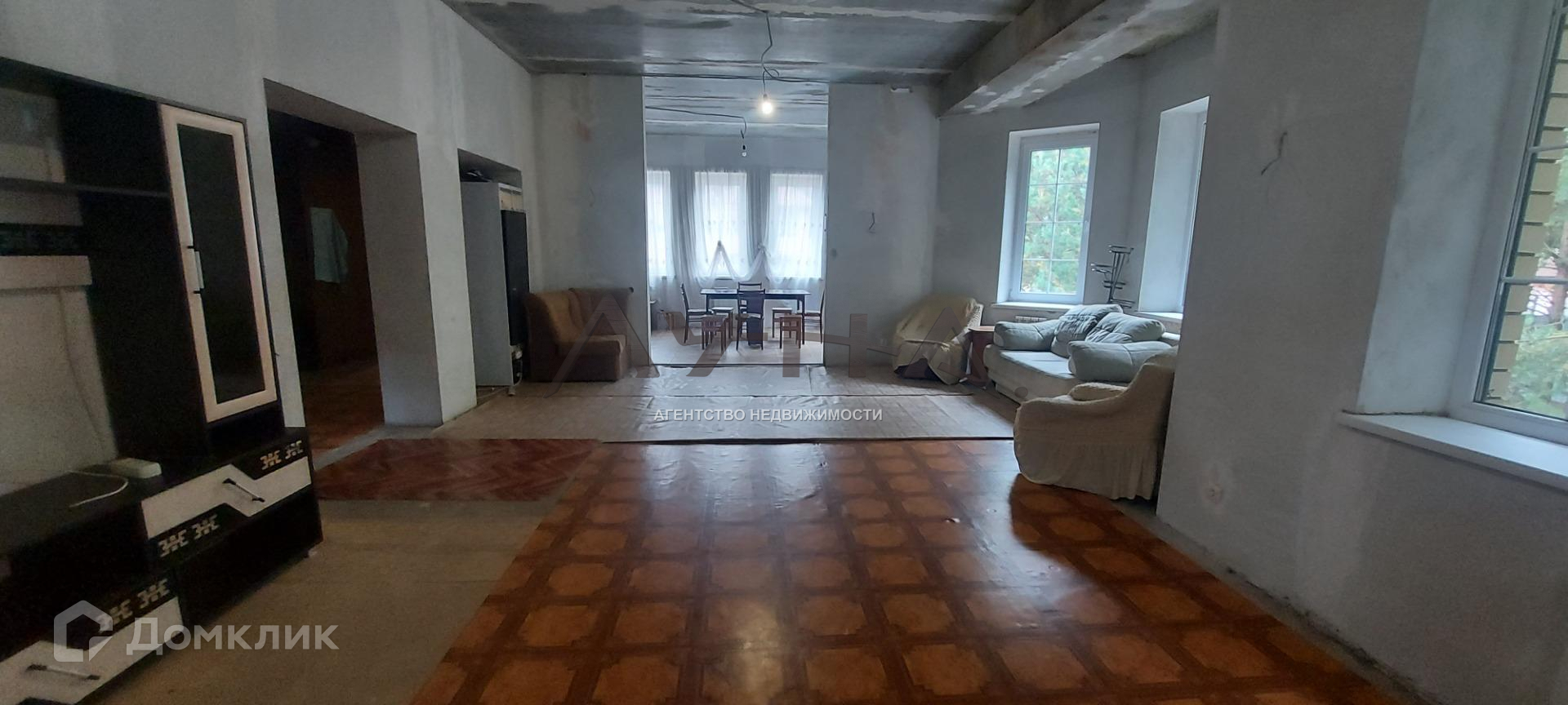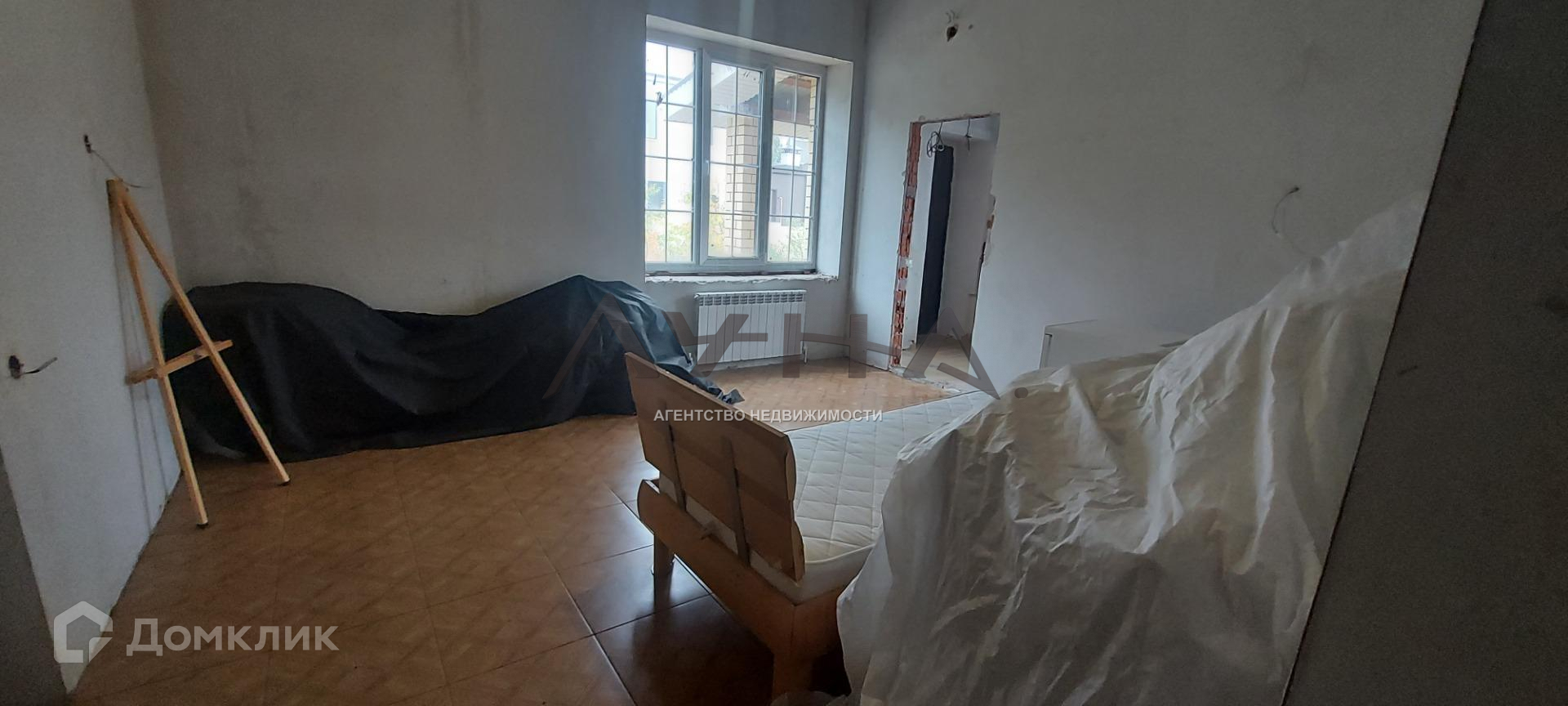 По всему дому полы покрыты полусохой стяжкой, стены выровнены гипсовой штукатуркой под отделку.