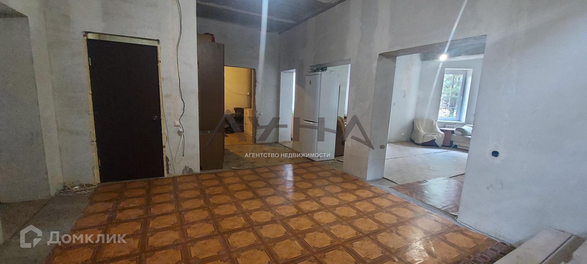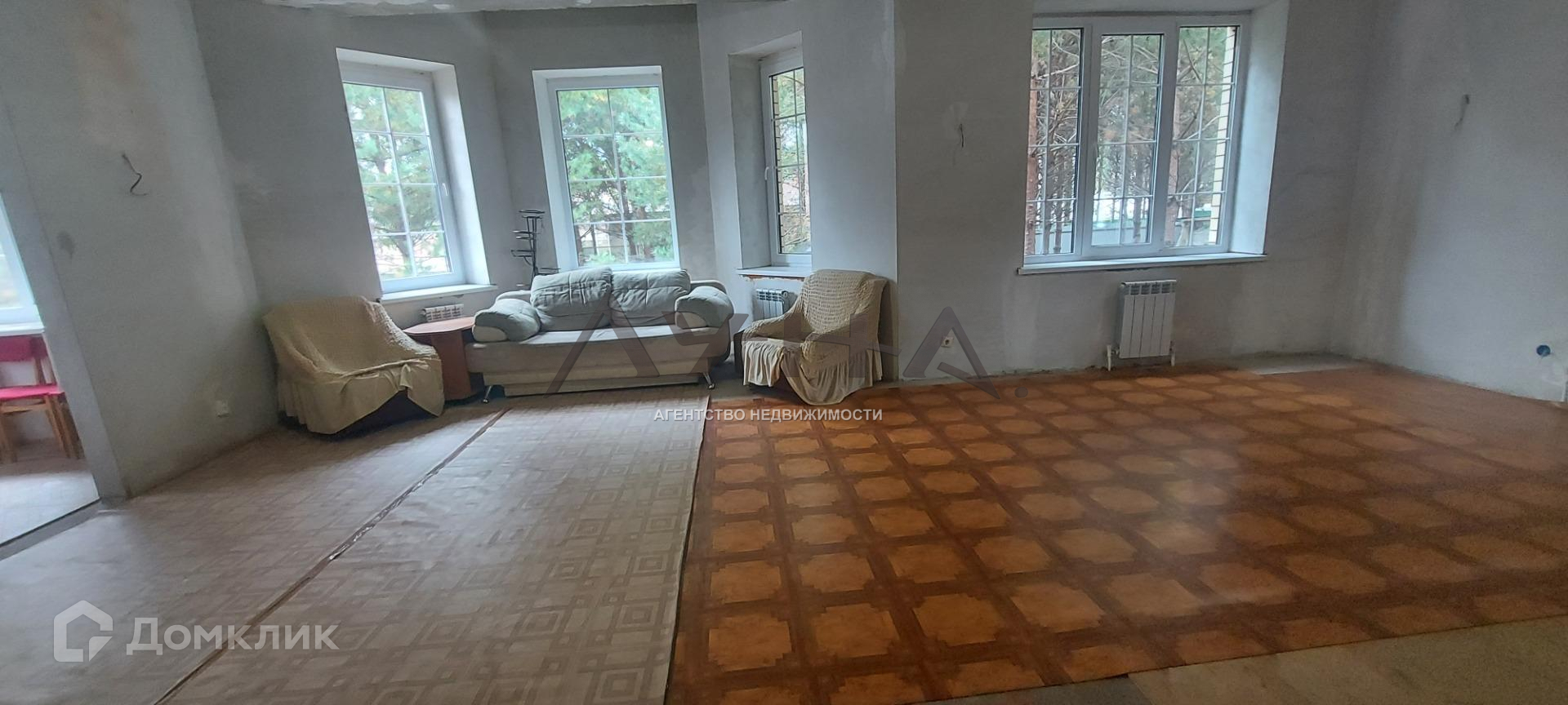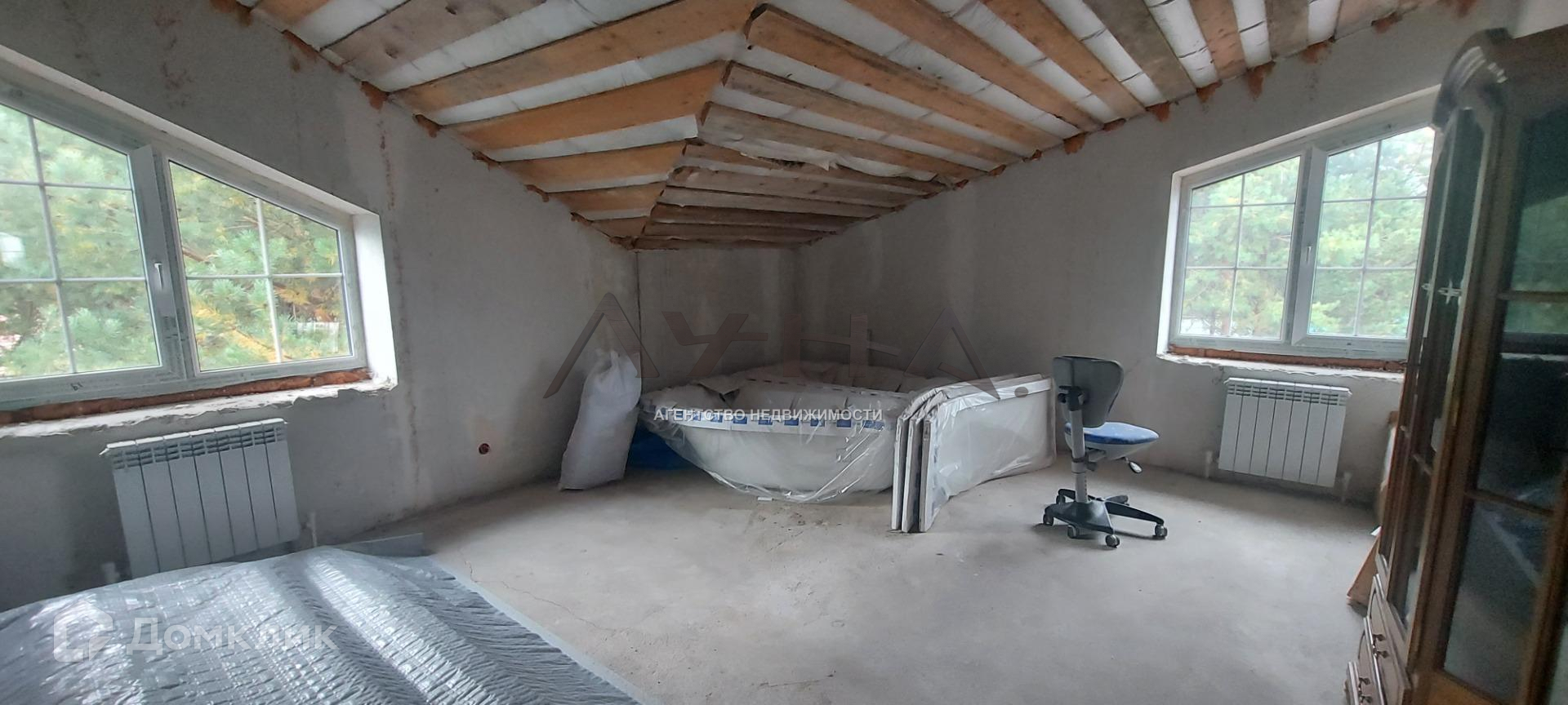 По всему дому полы покрыты полусохой стяжкой, стены выровнены гипсовой штукатуркой под отделку.
