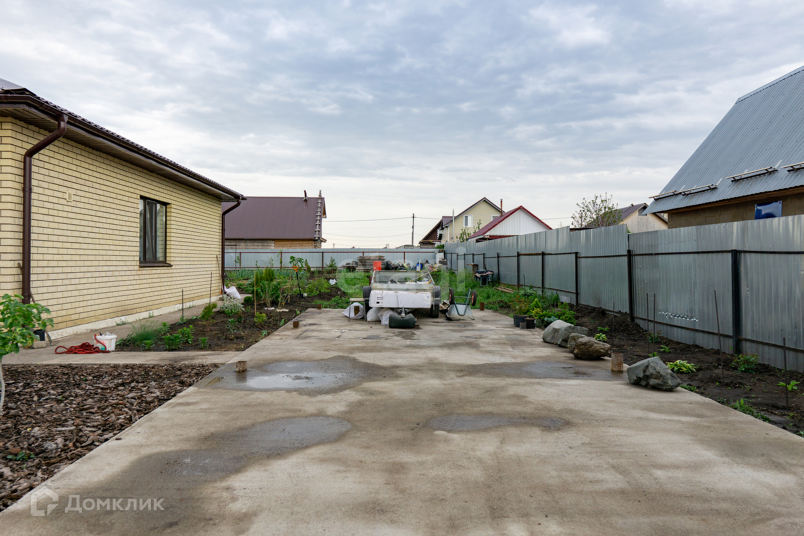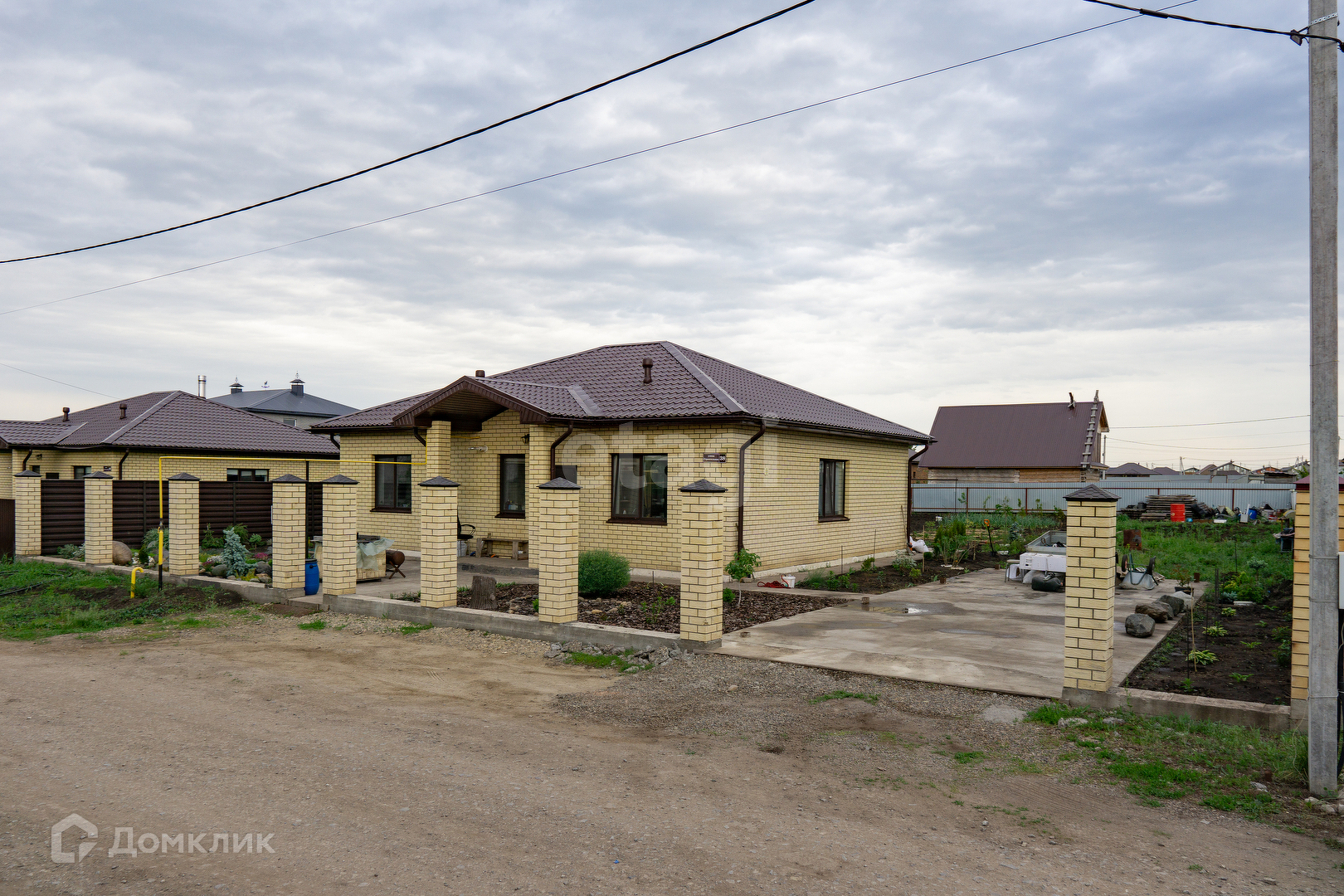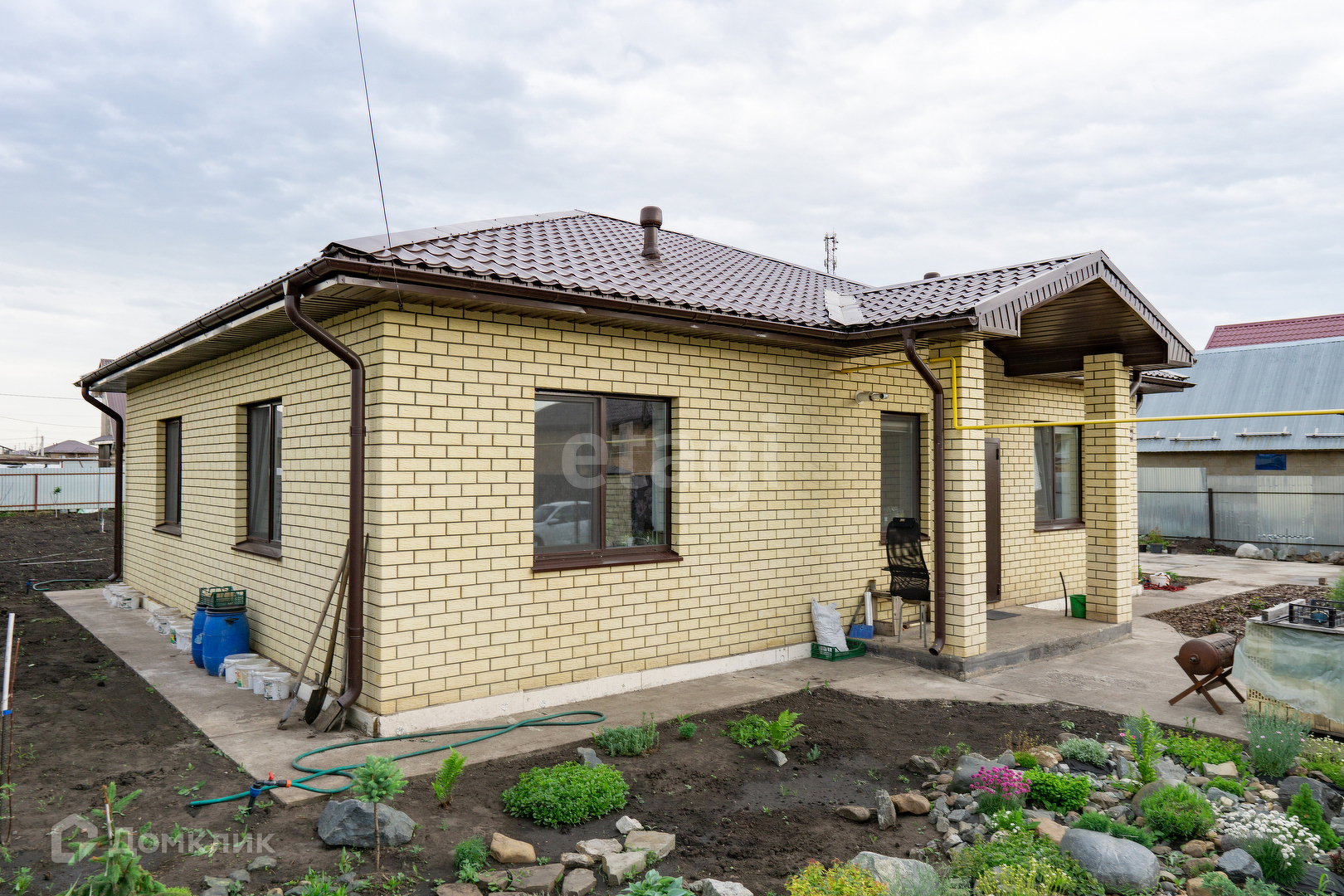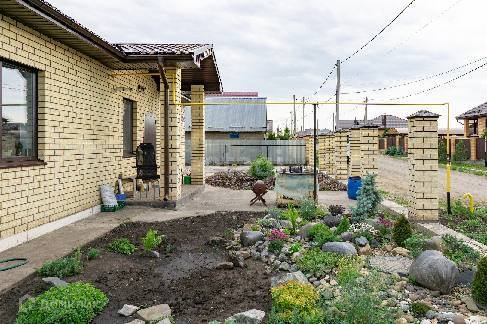 Вокруг дома сделана отмостка, все коммуникации заведены в дом.