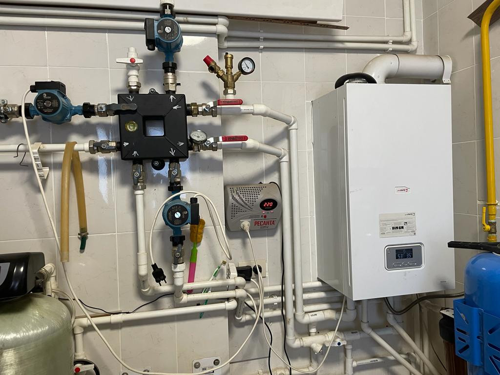 Отопление : первый этаж - радиаторы+ теплый пол ; второй этаж - радиаторы.