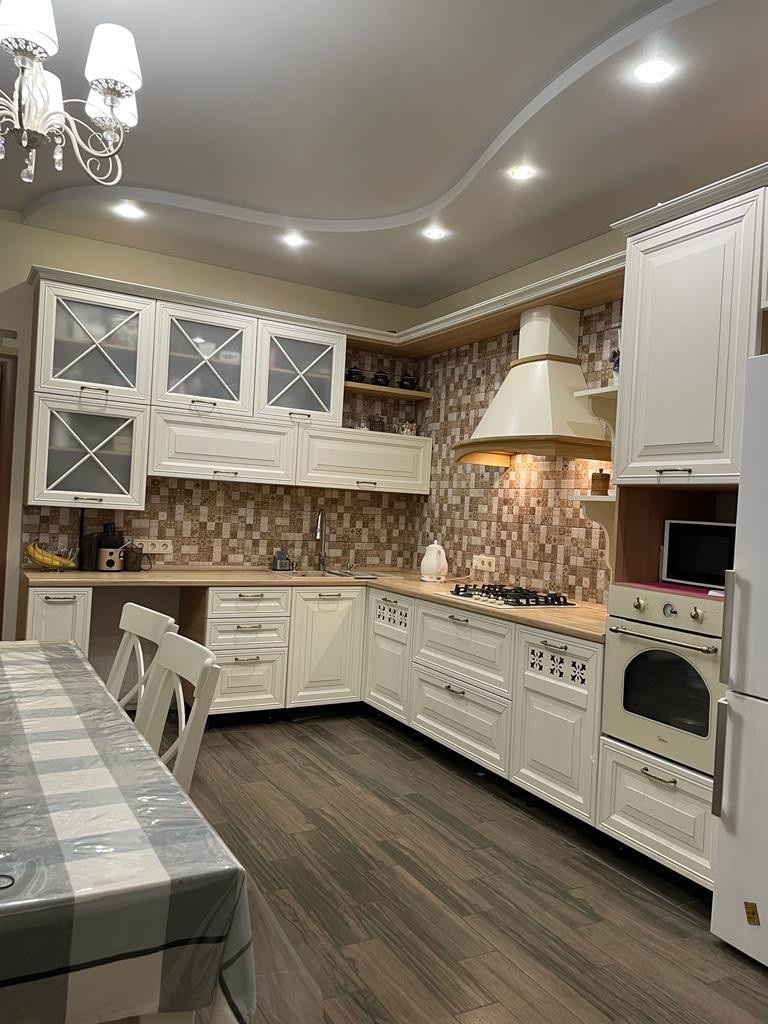 * Кухня - столовая - 24 кв.м. с большой обеденной зоной, качественный кухонный гарнитур остаëтся новым владельцам.