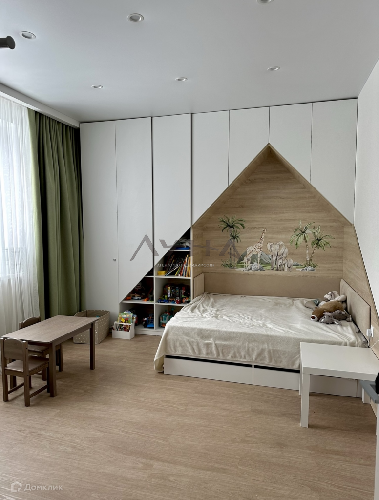 На 1 этаже располагается кухня гостинная, спальня, детская, просторная гардеробная, прачечная, ванна.