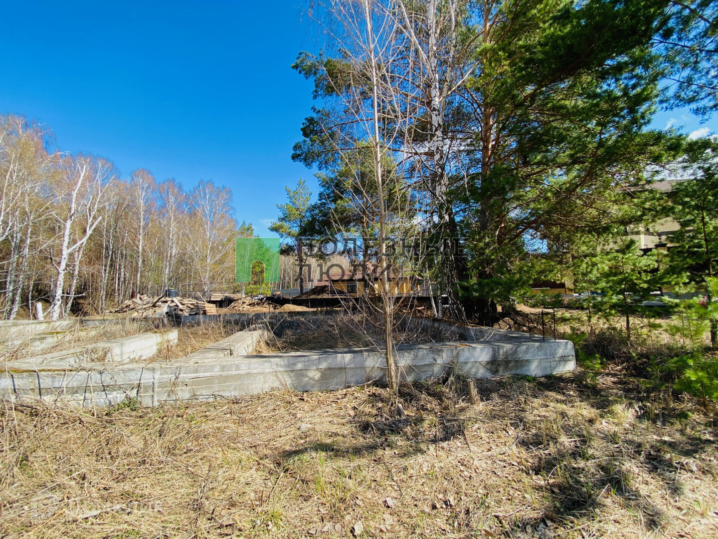 На земельном участке имеется капитальный фундамент-монолитная железобетонная плита  на сваях по периметру с площадью 150 м2 и прилегающая терраса 28М2 с видом на лес .