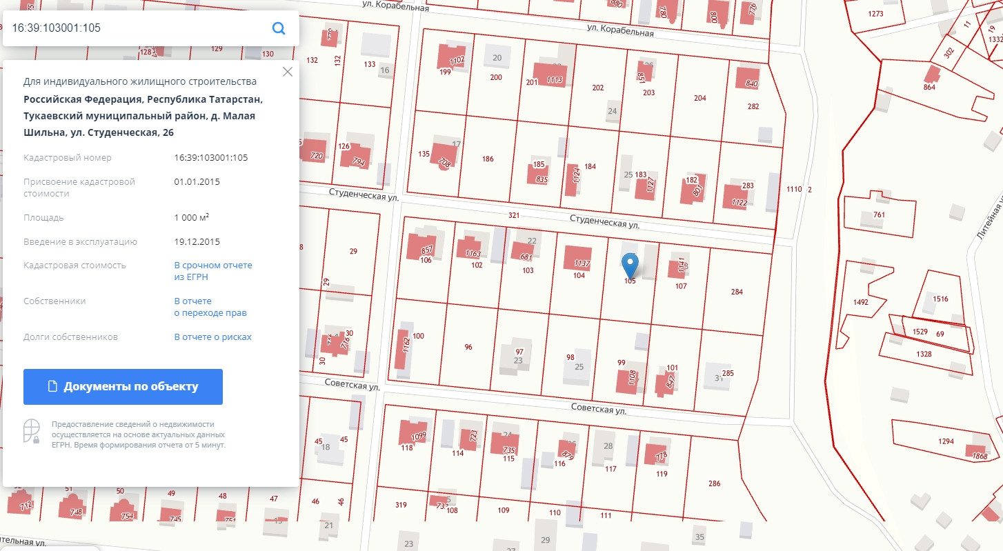 Кадастровый номер 16:39:103001:105.