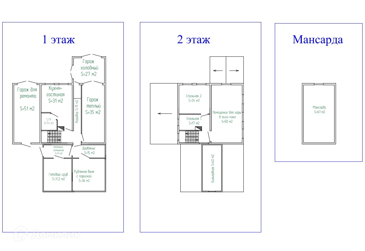 *три гаража, общая площадь 113 кв. м: кирпичный гараж для ремонта при входе в дом - 51 кв. м, гараж теплый встроенный - 35 кв. м, гараж холодный - 27 кв. м.