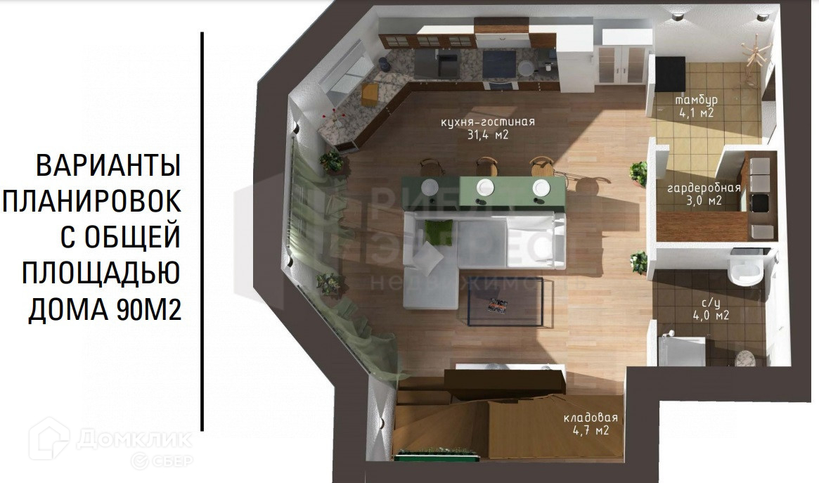 Общая площадь 90 м2