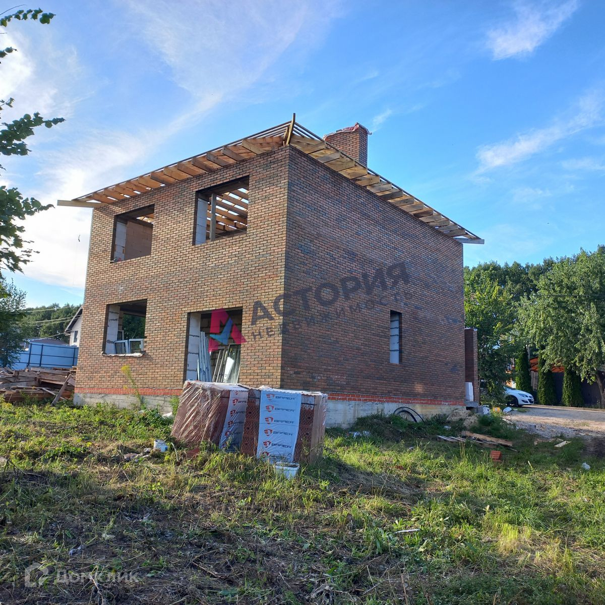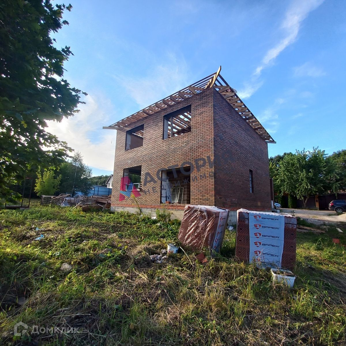 В доме планируются к установке  качественные большие окна REHAU. Отделан кирпичом BRAER «Баварская кладка, рельеф кора дуба», построен из газобетонных блоков 600. Фундамент и перекрытия – монолитные. Крыша – гибкая многослойная черепица.