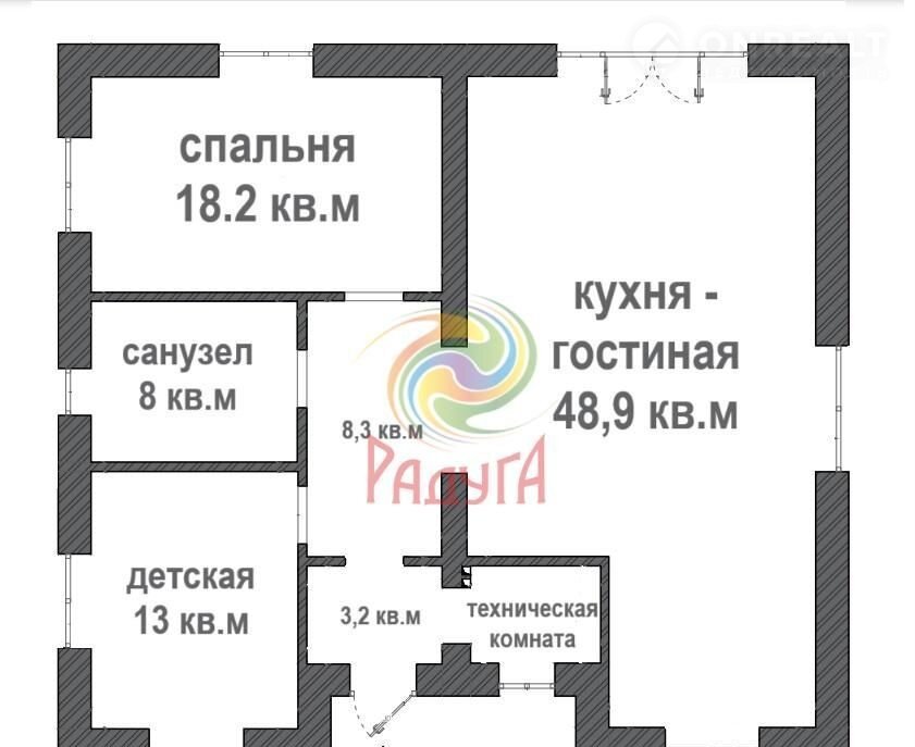 — две комнаты - 18.2 и 13 м²