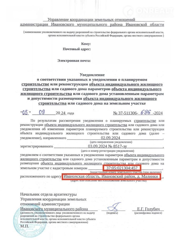 Адресная часть: Ивановская обл., Ивановский район, д. Малинки.