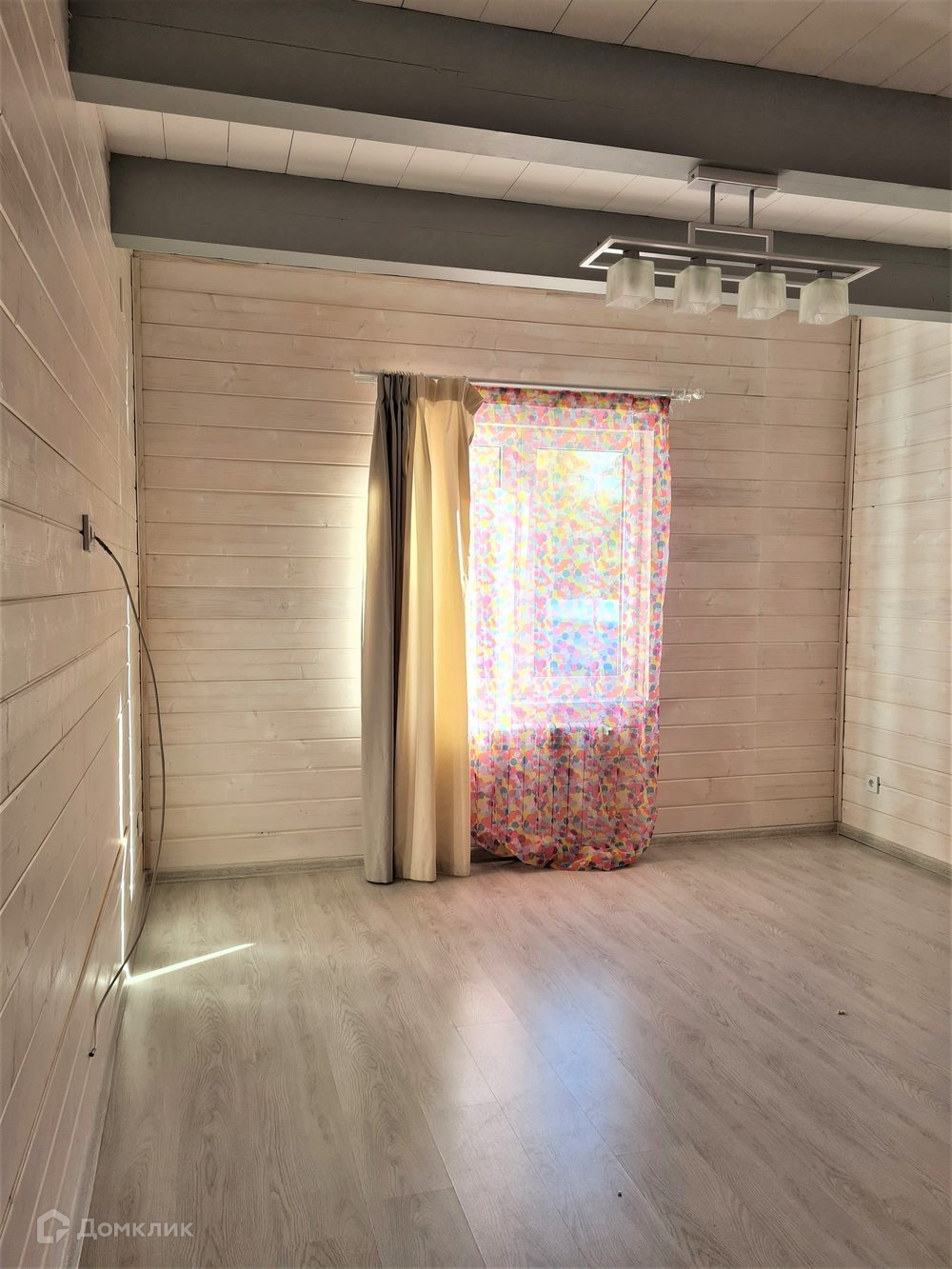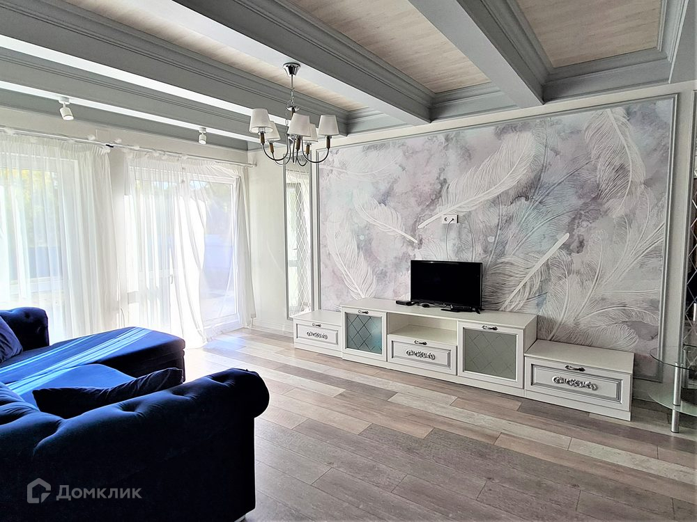 Интерьер выполнен в светлых тонах. На полу ламинат, потолок – дерево, обои в спокойных тонах. С/узлы в кафеле.