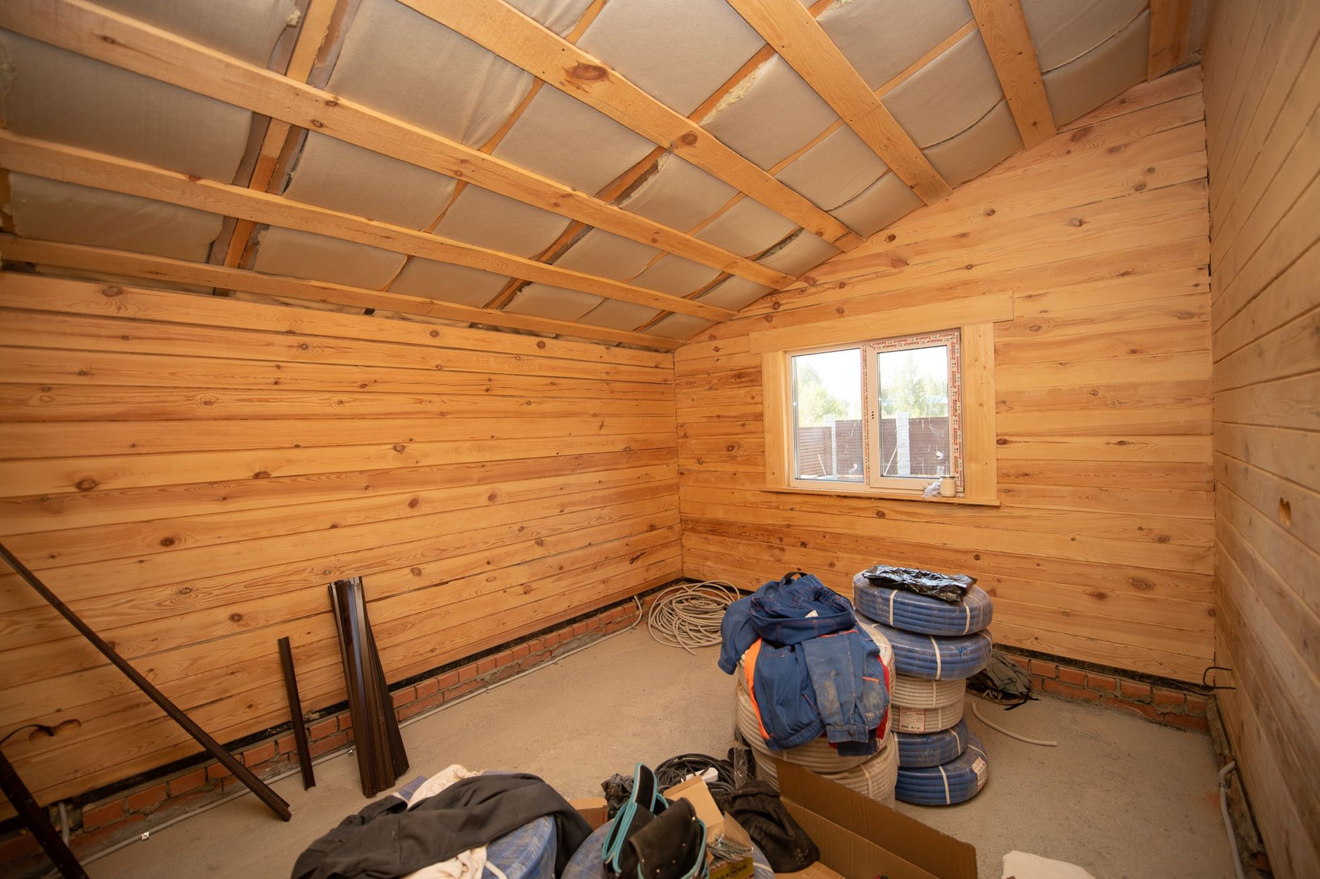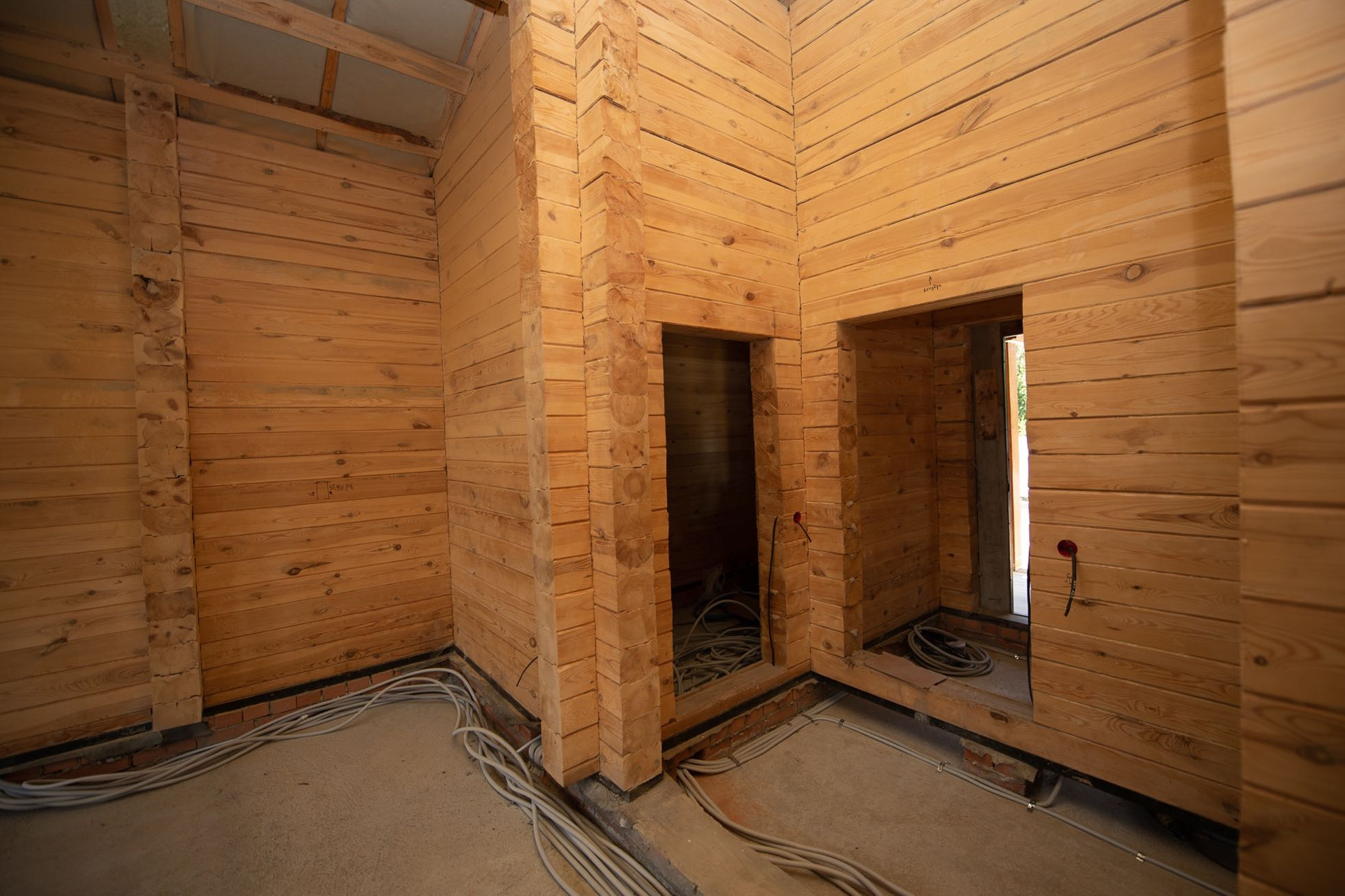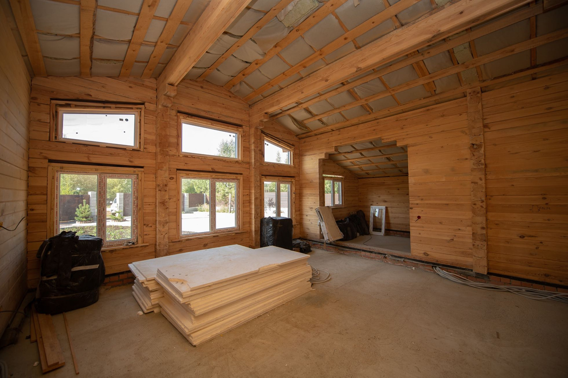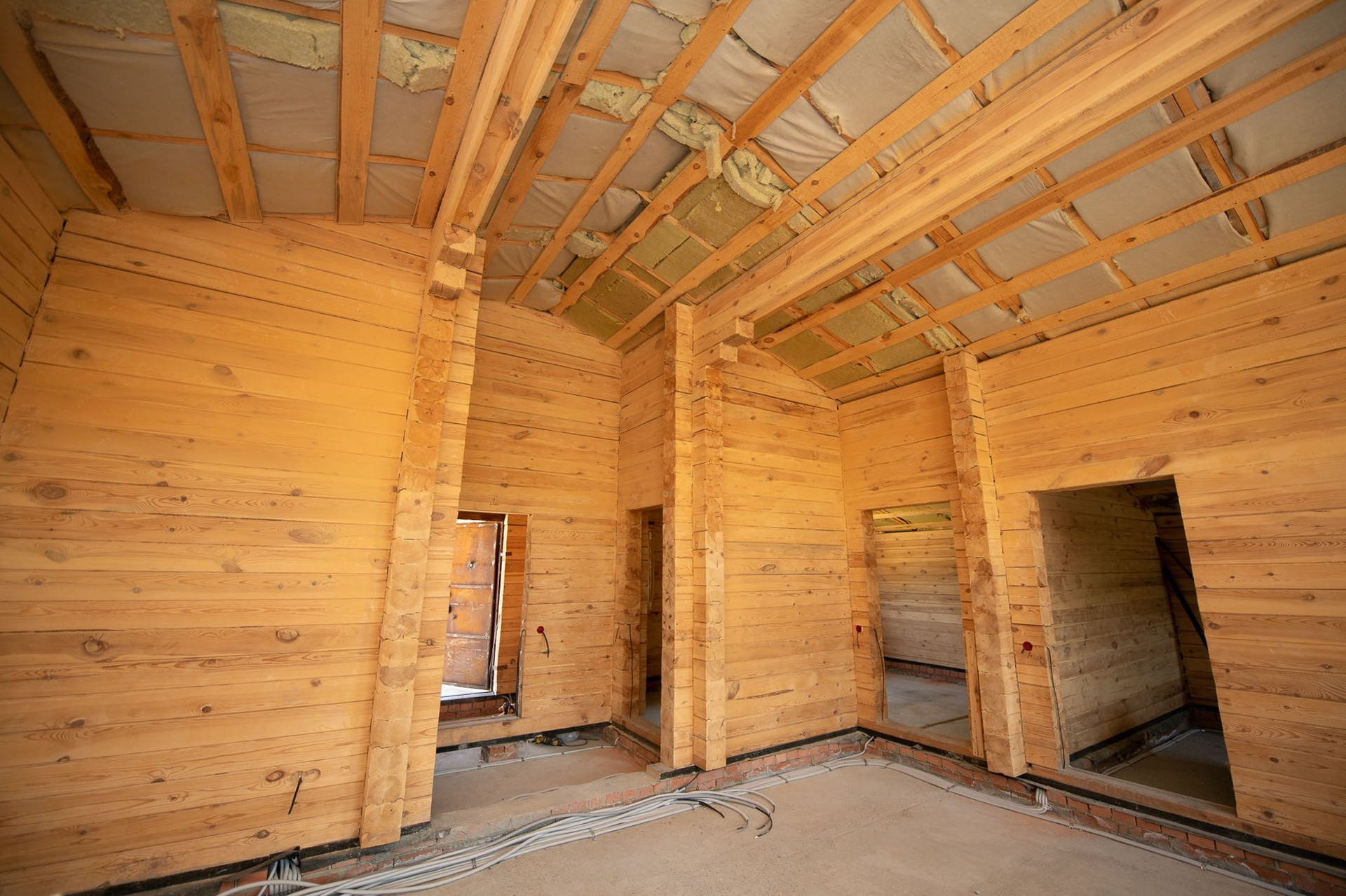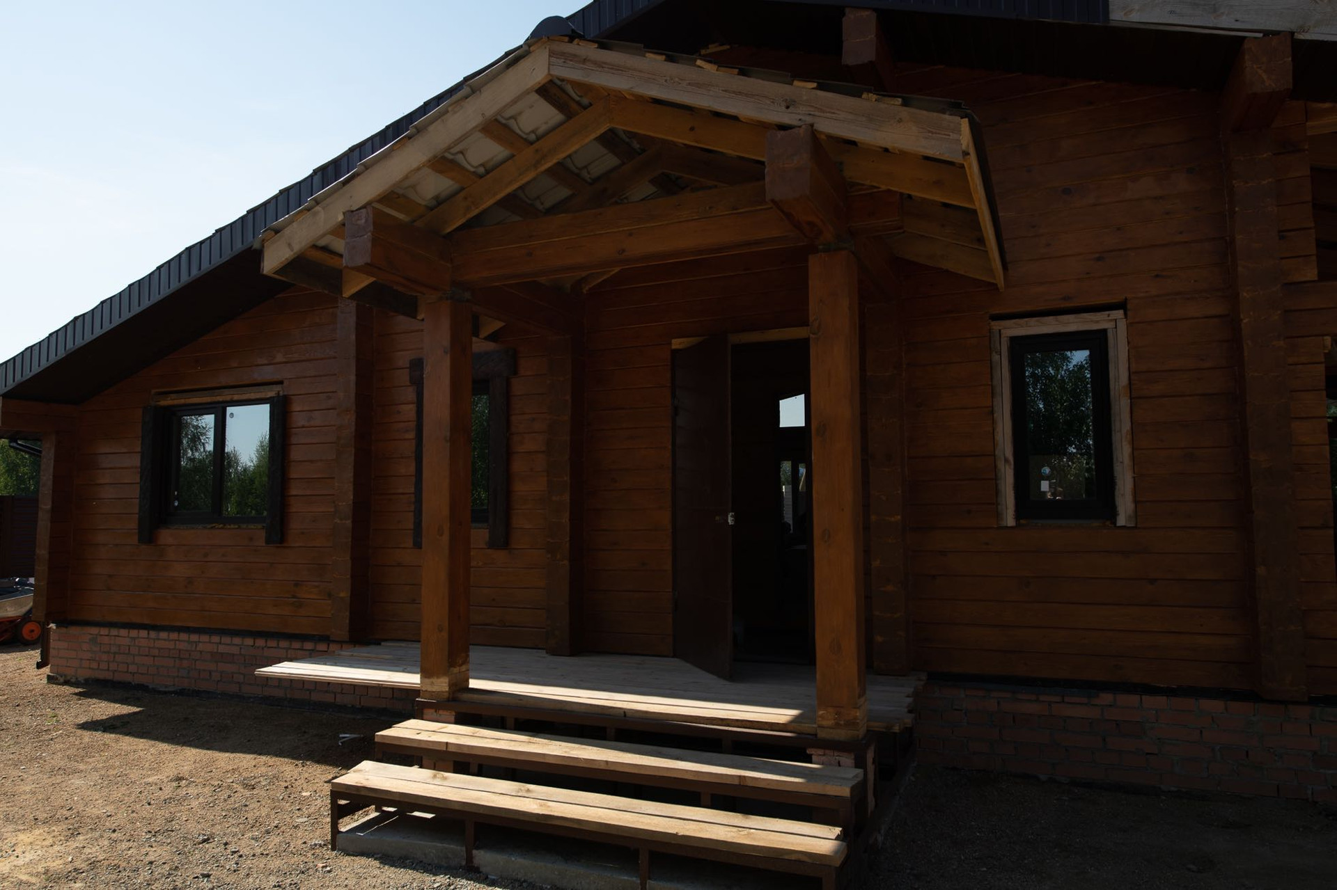 Дом выполнен из калиброванного бруса; крыша - металлочерепица, утеплена минеральной ватой, установлен тройной стеклопакет марки Good win, в доме проведены подготовительные работы.