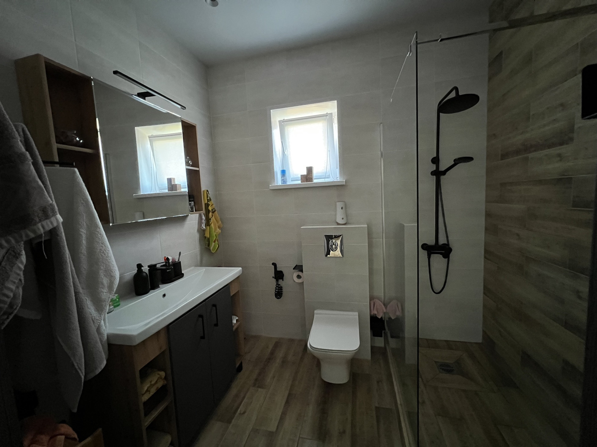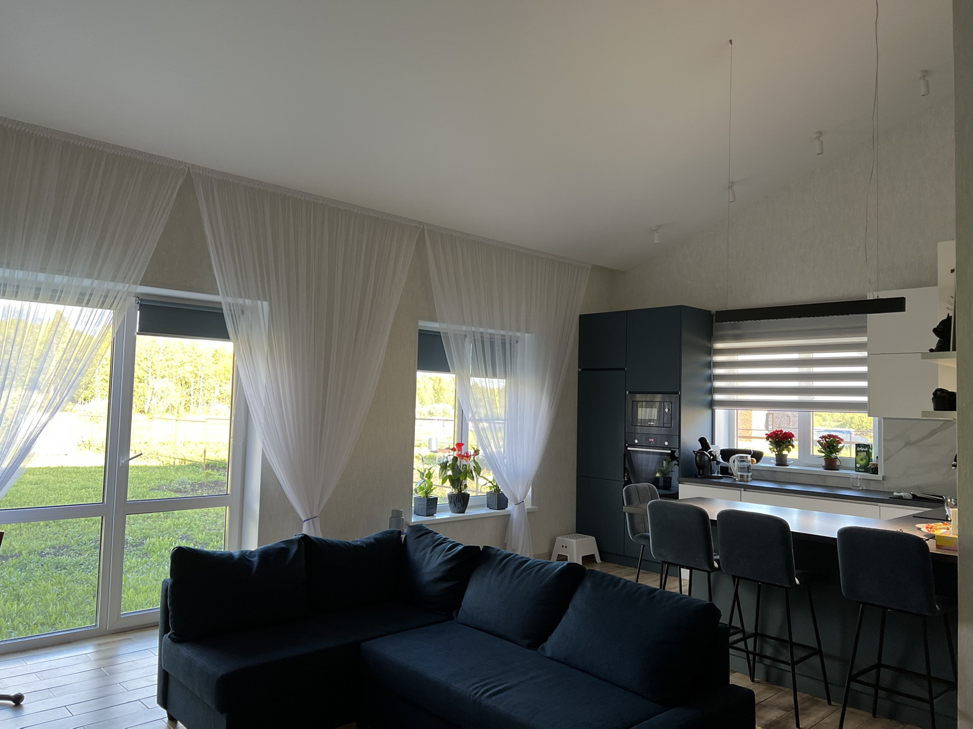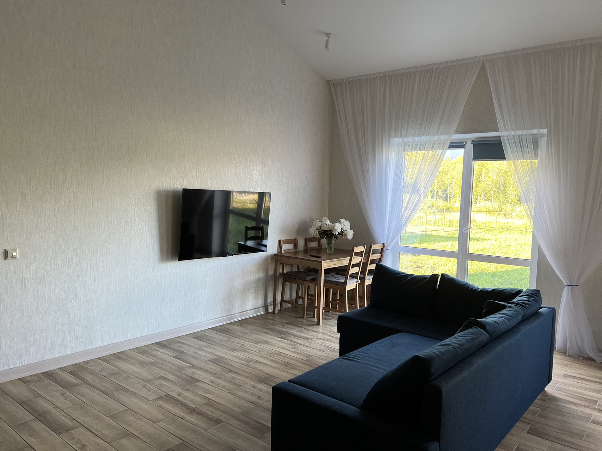 Чистовая отделка 100% (электричество, отопление, канализация)  – качественные обои, натяжные потолки со светодиодными светильниками, розетки и выключатели, керамогранит, сантехника.