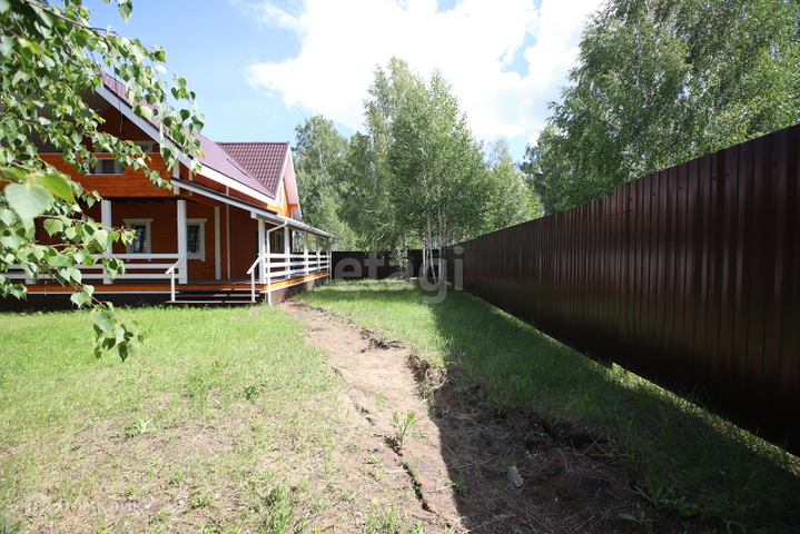 - На территории небольшой лес, огорожен забором из крашенного профнастила