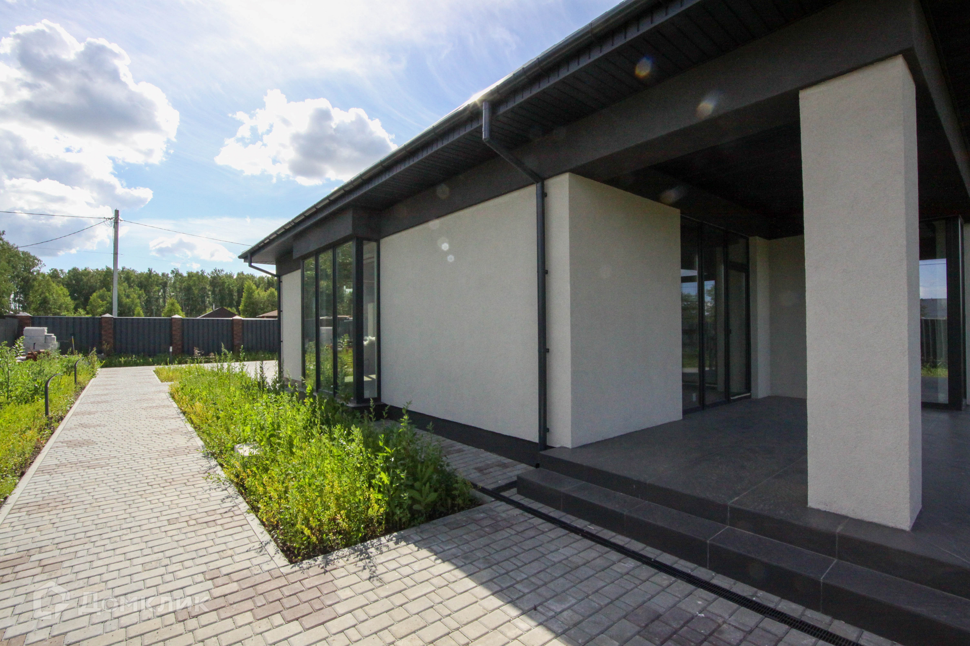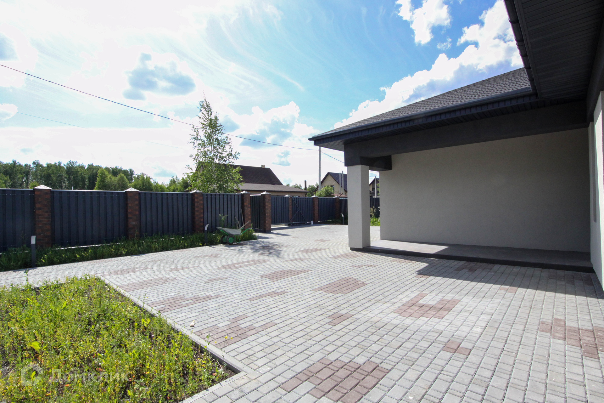 Имеется два септика, а также скважина с мощным насосом. Площадь перед домом, а также дорожки вымощены качественной тротуарной плиткой. Вдоль дорожек установлены современные фонари.