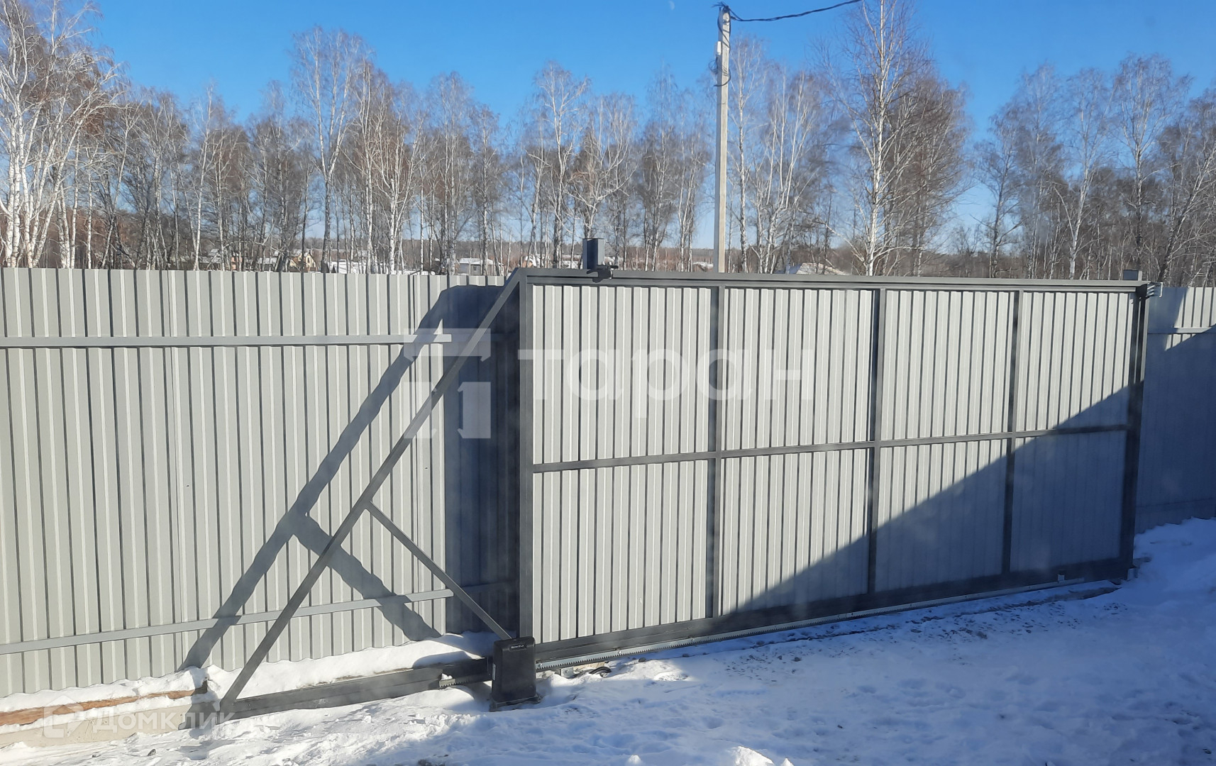 - территория участка огорожена по всему периметру забором из профлиста, есть входная калитка и откатные электроворота.