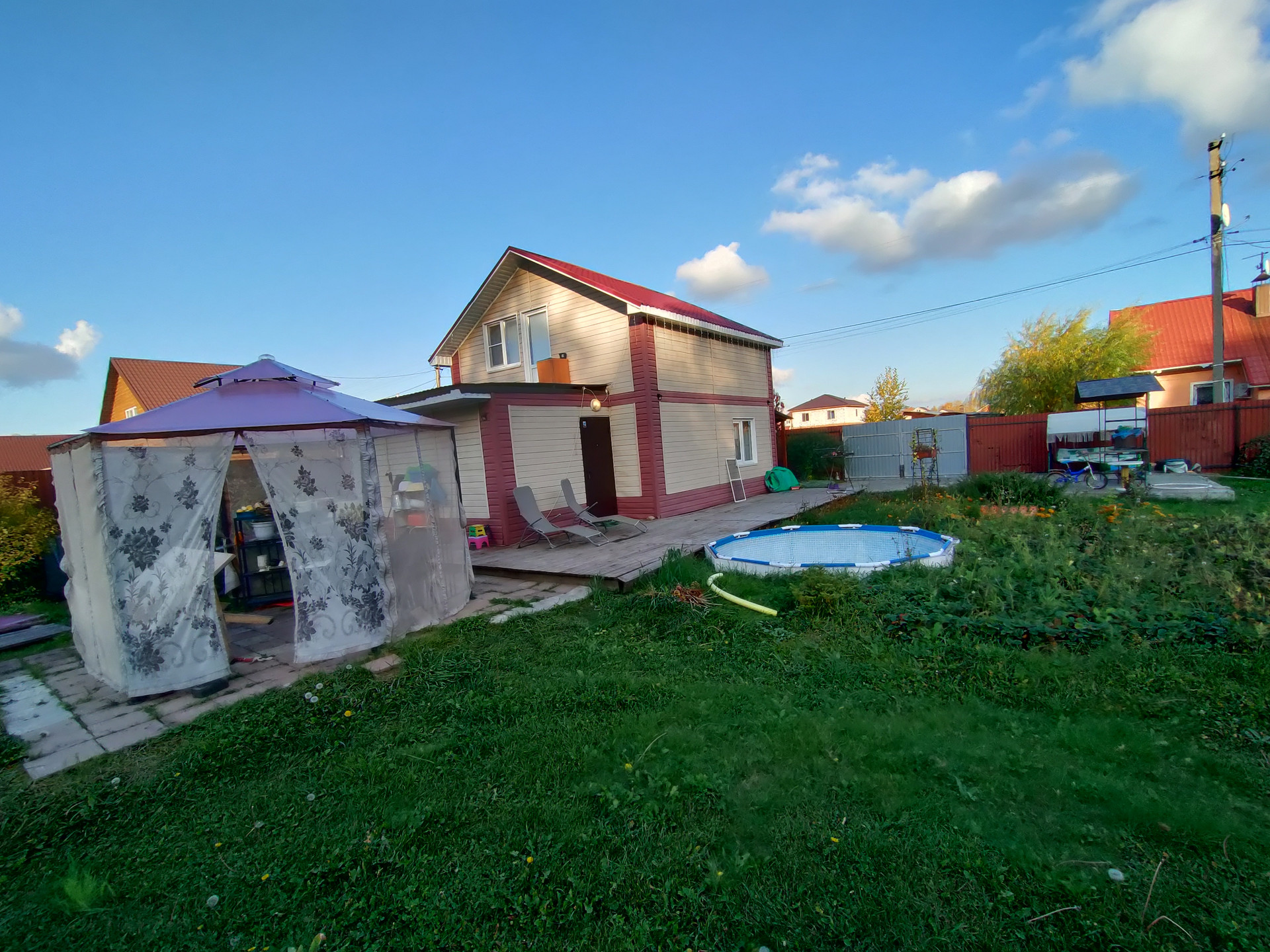 В СНТ, свой пруд с оборудованным пляжем, детская площадка.