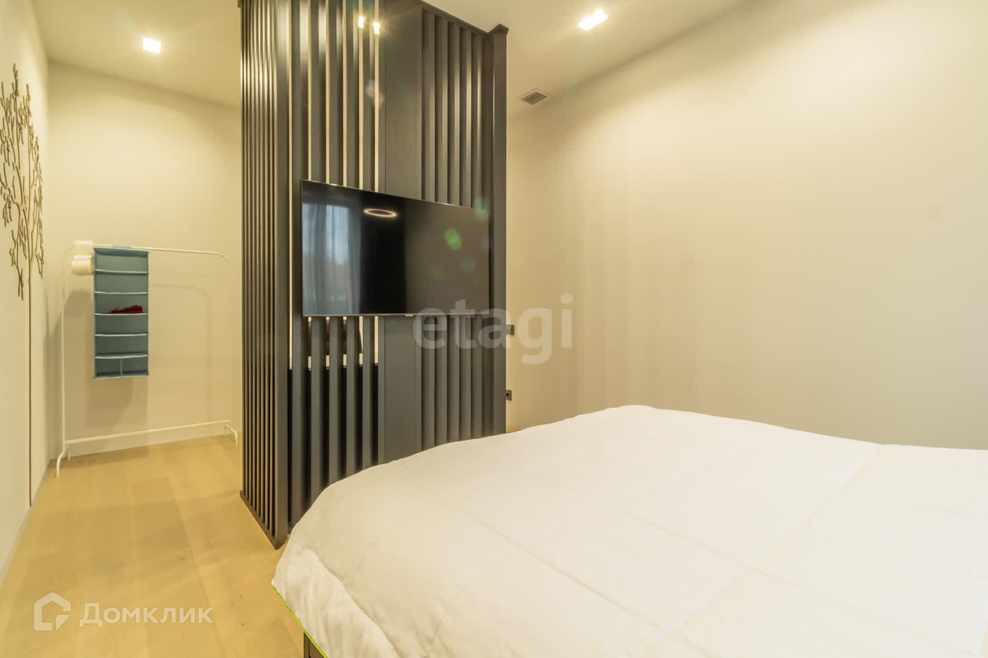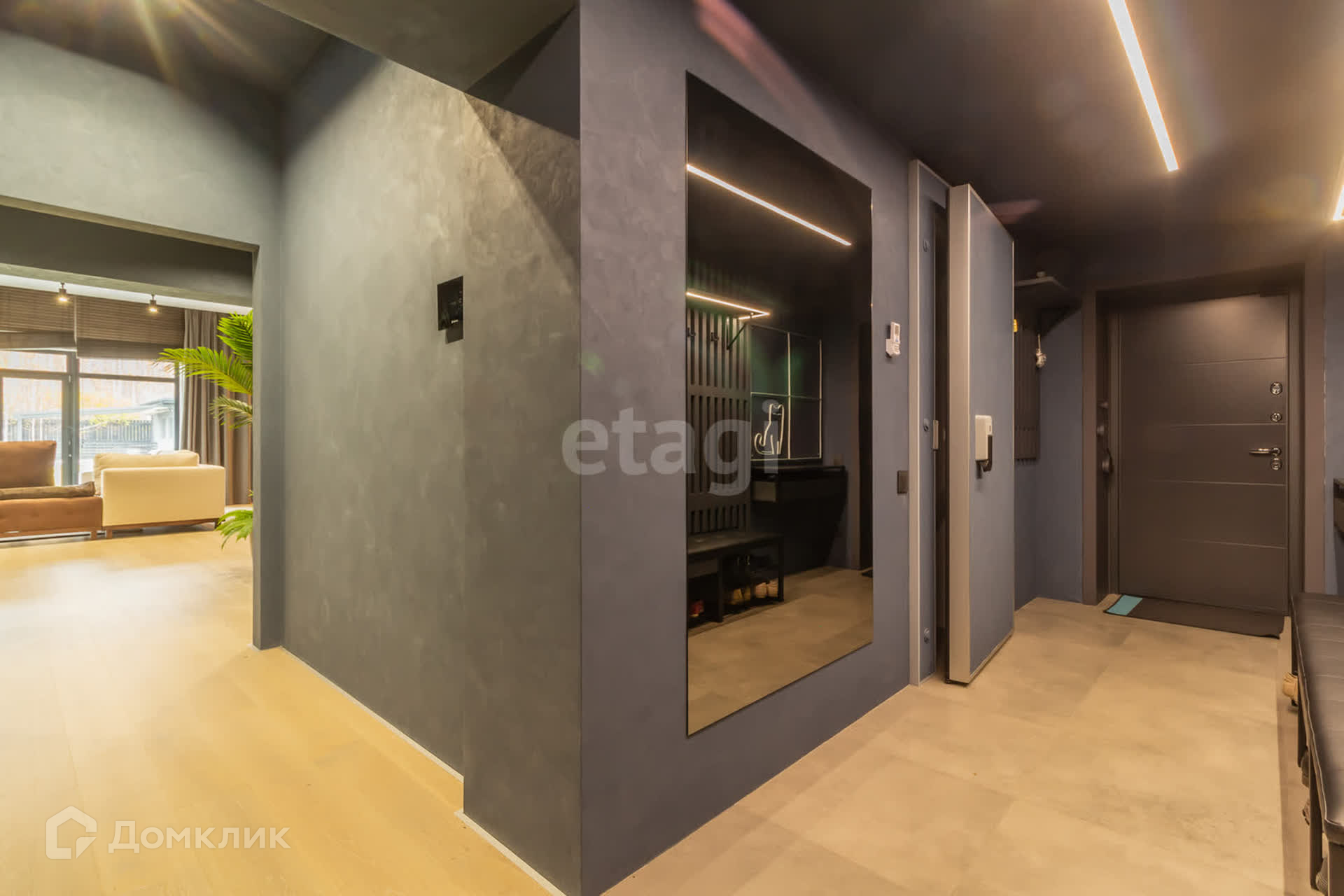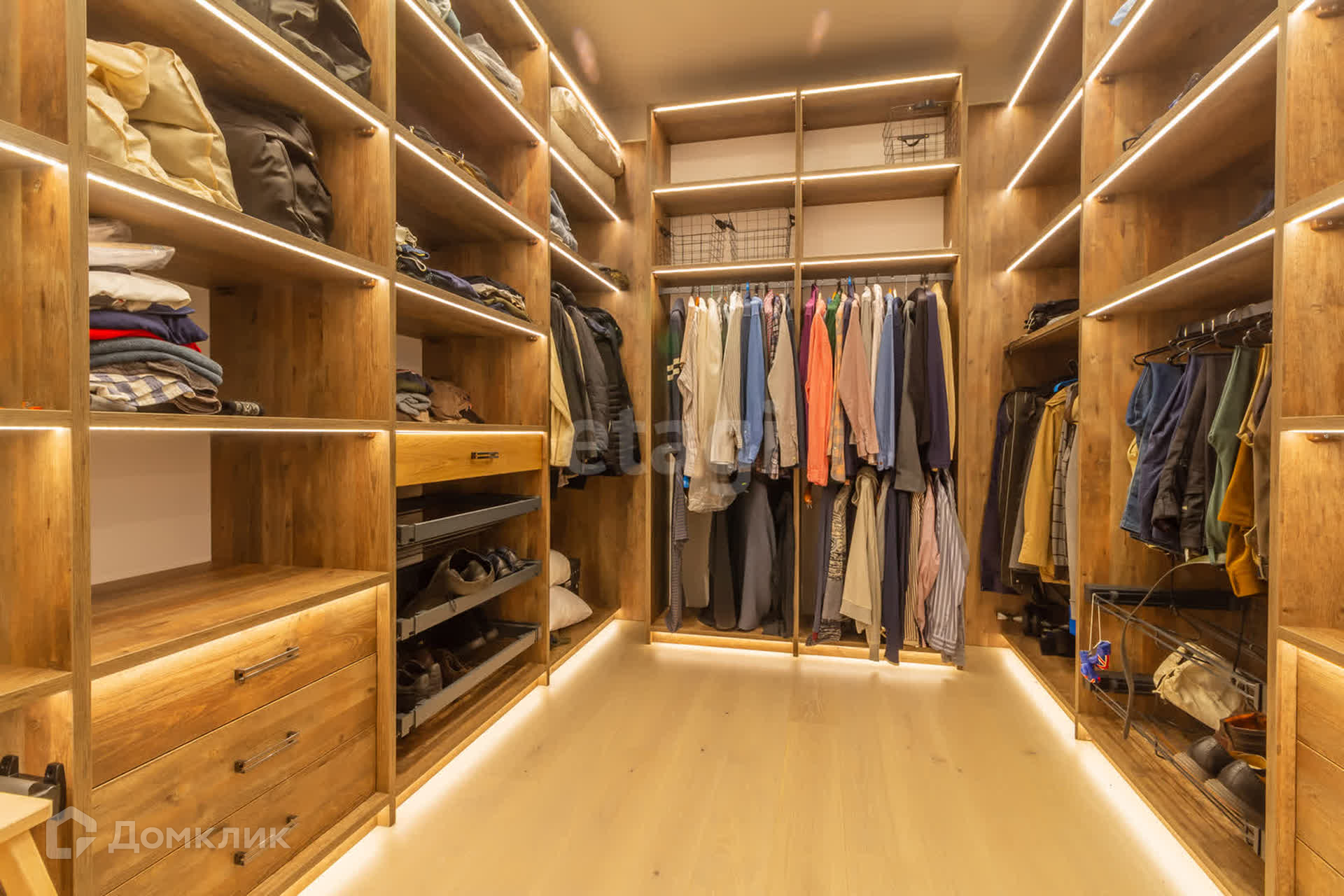 В доме площадью 110 кв. м. имеется кухня-студия, кабинет, спальня, два санузла (один с душем, другой с ванной), гардеробная со стиральной машиной и машиной для сушки белья. Вход в дом из гаража.