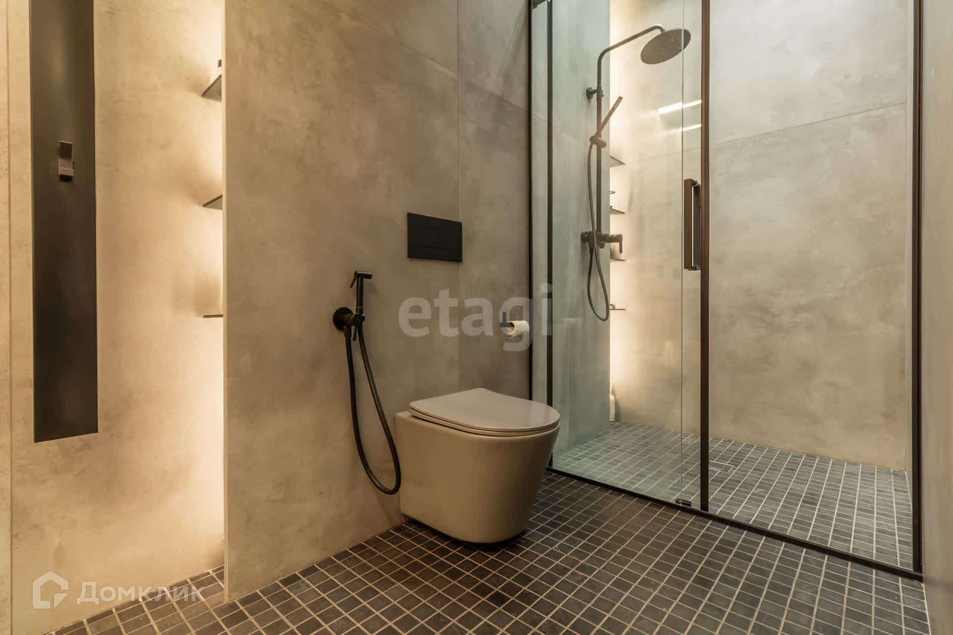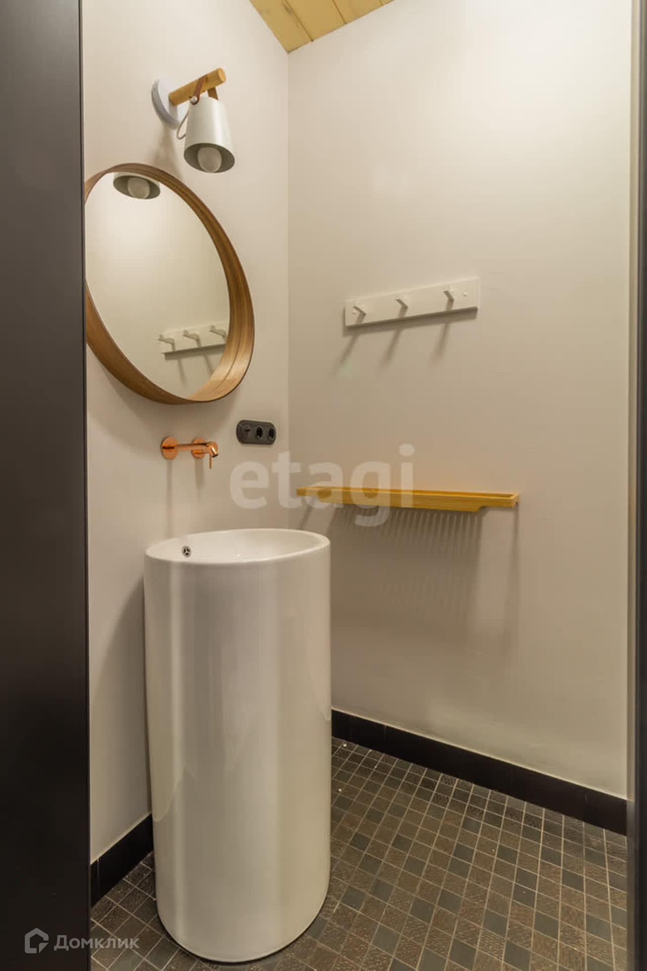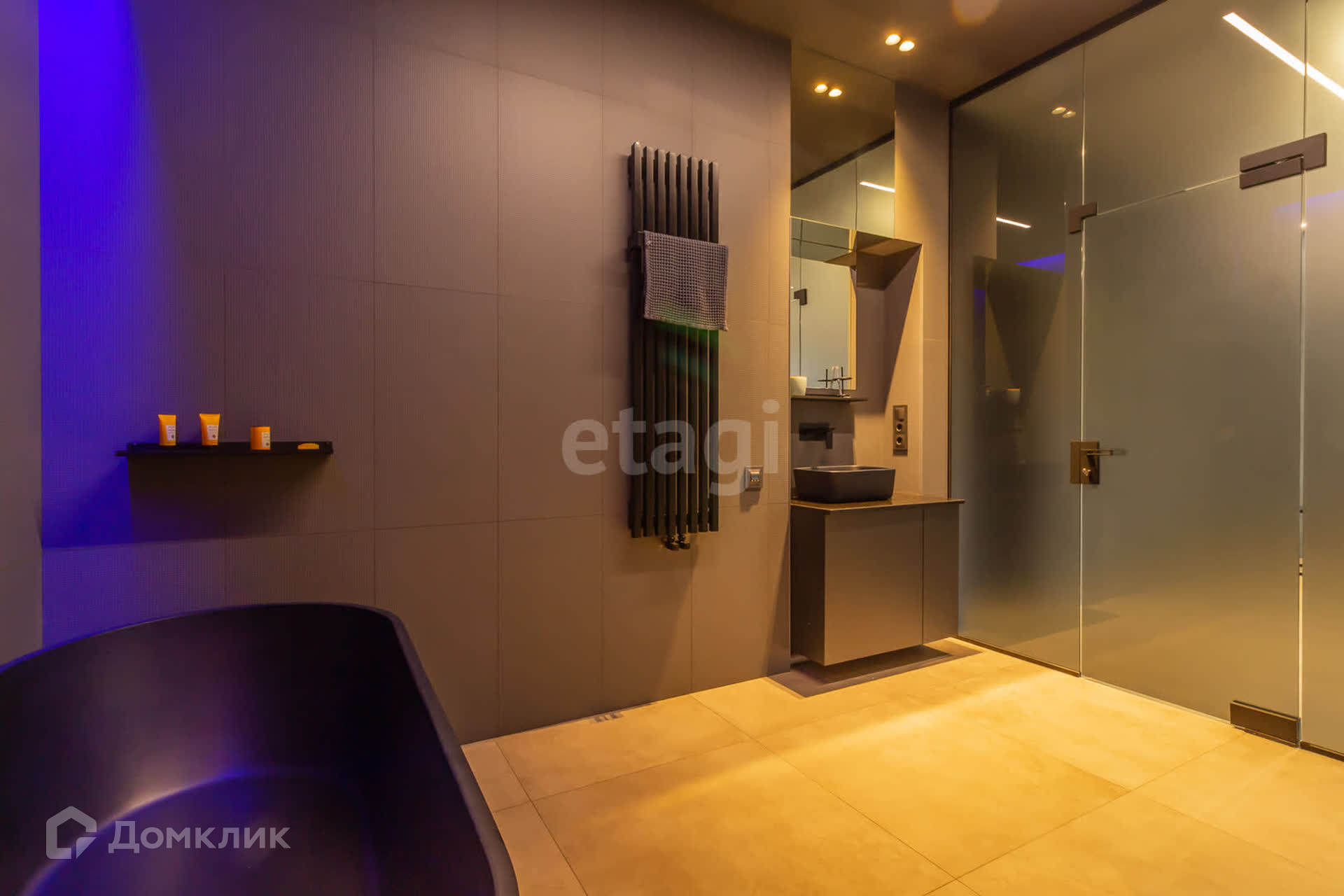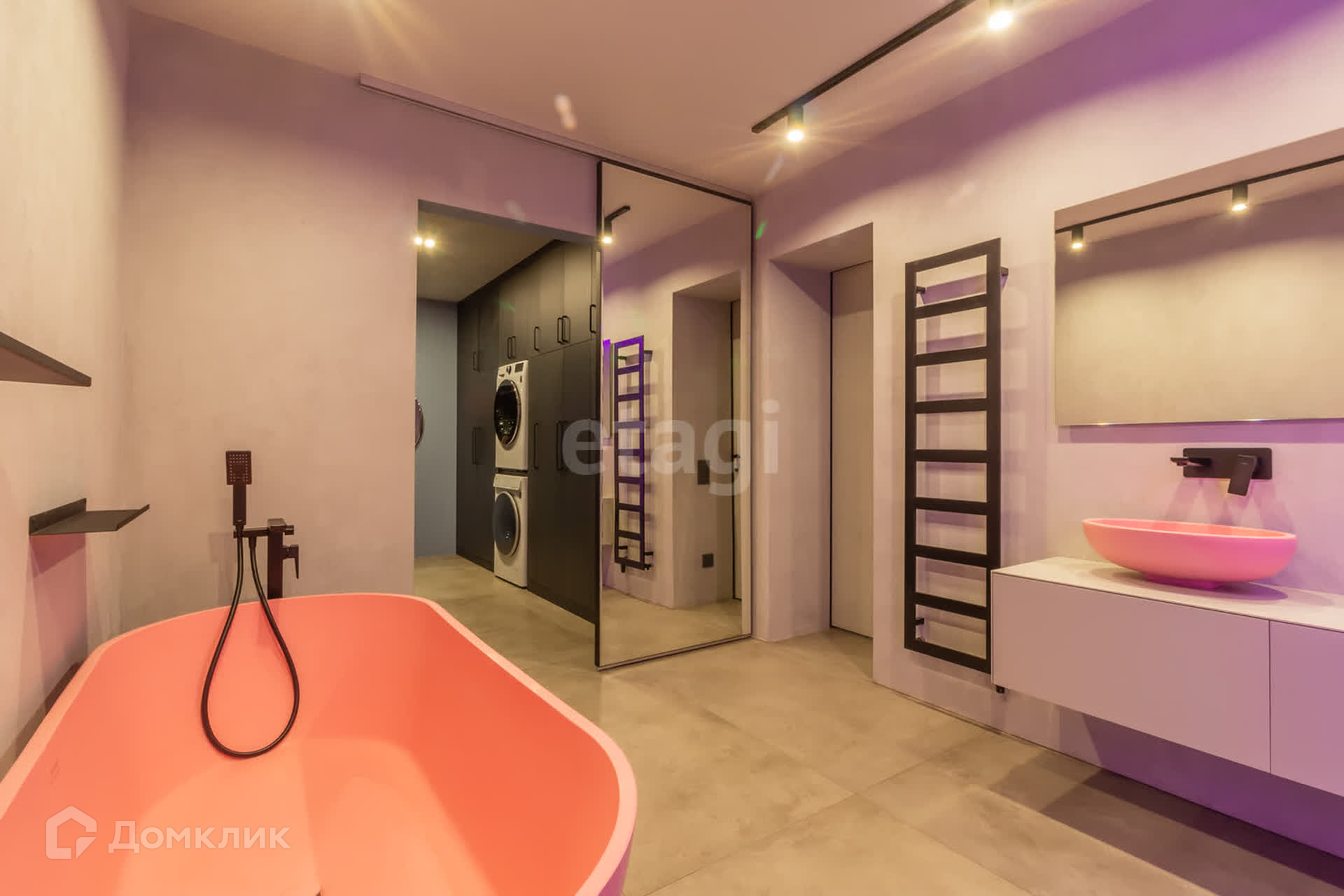 В доме площадью 110 кв. м. имеется кухня-студия, кабинет, спальня, два санузла (один с душем, другой с ванной), гардеробная со стиральной машиной и машиной для сушки белья. Вход в дом из гаража.