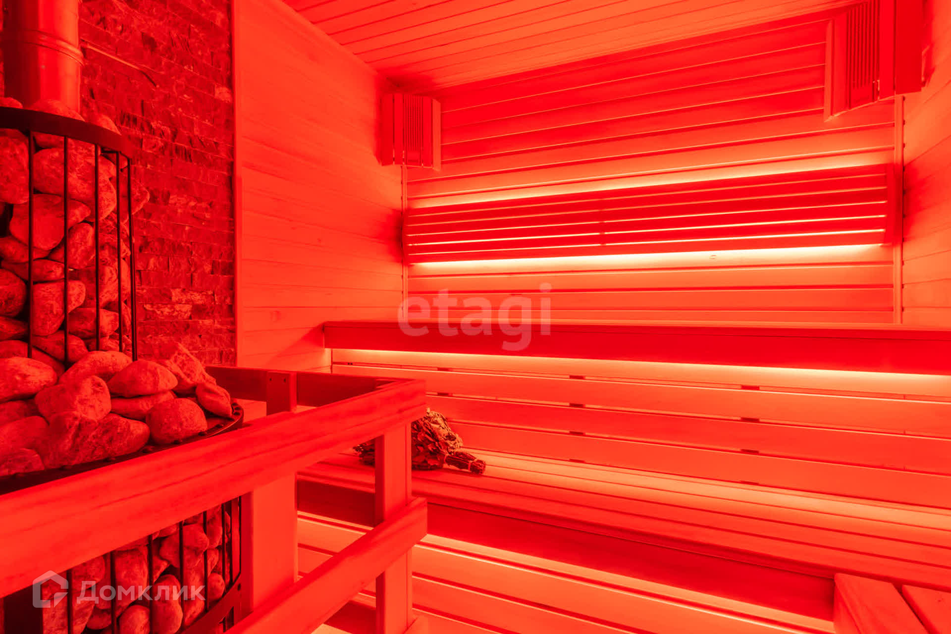 На территории участка находится гостевой домик с летней террасой. Внутри гостевого домика имеется кухня, санузел, гардеробная, зал; а также находятся баня-сауна с душем и встроенная мангальная зона с тандыром.