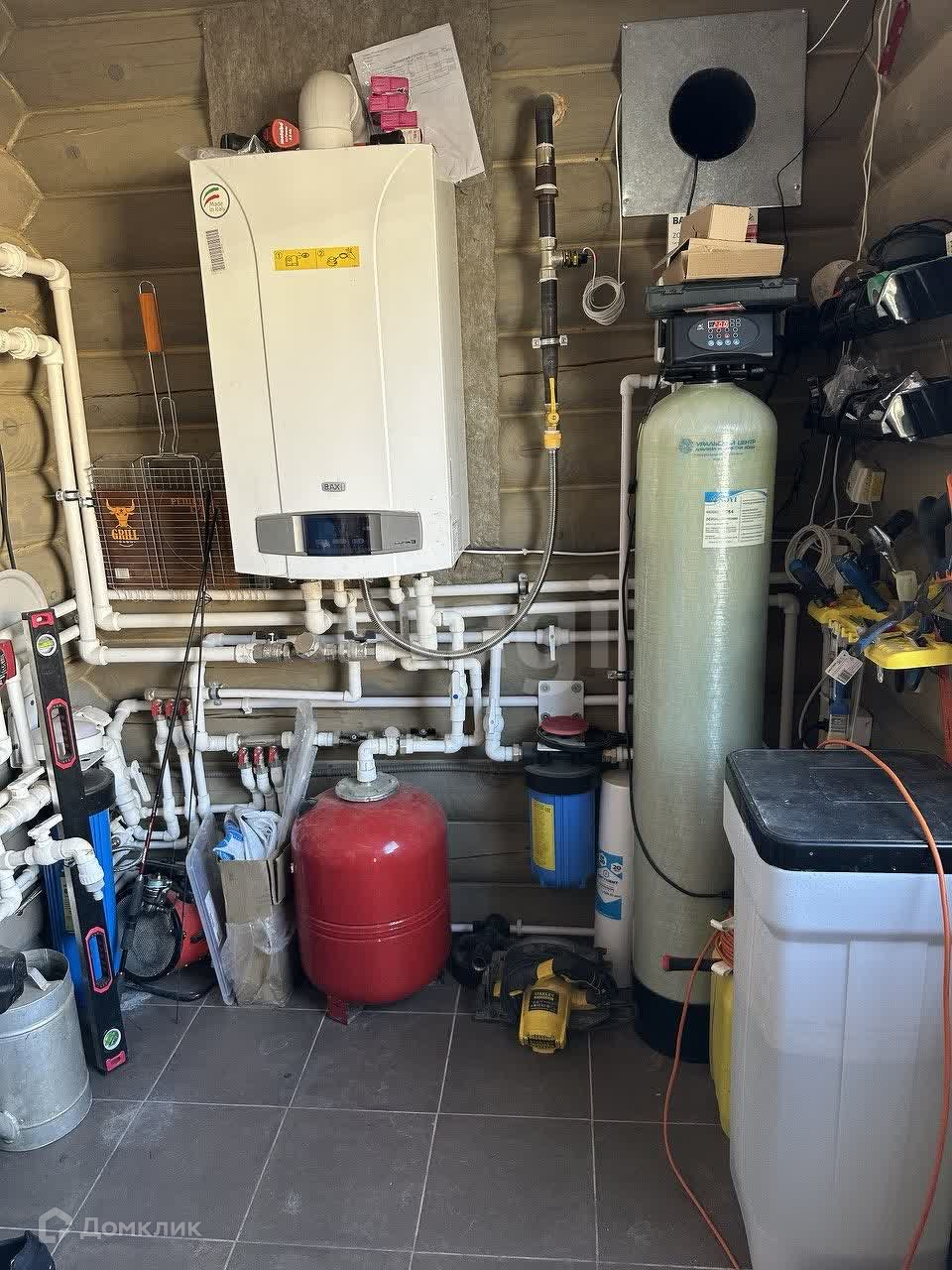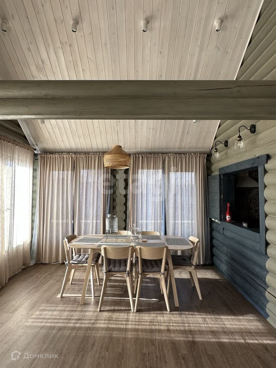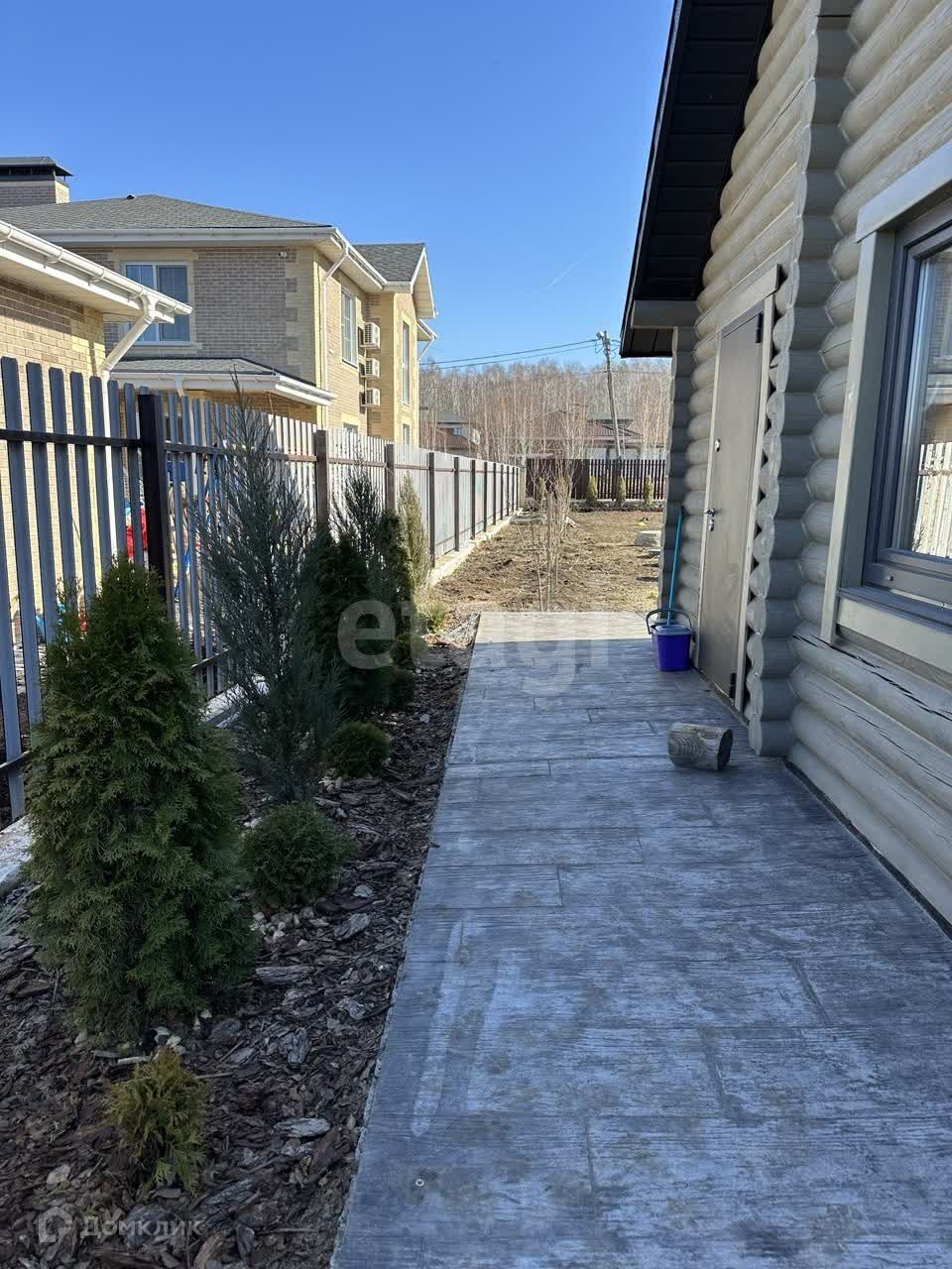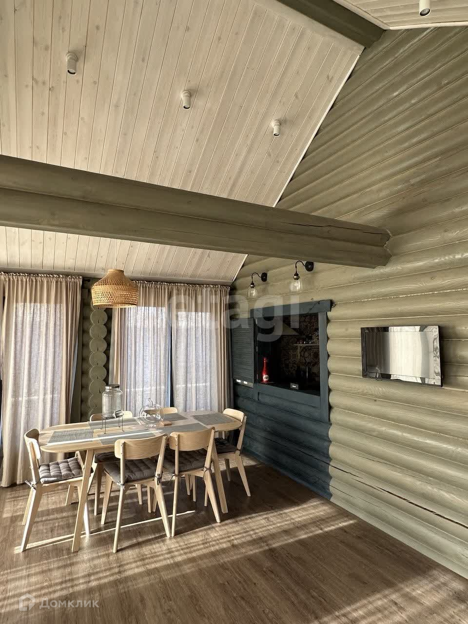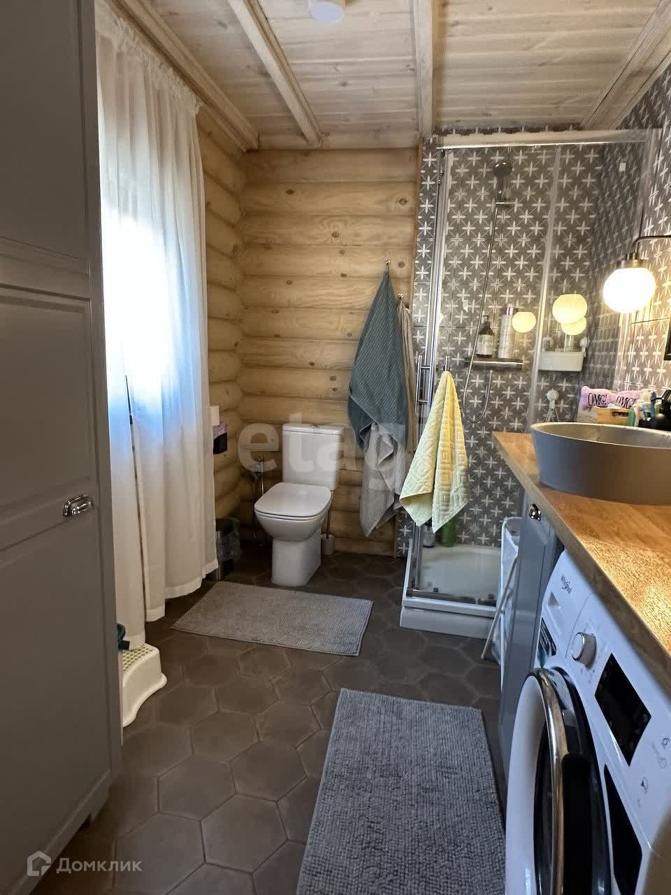 В поселке асфальтированная дорога, закрытая территория, детская площадка, проезд через КПП с шлагбаумом и охраной. Дом из оцилиндрованного бревна, вокруг дома широкая отмостка из печатного бетона, газ (двухконтурный котел BAXI), электричество, септик (Евролос ЭКО), скважина (насос Pedrollo), окна Aluplast, водяные теплые полы+радиаторы, установка по умягчению воды, установлены стабилизаторы напряжения. Откатные электрические ворота Doorhan.