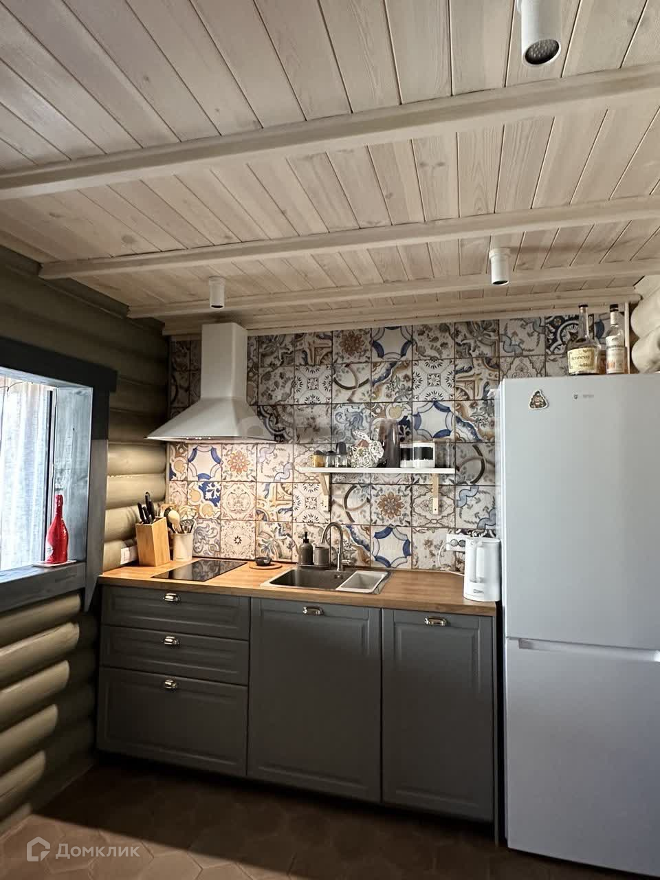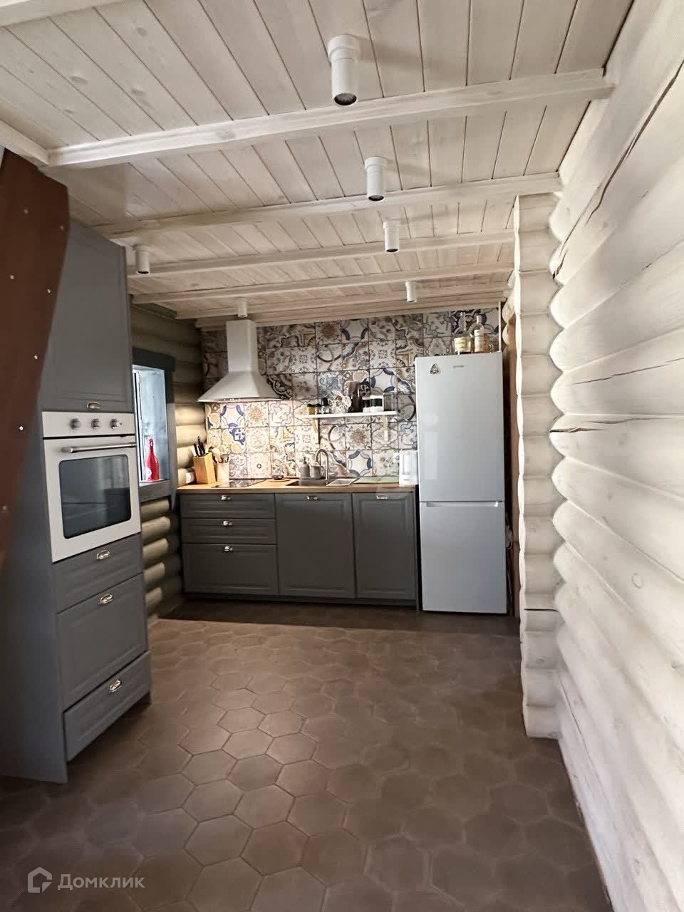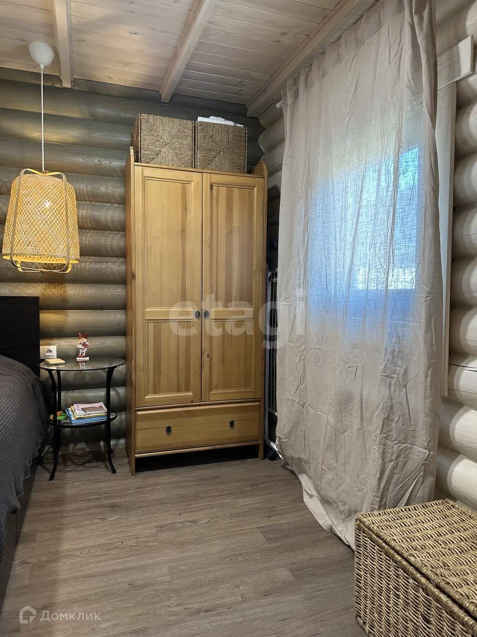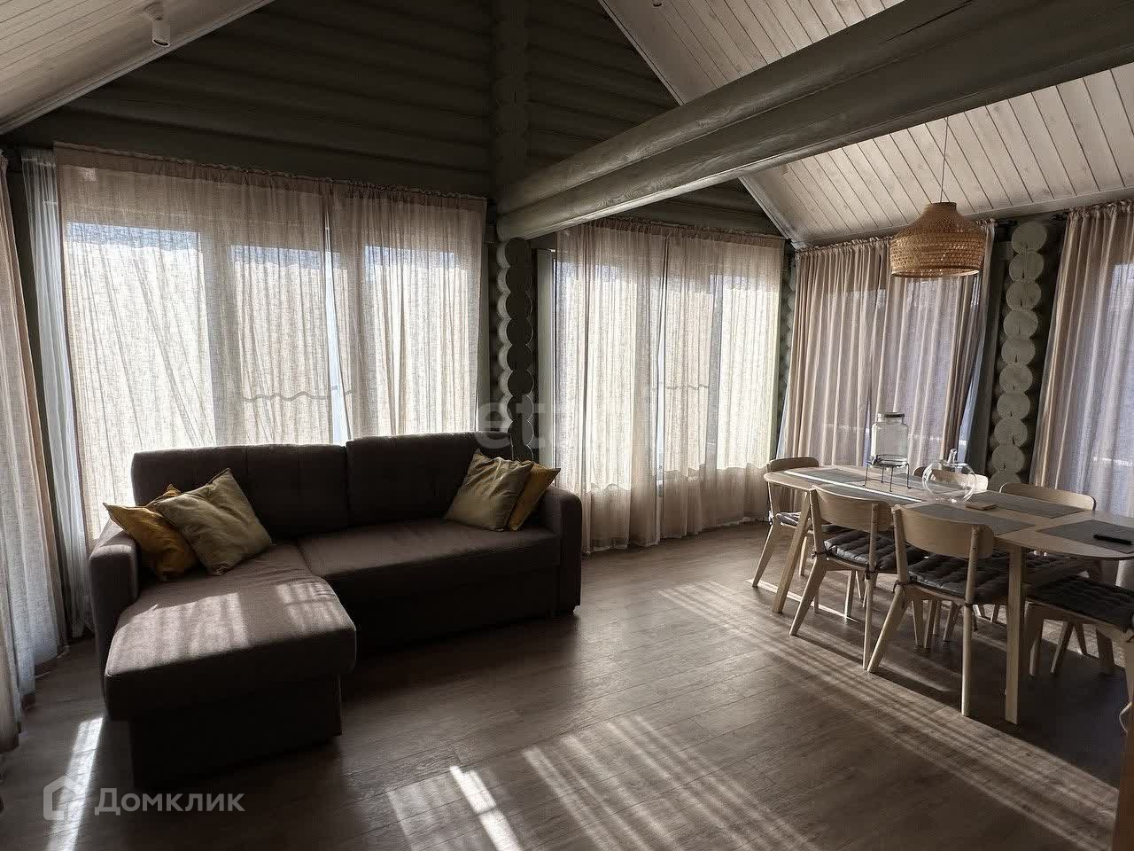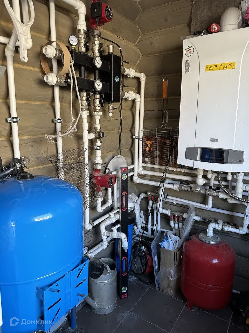 В поселке асфальтированная дорога, закрытая территория, детская площадка, проезд через КПП с шлагбаумом и охраной. Дом из оцилиндрованного бревна, вокруг дома широкая отмостка из печатного бетона, газ (двухконтурный котел BAXI), электричество, септик (Евролос ЭКО), скважина (насос Pedrollo), окна Aluplast, водяные теплые полы+радиаторы, установка по умягчению воды, установлены стабилизаторы напряжения. Откатные электрические ворота Doorhan.