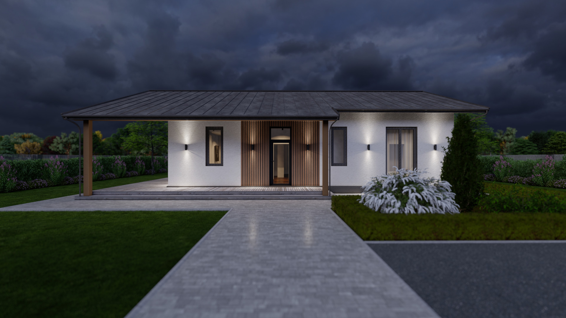 7. Фасадная штукатурка с окрашиванием в 2 слоя, отделка планкеном