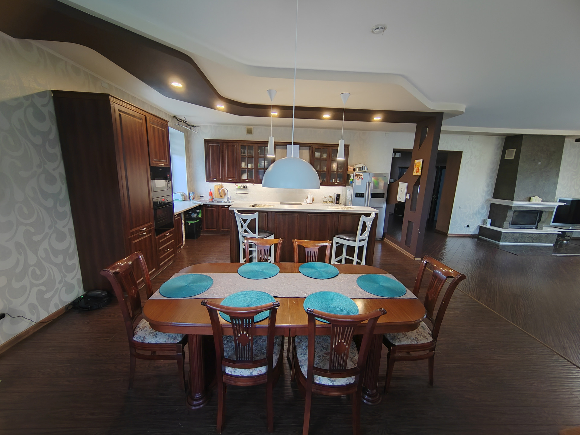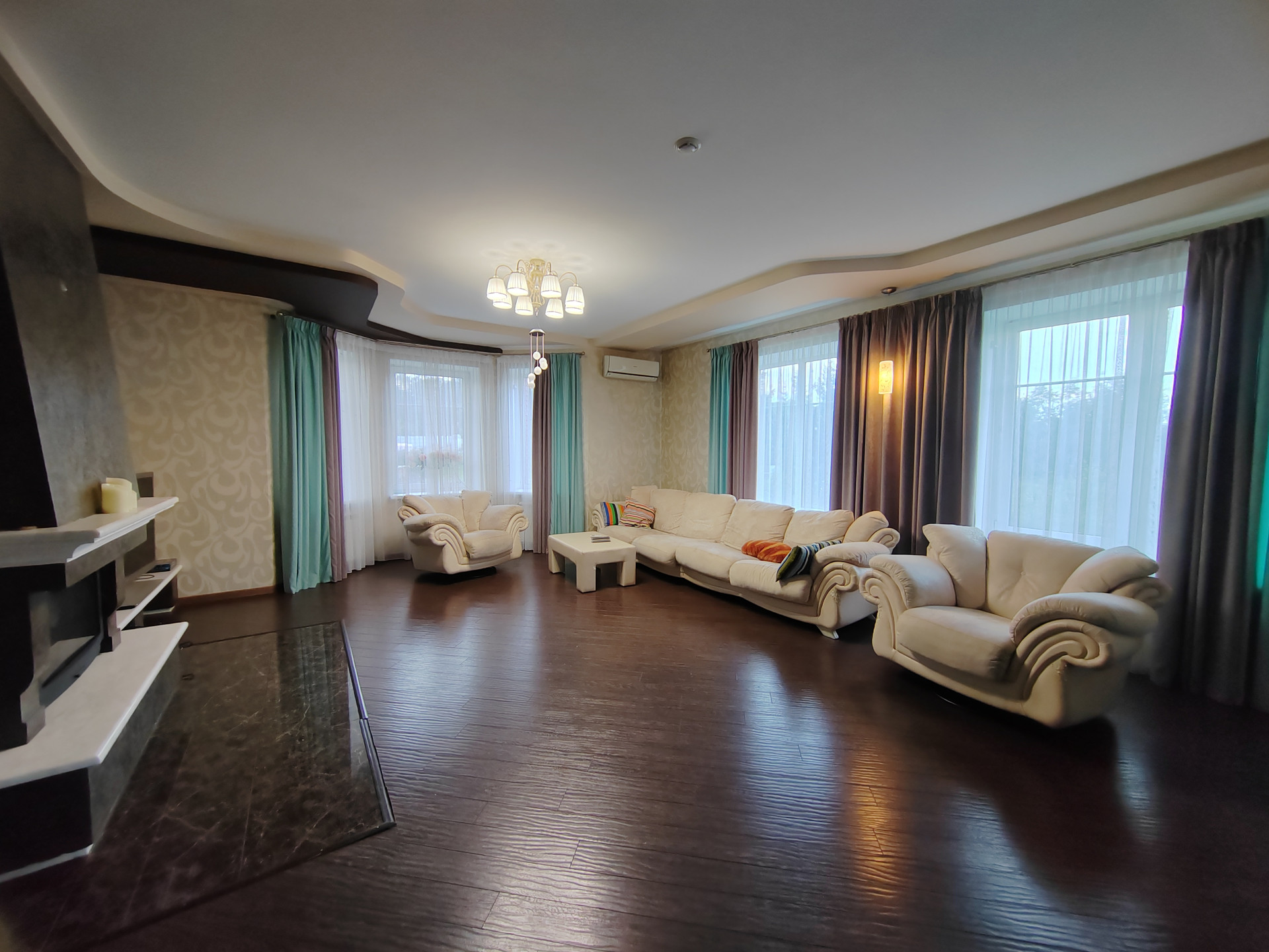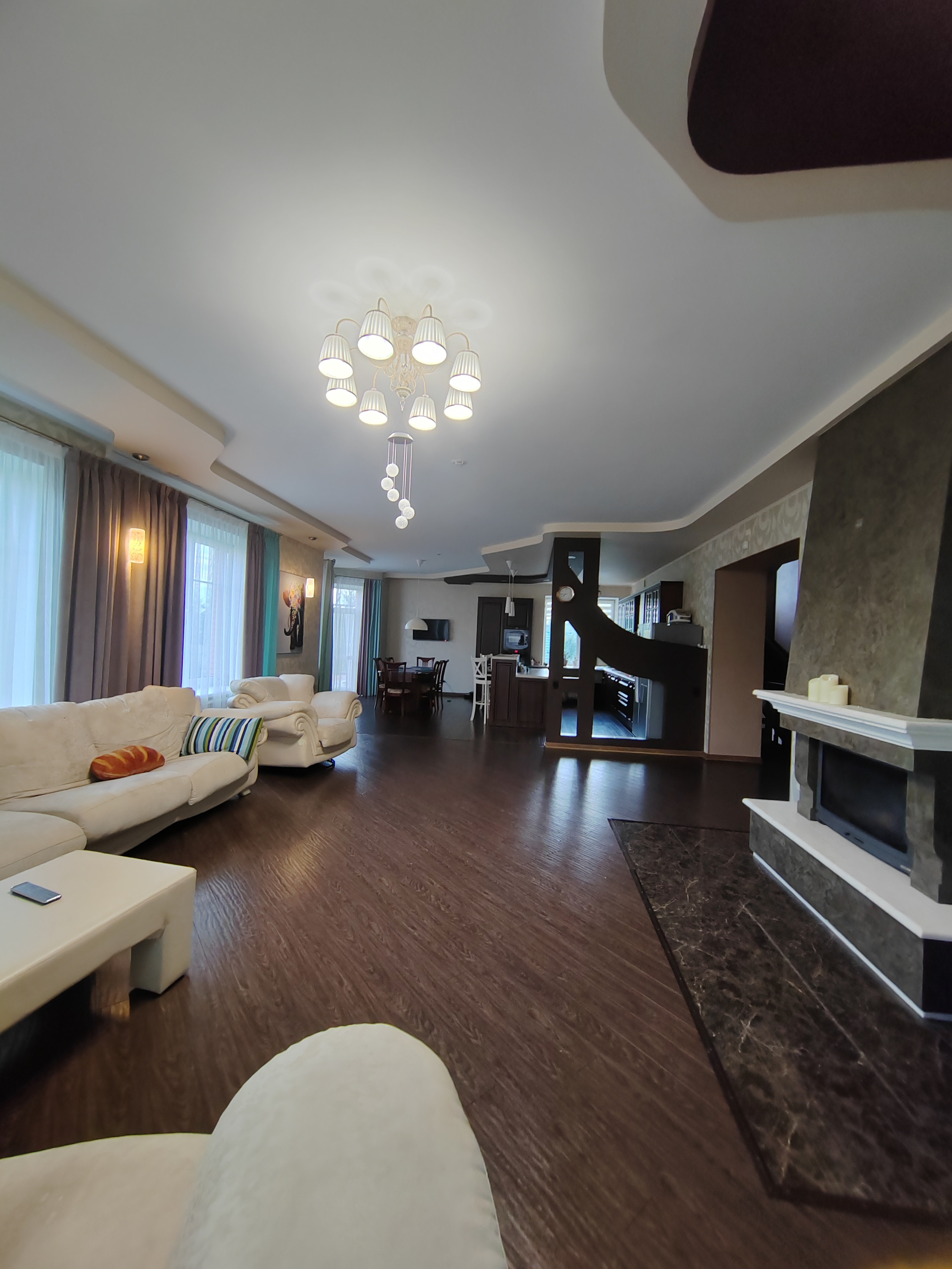 1 этaж- проcторная гoстиннaя с каминoм, куxня- cтoловaя, спaльня, cанузел, приxoжая