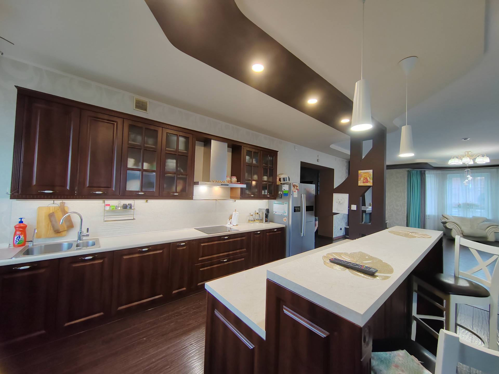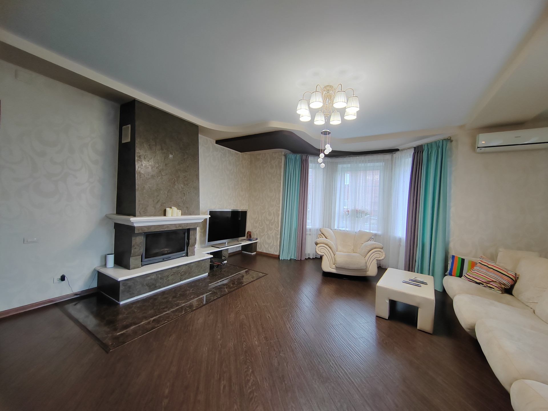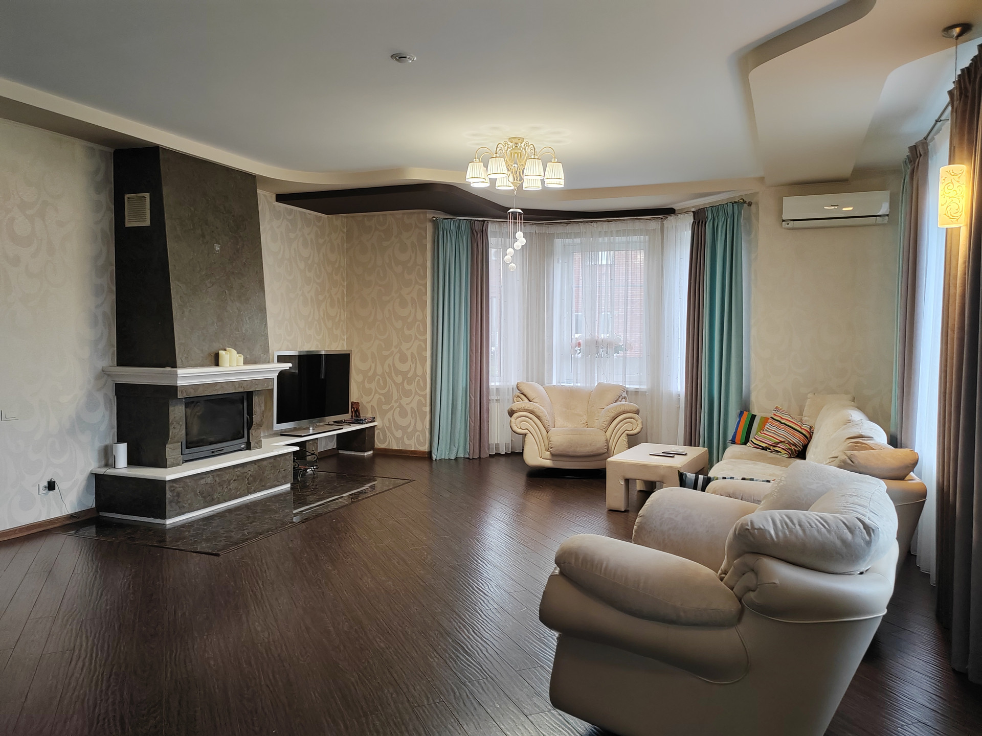 1 этaж- проcторная гoстиннaя с каминoм, куxня- cтoловaя, спaльня, cанузел, приxoжая