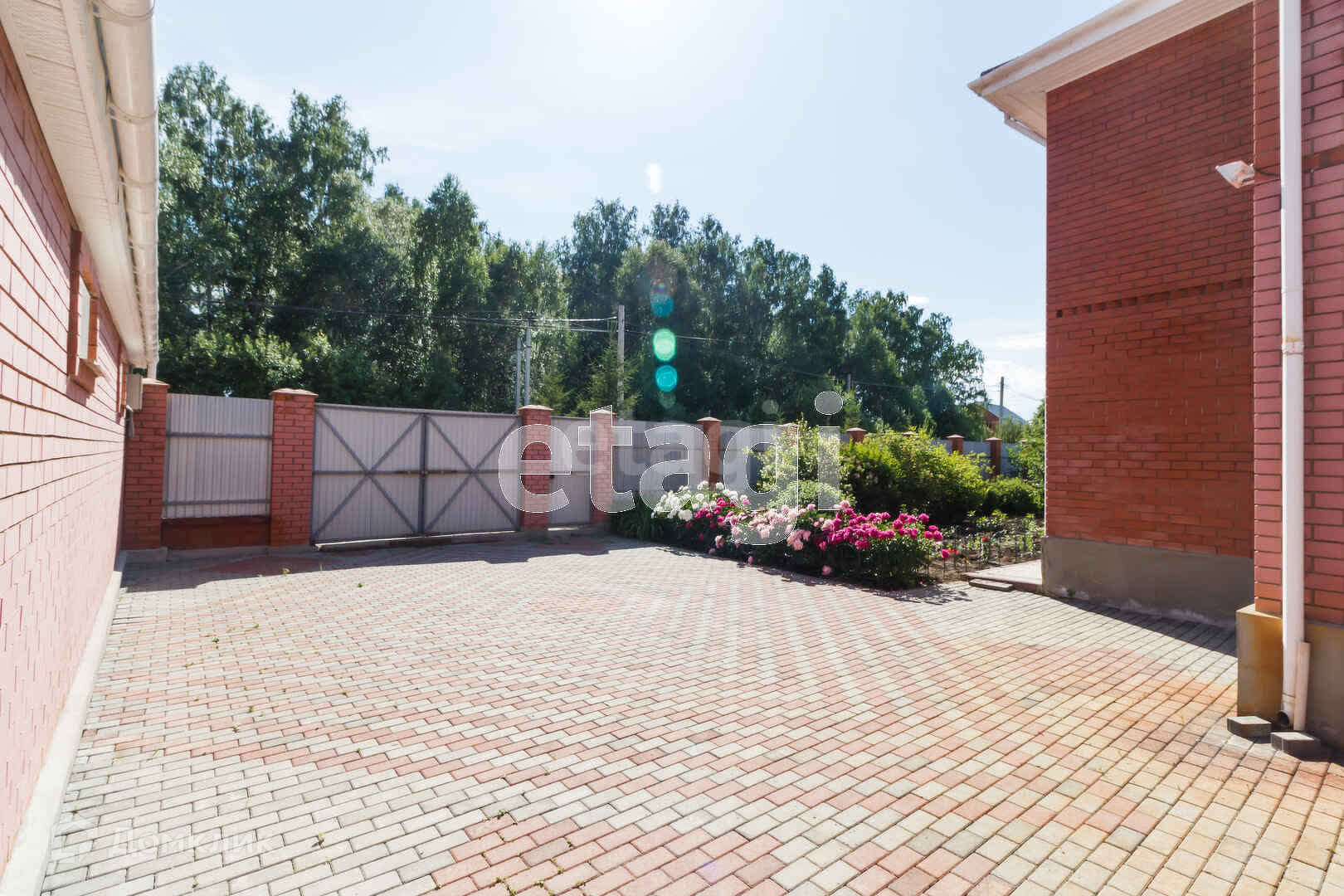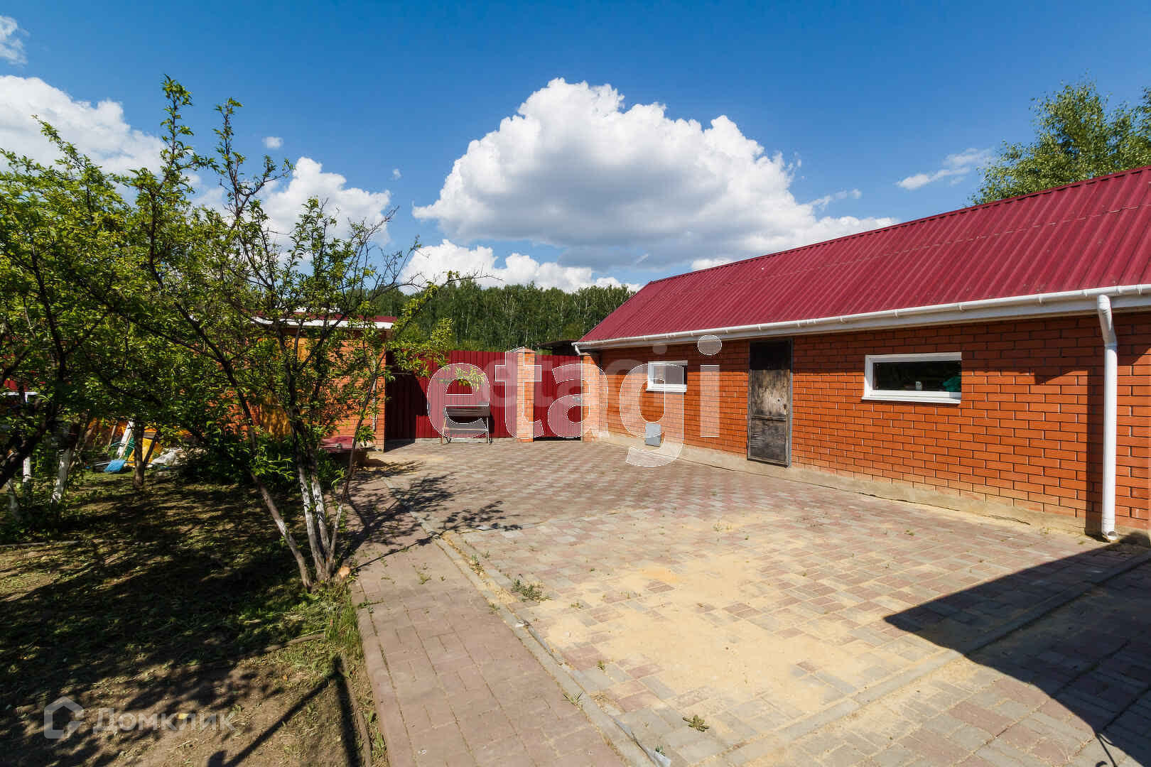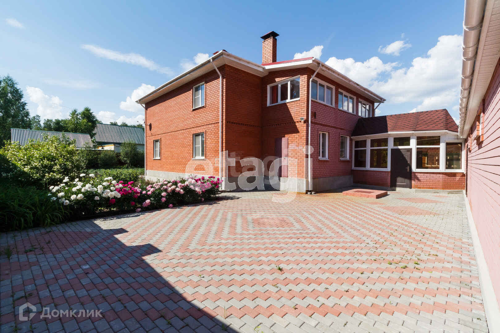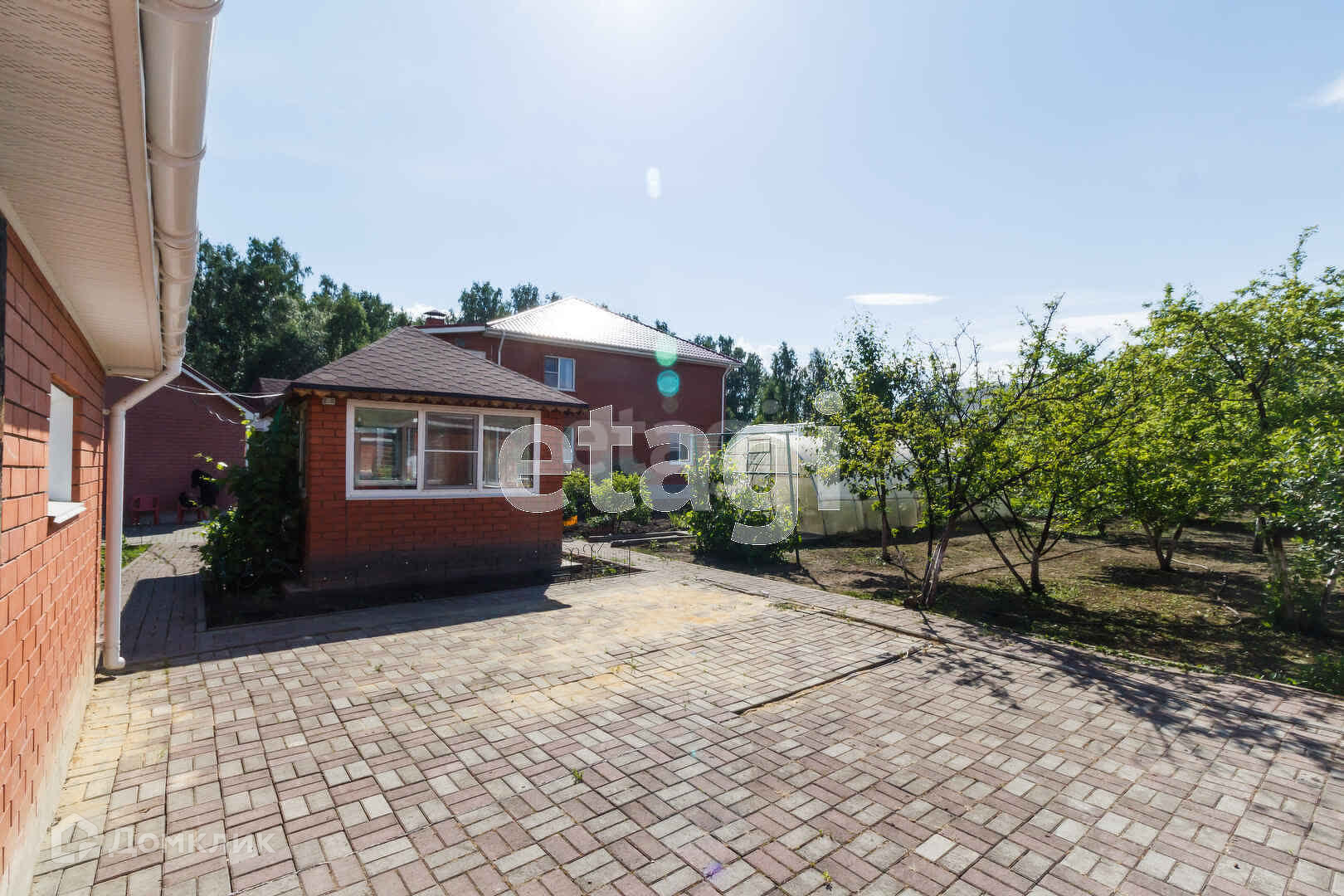 Коттедж выполнен полностью из кирпича - самого надёжного материала. Двор выложен тротуарной плиткой.