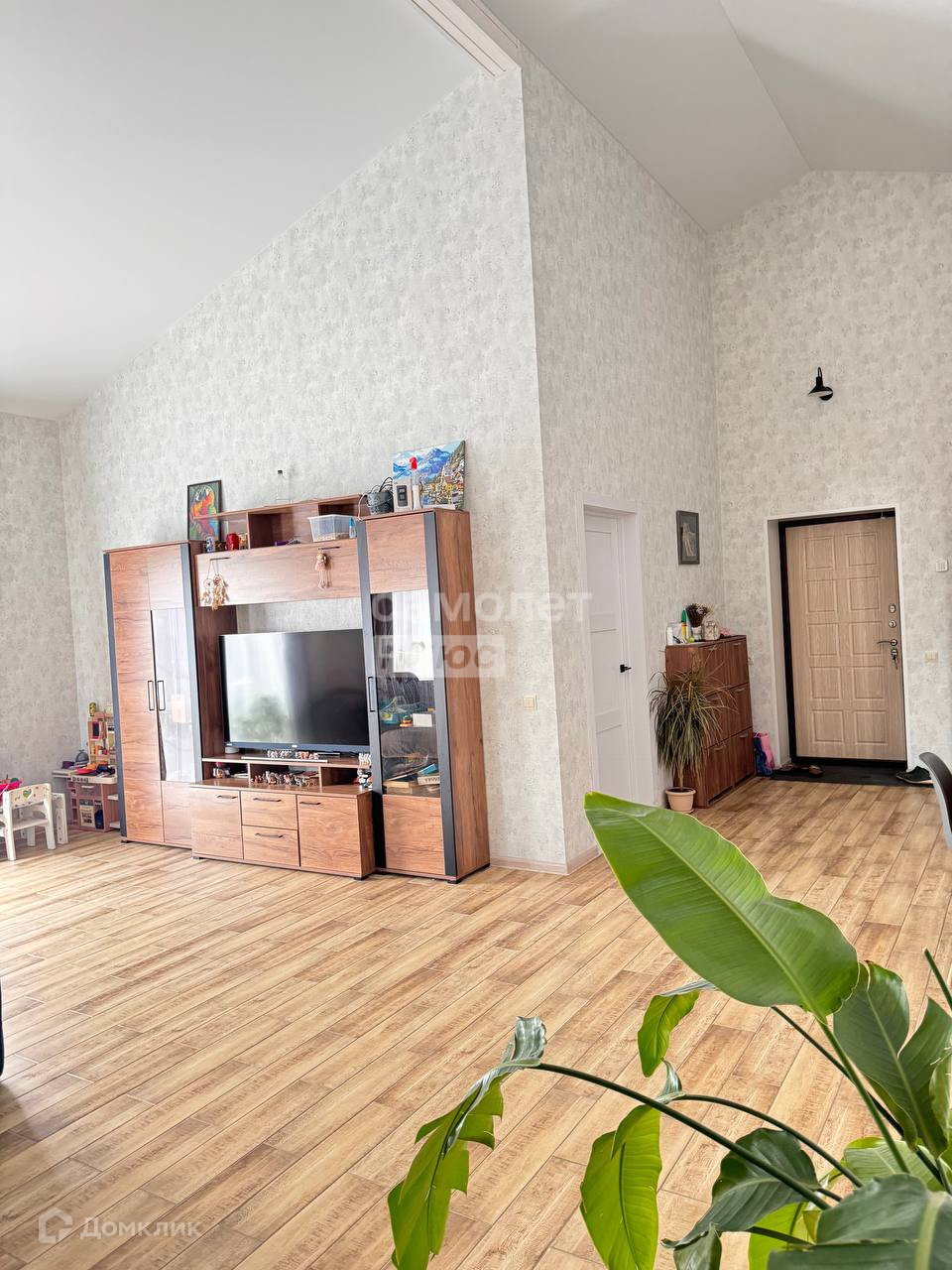 большой высокий потолок «коньком», высота в коньке около 5 метров