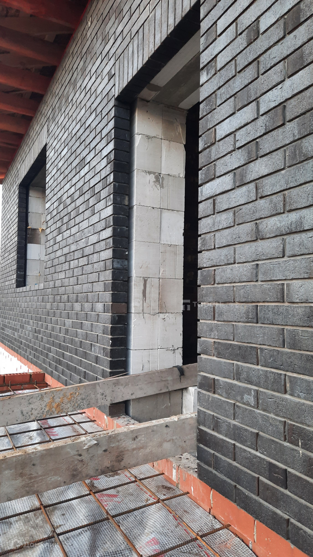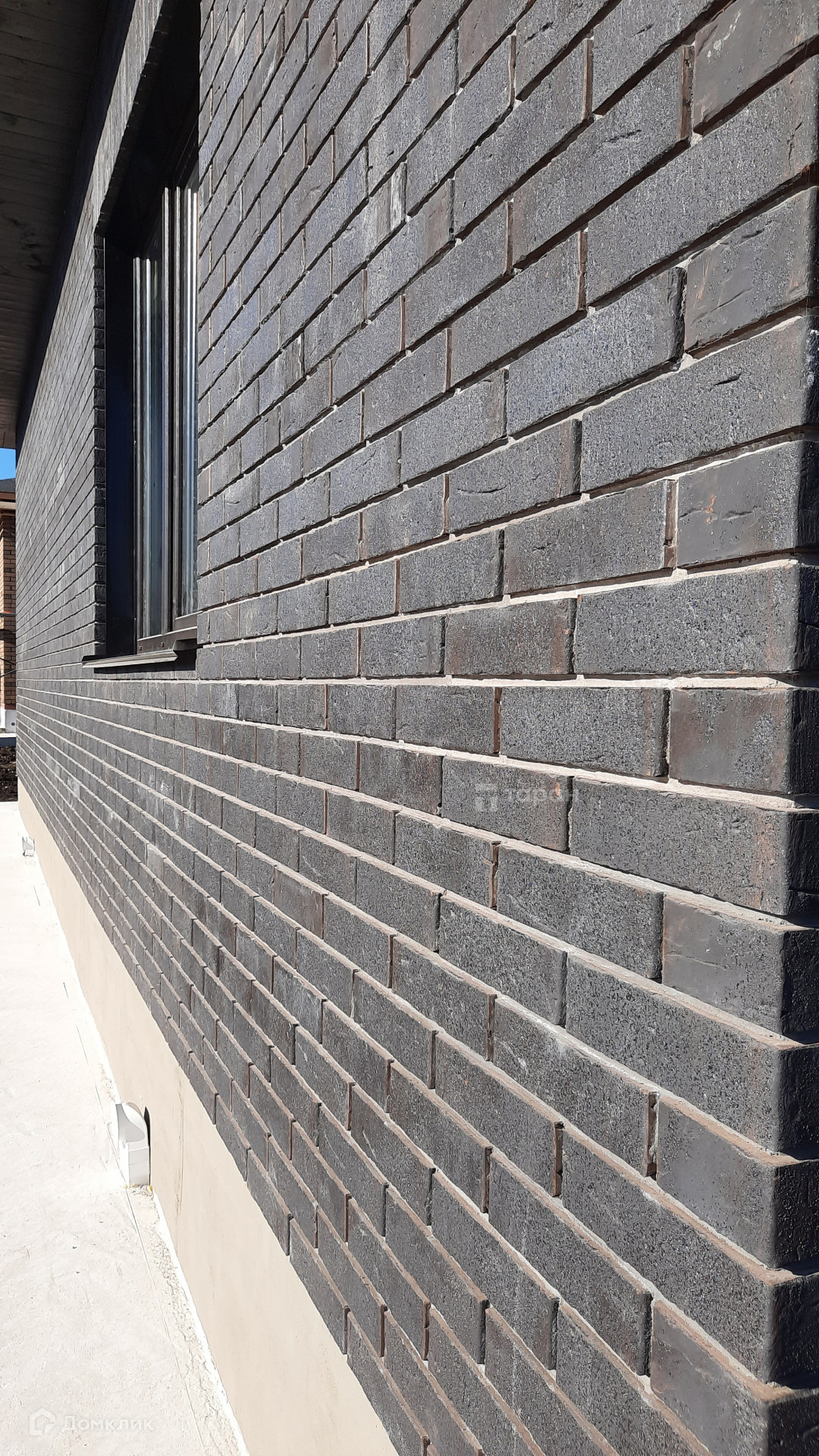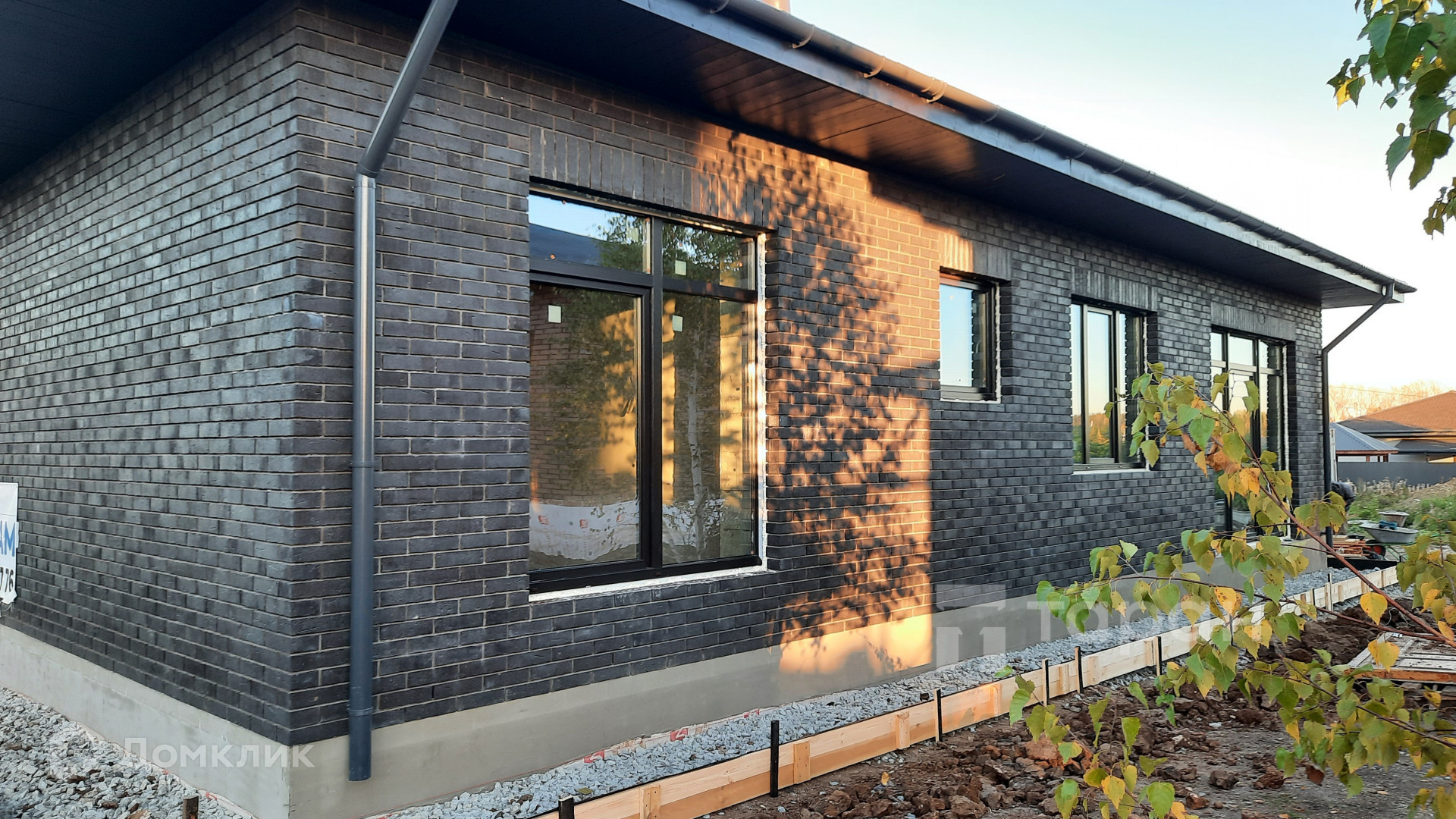 - Материал стен: Газоблок, облицовка фасада - кирпич керамический Мангейм Шварц (черно-серый).
