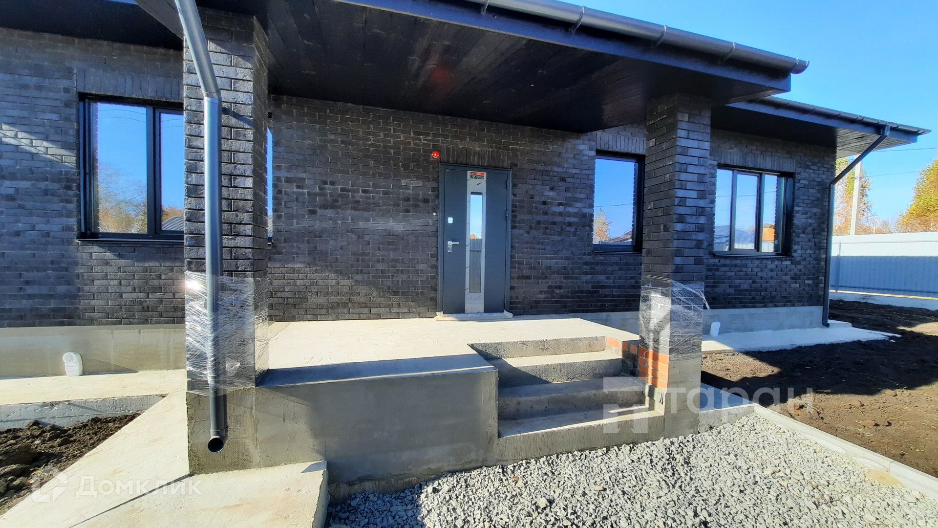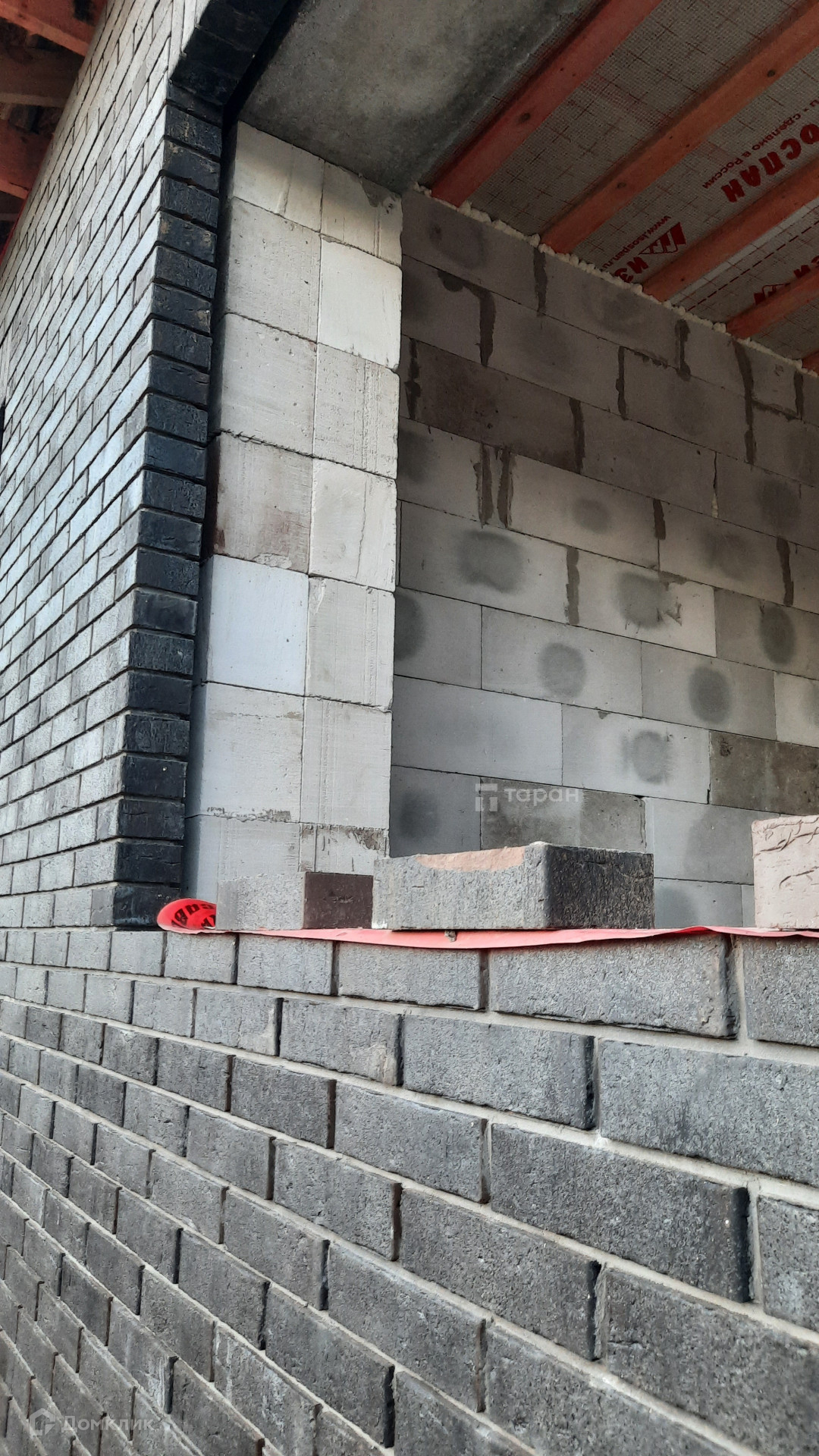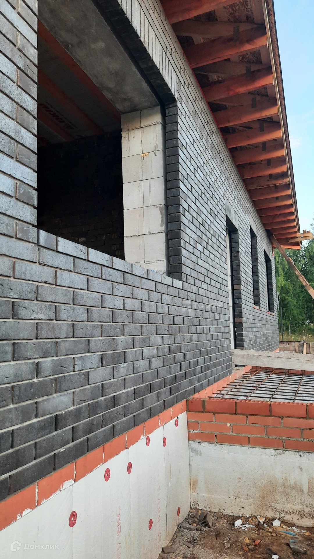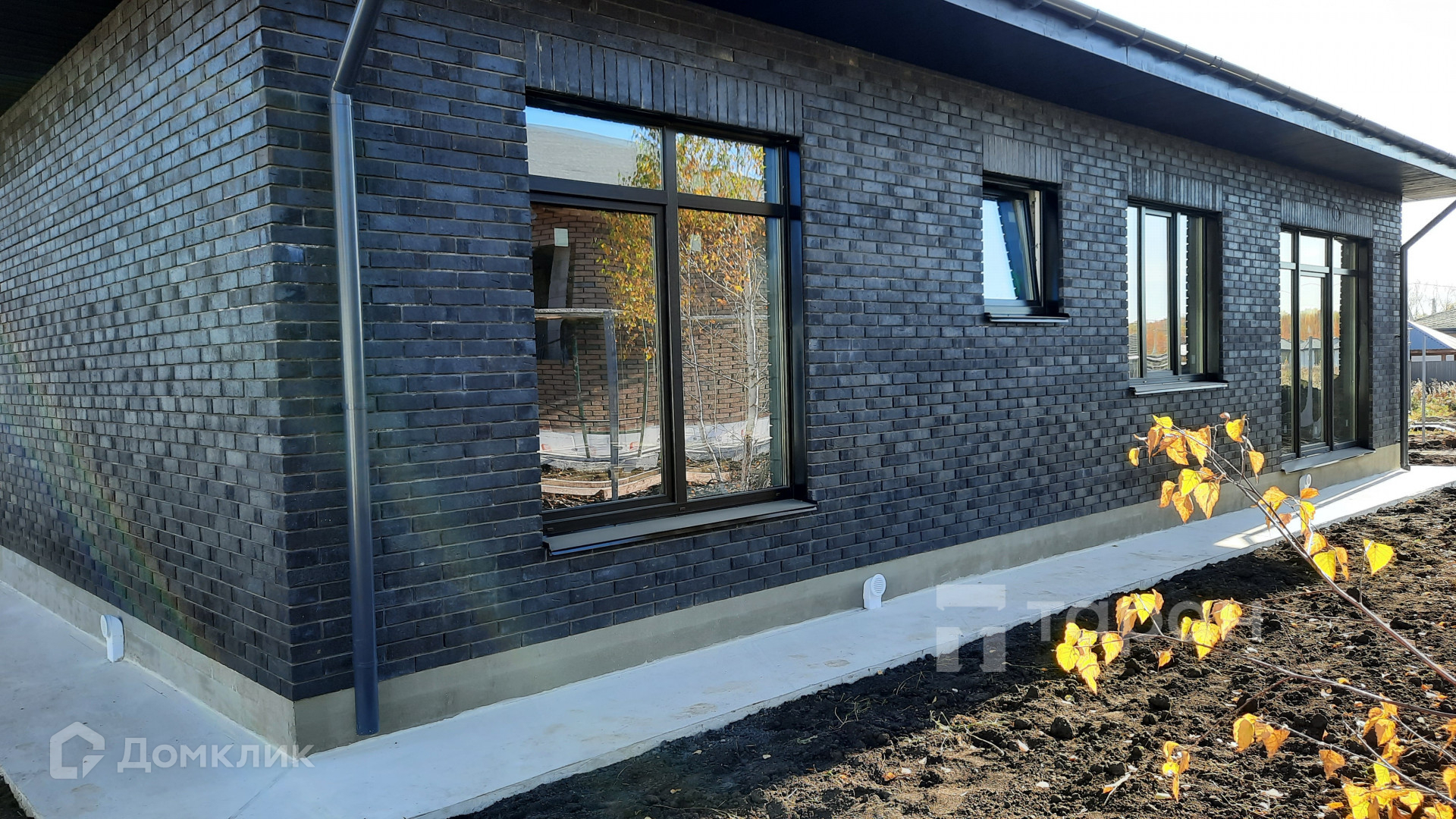 - Материал стен: Газоблок, облицовка фасада - кирпич керамический Мангейм Шварц (черно-серый).