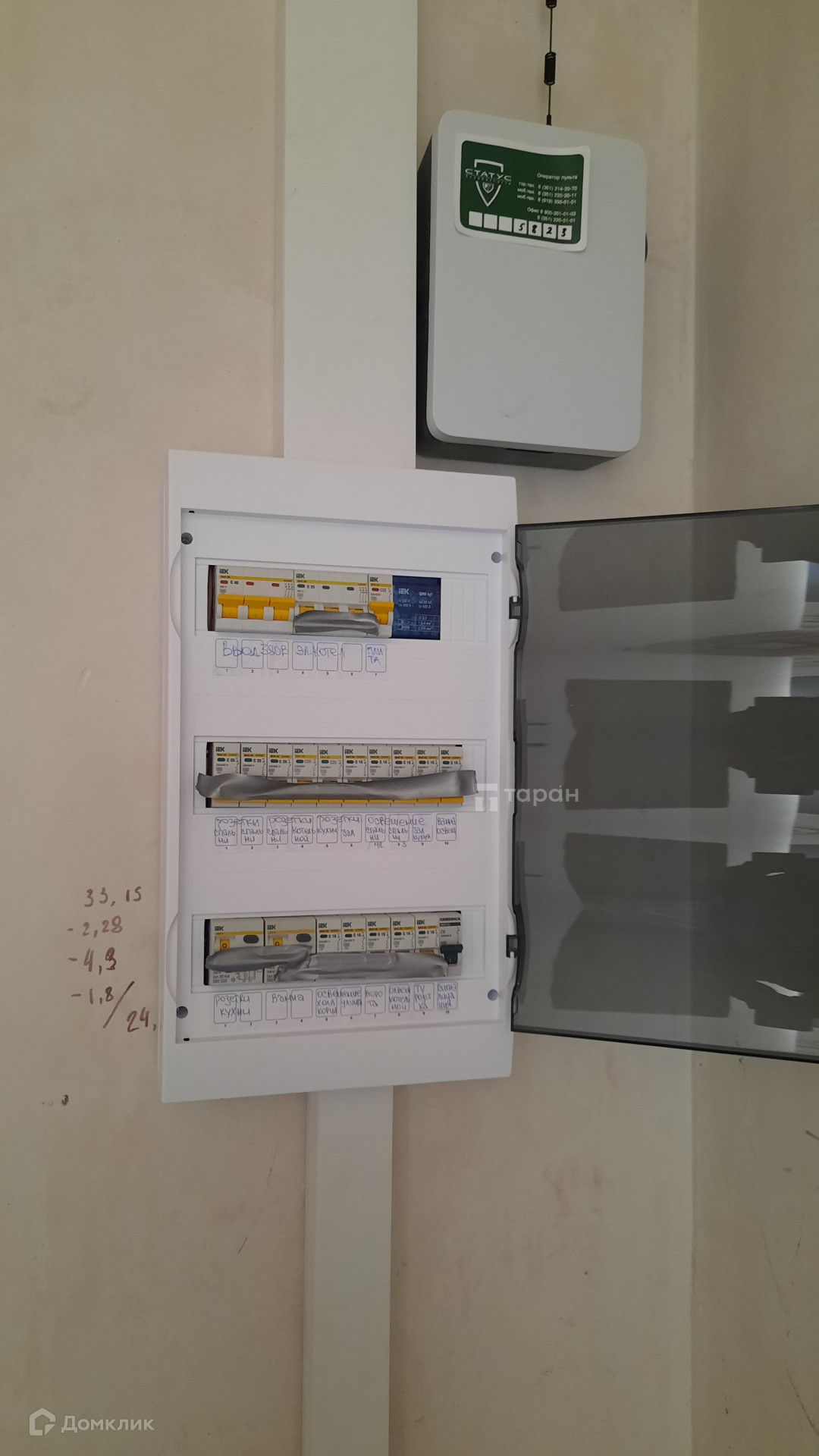 - Электроснабжение: Вводной эл. щиток (шкаф) на столбе с автоматом 40А. В доме: Щит вводно-распределительный (Автоматический выключатель 18 шт.).