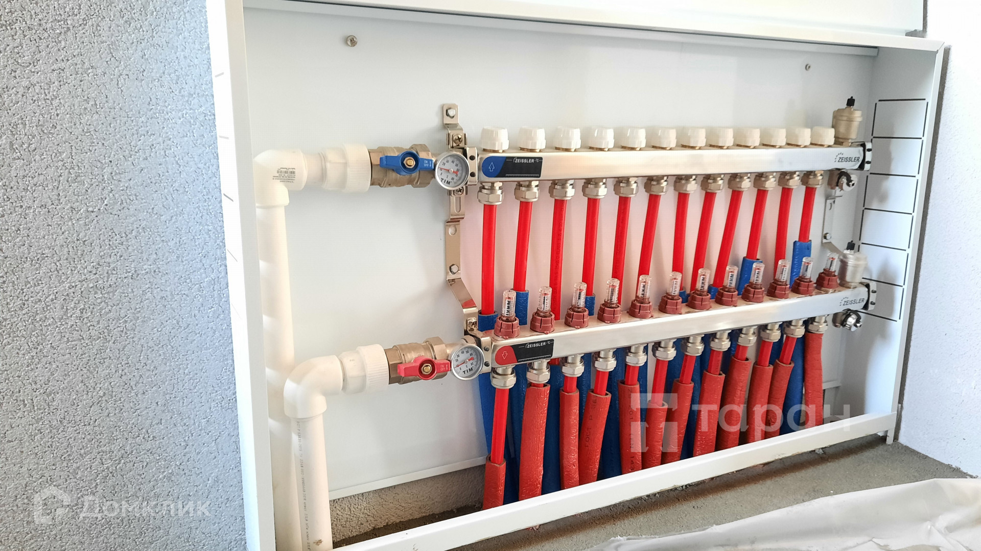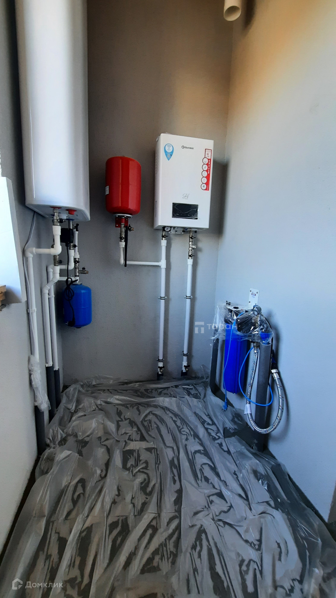 - Отопление: Электрический котёл (мощность 12кВт), бойлер. «Гребенка» теплого пола на 12 контуров в котельной. Теплый пол по всему дому в стяжке из термостойкого полиэтилена диам.16 мм.