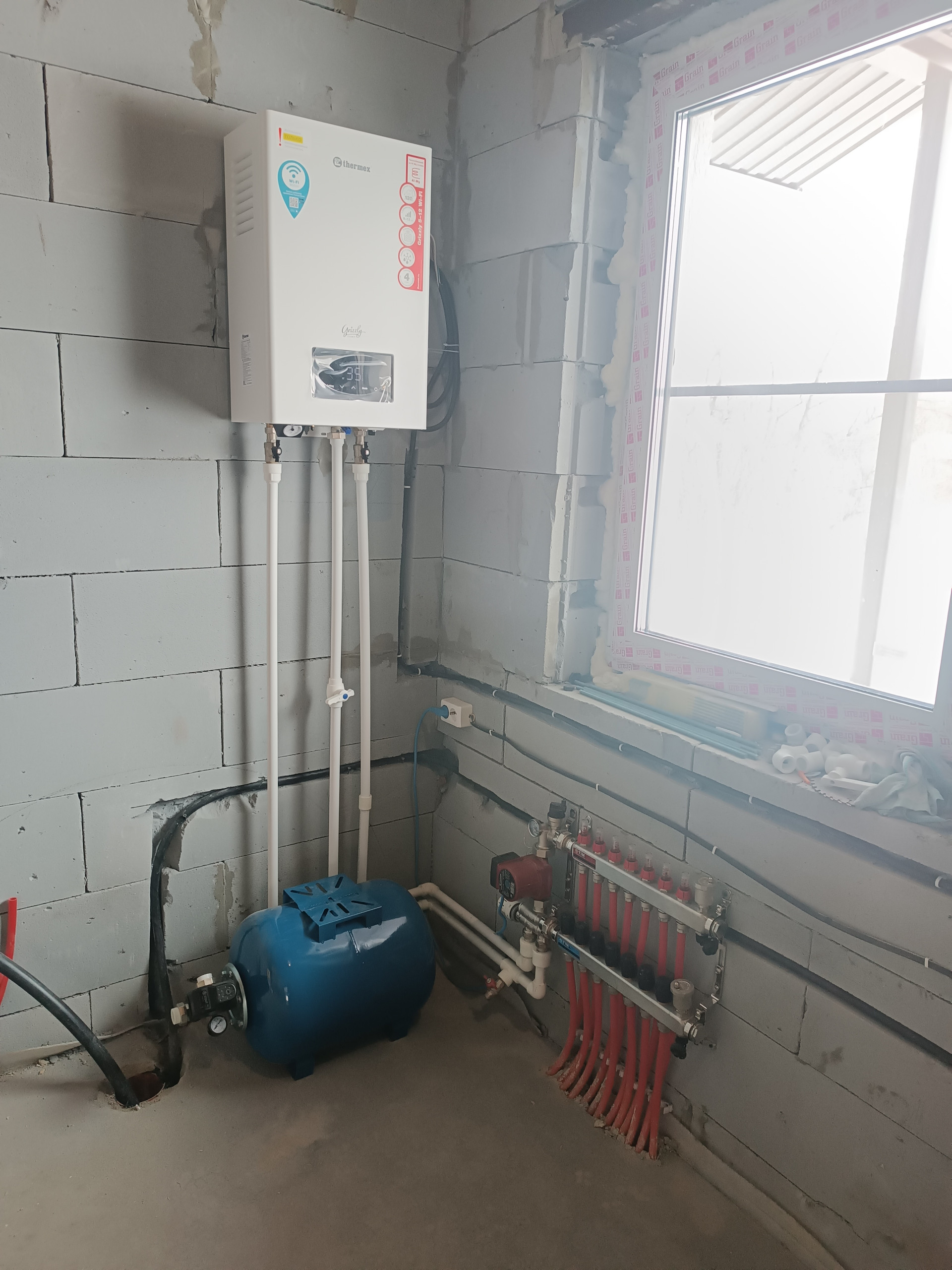 - отопление от электрического котла(12кВт),теплый водяной пол во всем доме с регулировкой по контурам