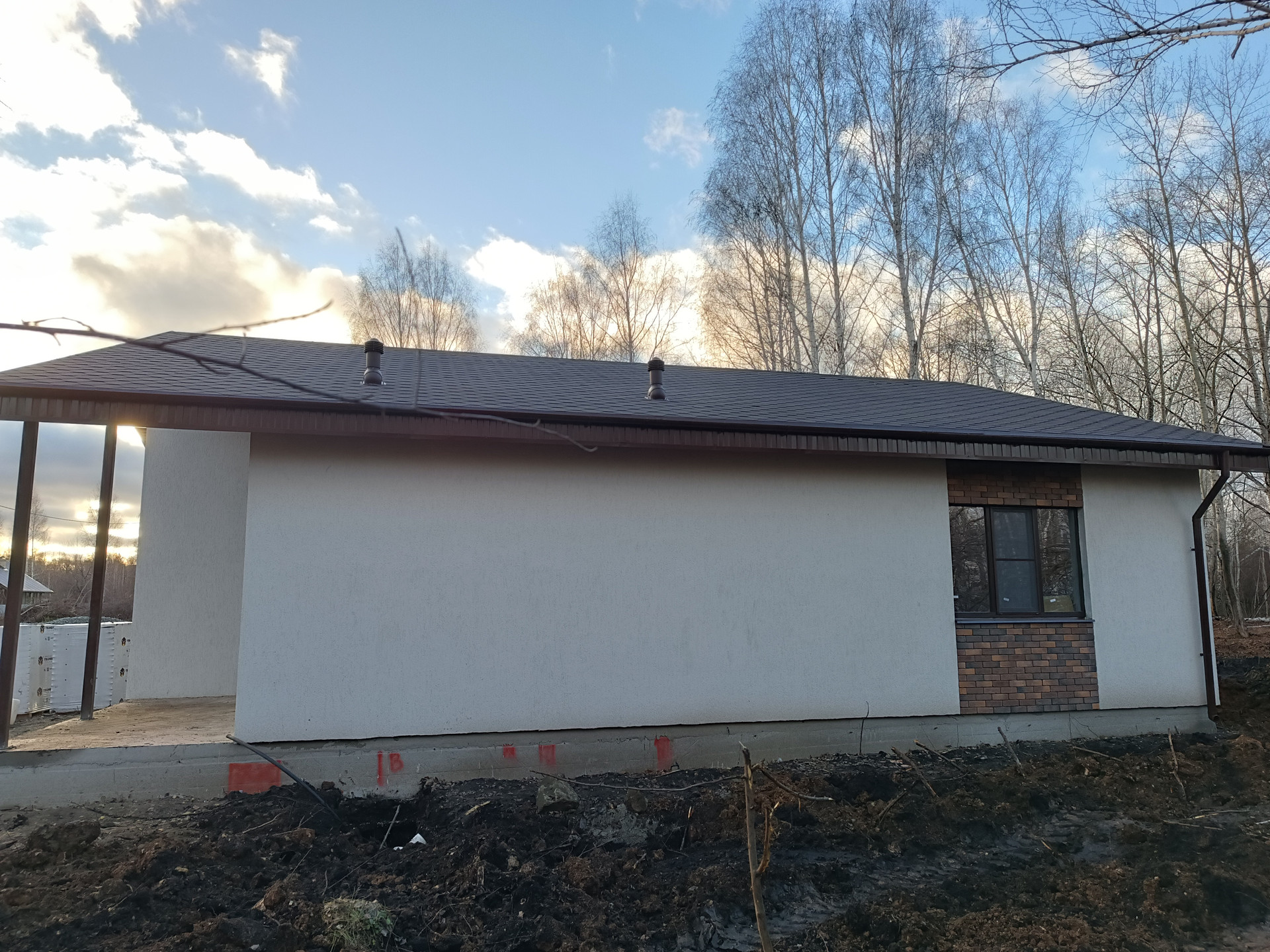 - мягкая кровля Технониколь Shinglаs, утеплитель 20см, Вент каналы Viоttо, система водоотлива.