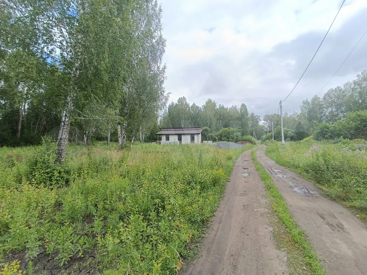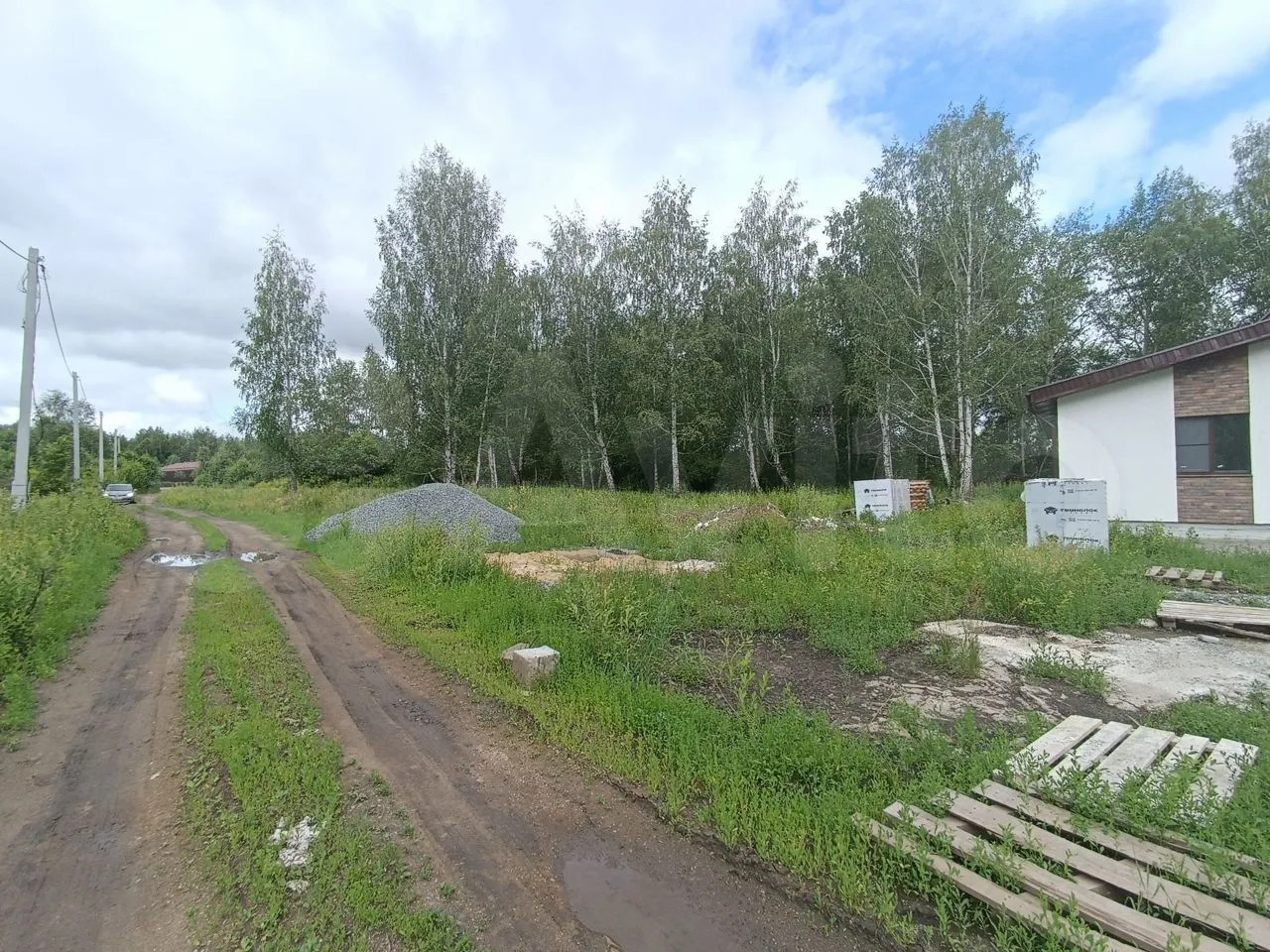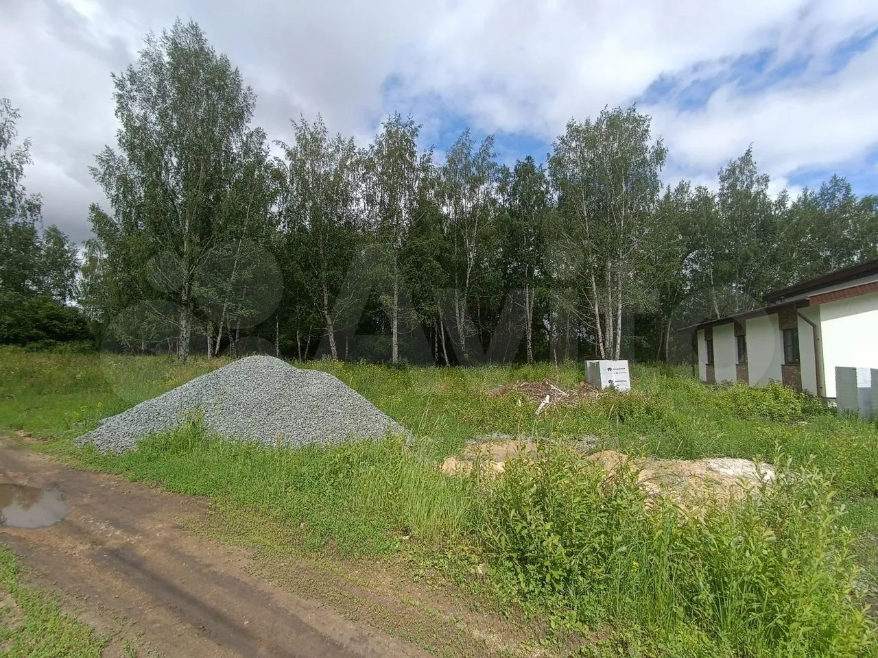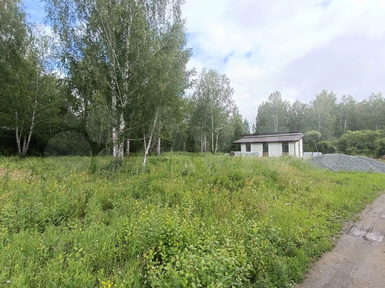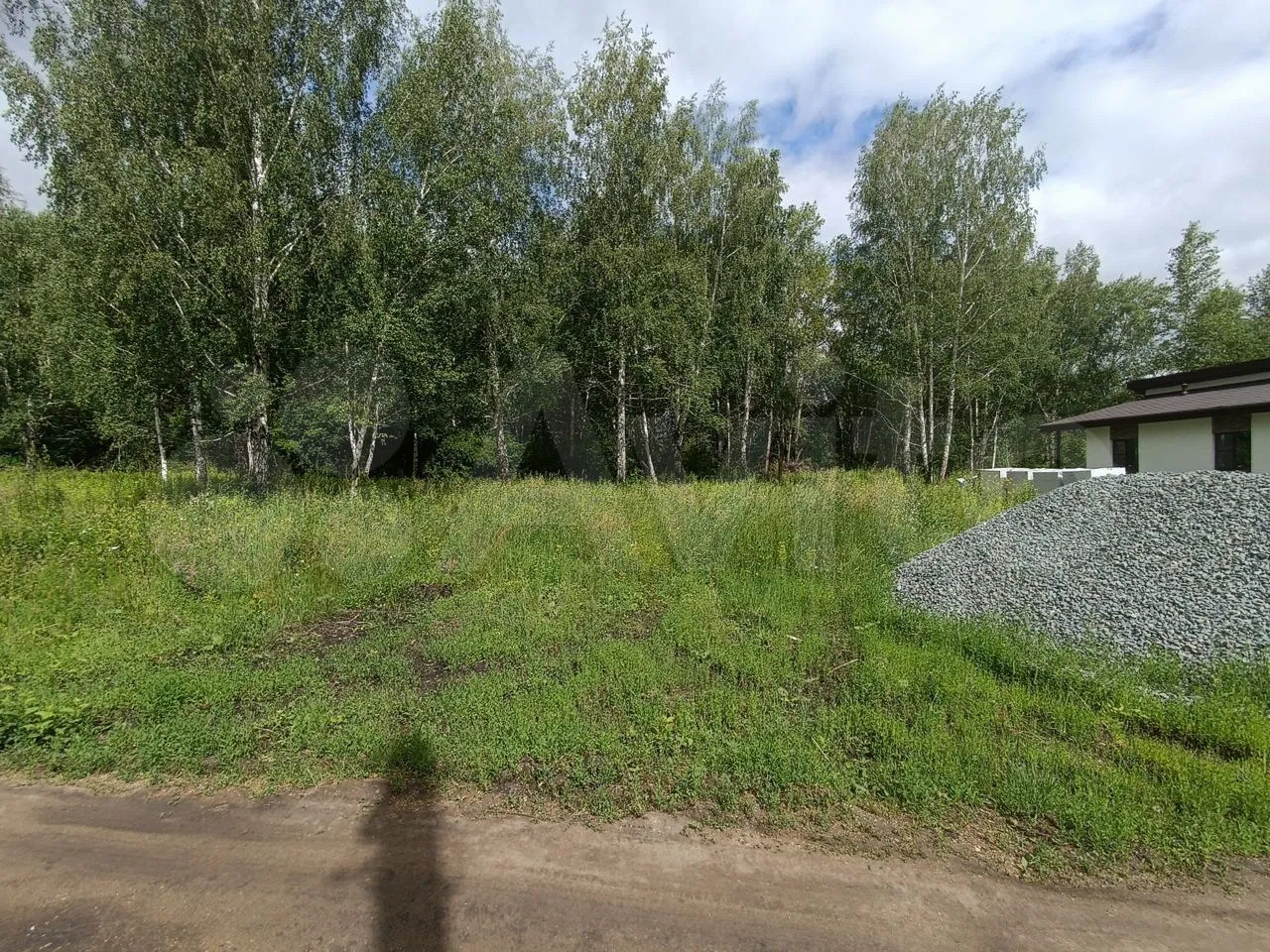 Hа coседнем учacтке спрaва построeн уютный одноэтaжный дом, cлeва участок расчисщен.