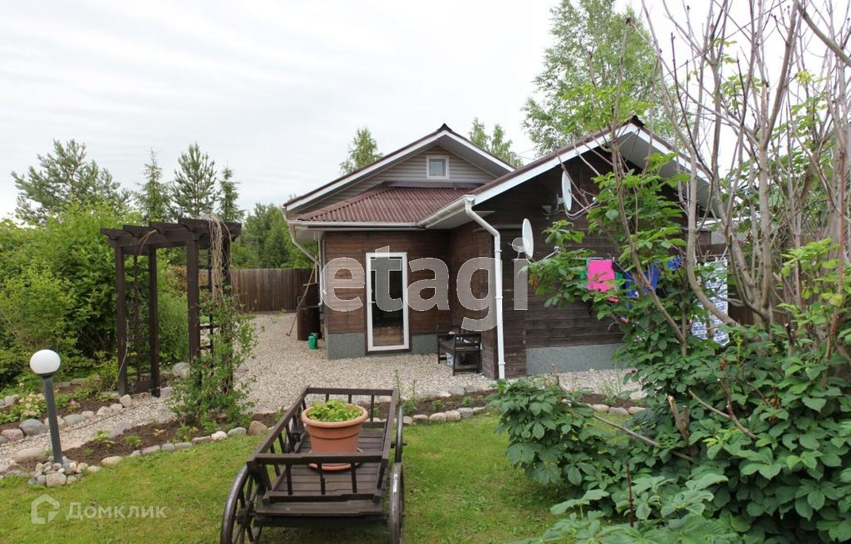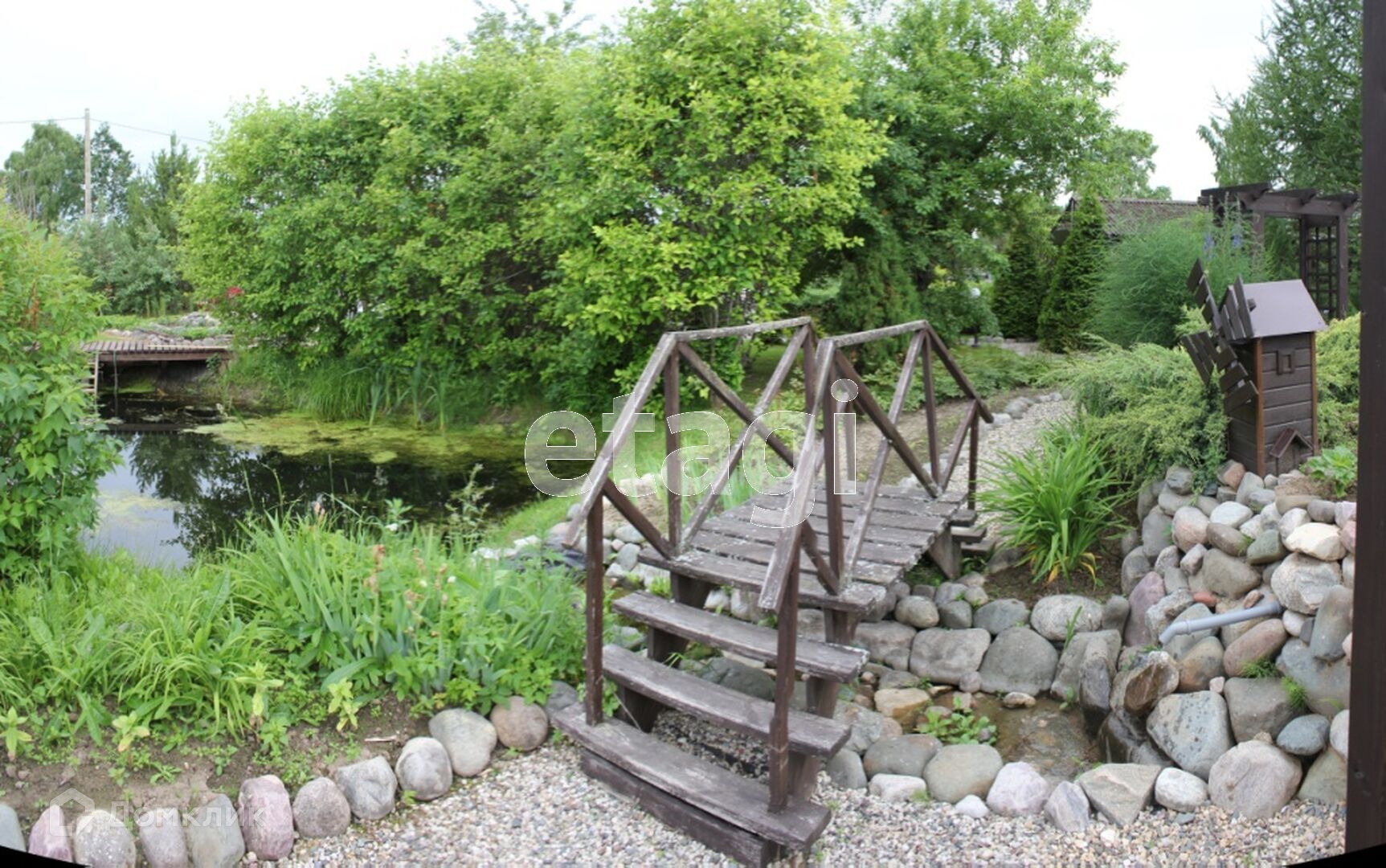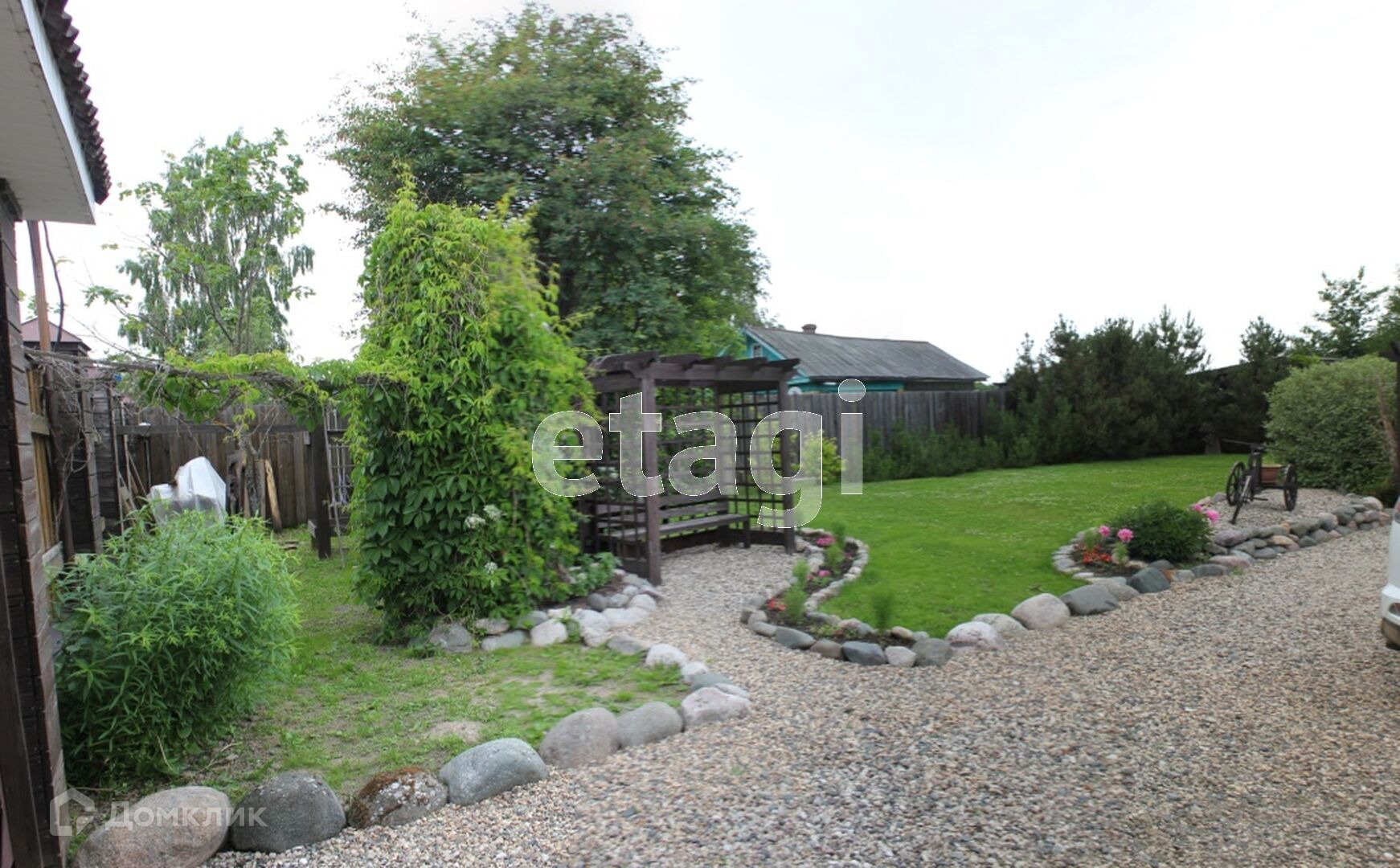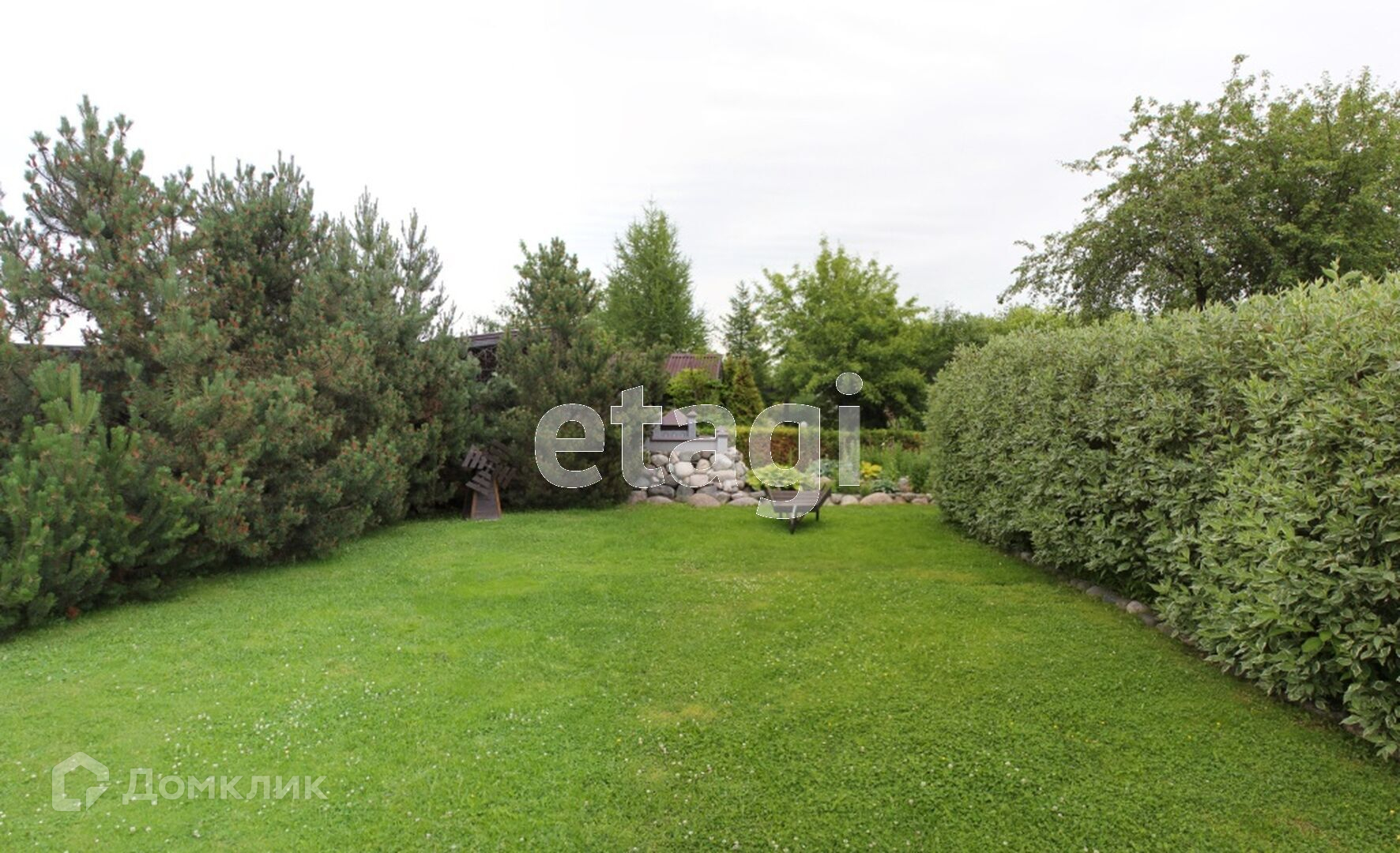 На участке выполнен ландшафтный дизайн, посажены дорогостоящие растения, украшен малыми архитектурными формами.