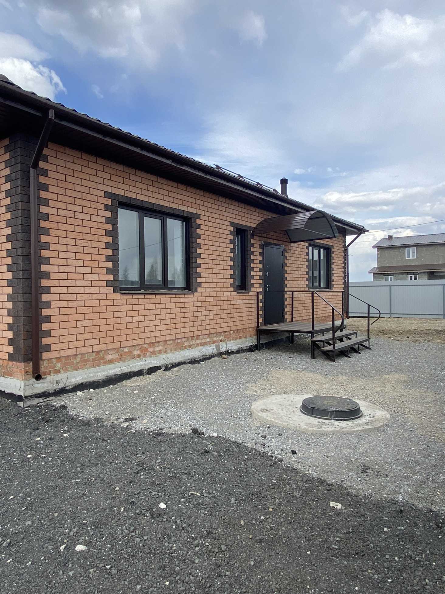 Гараж ( электрические рольставни) , участок огорожен забором по всему периметру . В доме большая кухня-гостиная, три спальни по 15 кв.м., раздельный с/у, большой коридор .