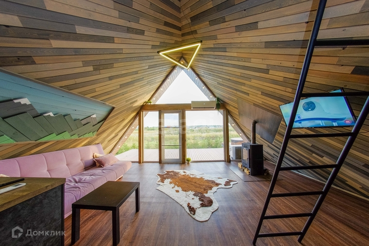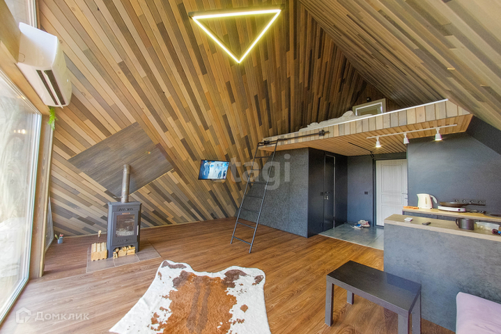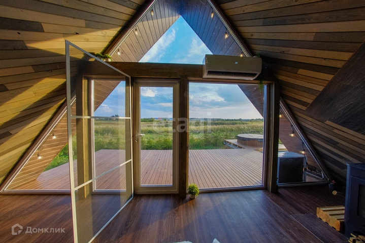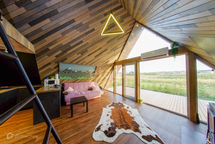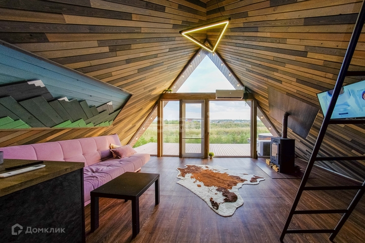 Представлен к продаже дом в стиле А-Фрейм. Эксклюзивный объект с уникальным планировочным решением, который влюбляет в себя с первого взгляда. В доме сделан стильный, качественный ремонт, из экологически чистых материалов. Панорамные окна - из которых открывается шикарный вид на природу. Планировка: 1 этаж кухня гостиная, каминная зона, санузел (совмещенный в кафеле), гардеробная. 2 этаж зона отдыха (спальня). Проведен интернет, есть возможность завести газ, водоснабжение-скважина, канализация-септик. Ограждение живая изгородь (ель), на участке имеется купель подогреваемая дровами.