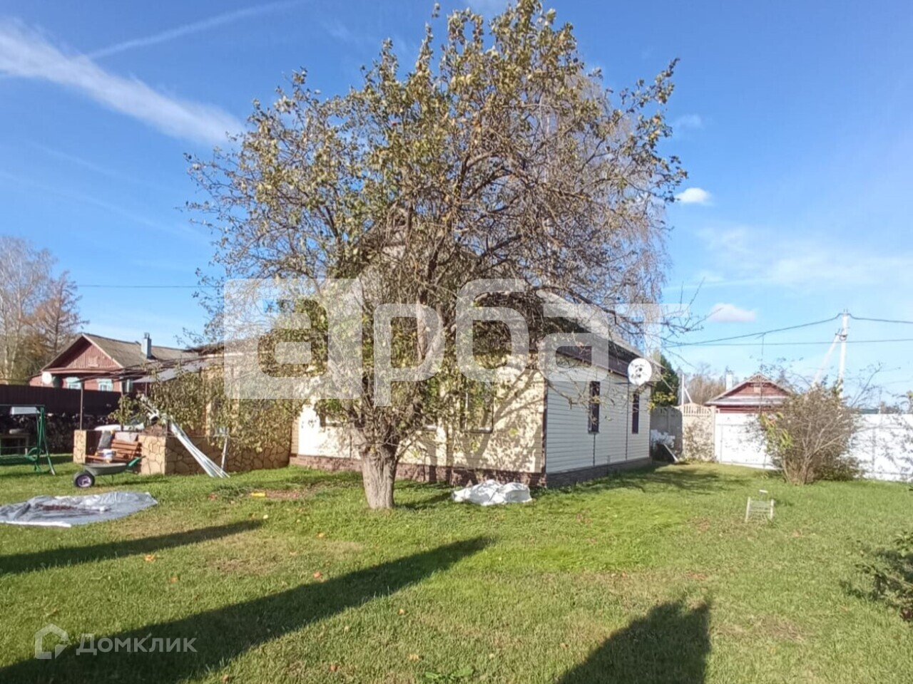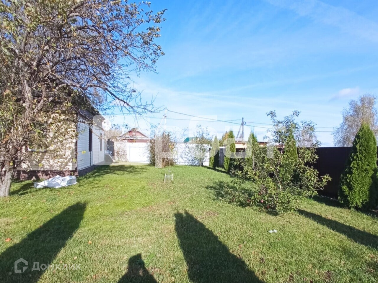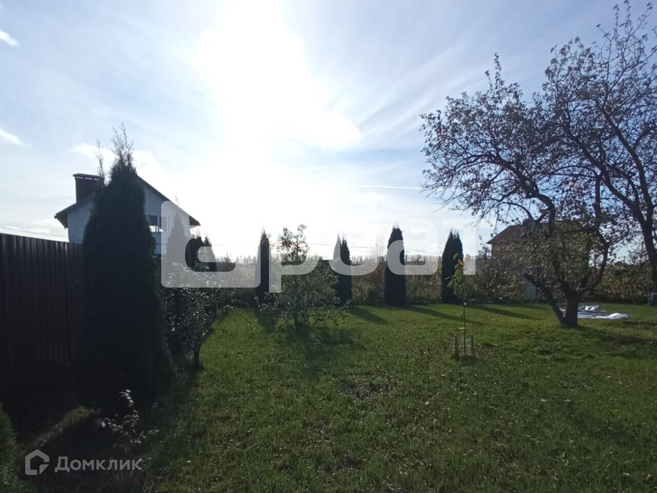 На территории есть беседка, баня, парковка под три автомобиля, культурные растения: 4 яблони, 4 вишни, 2 груши, орешник, 1 черешня и 10 пихт.