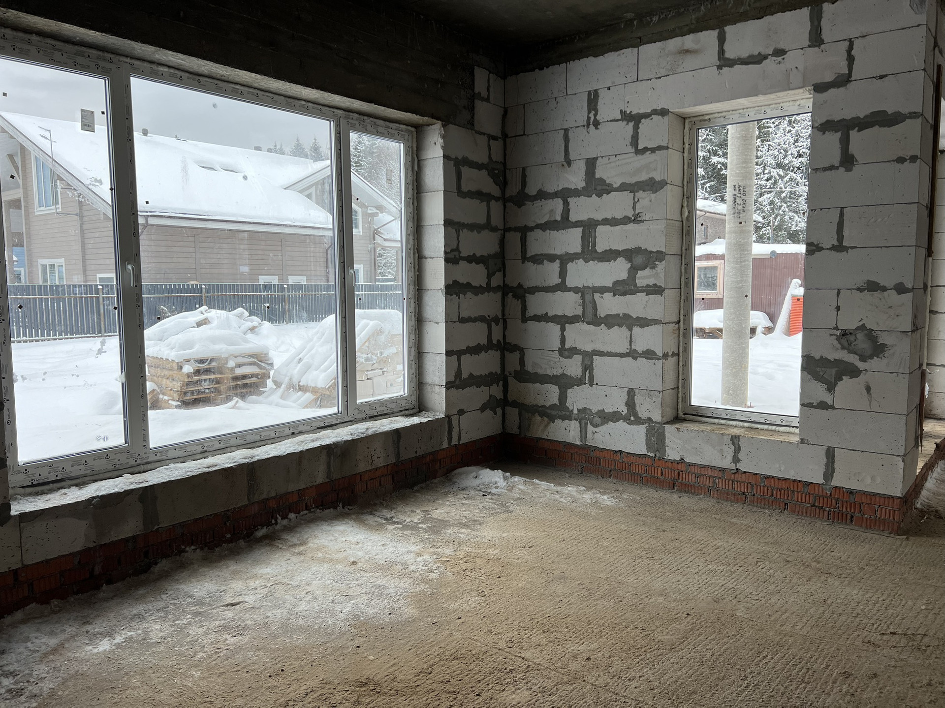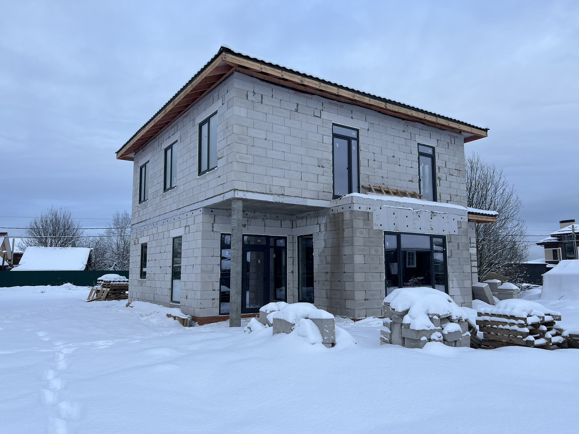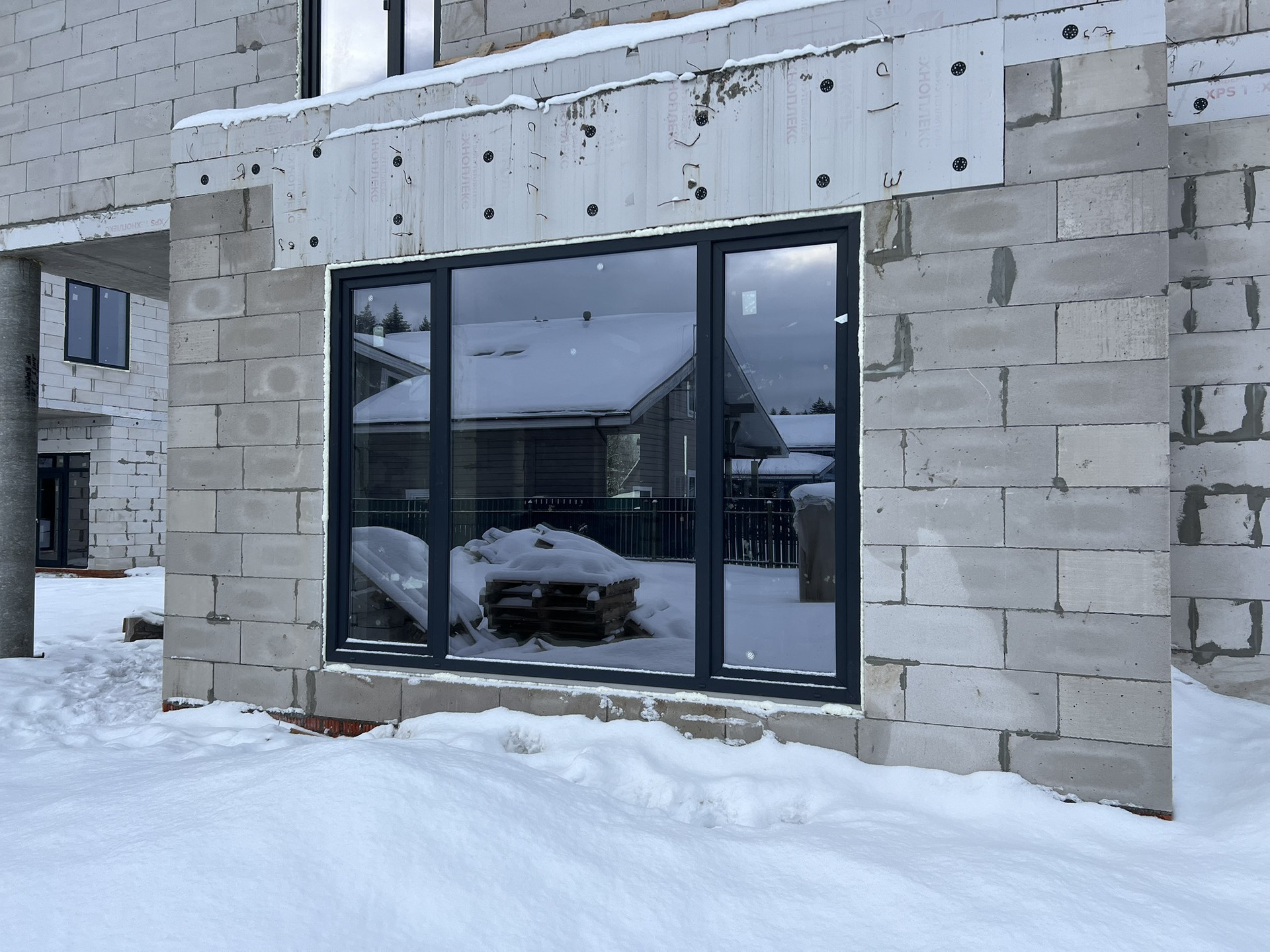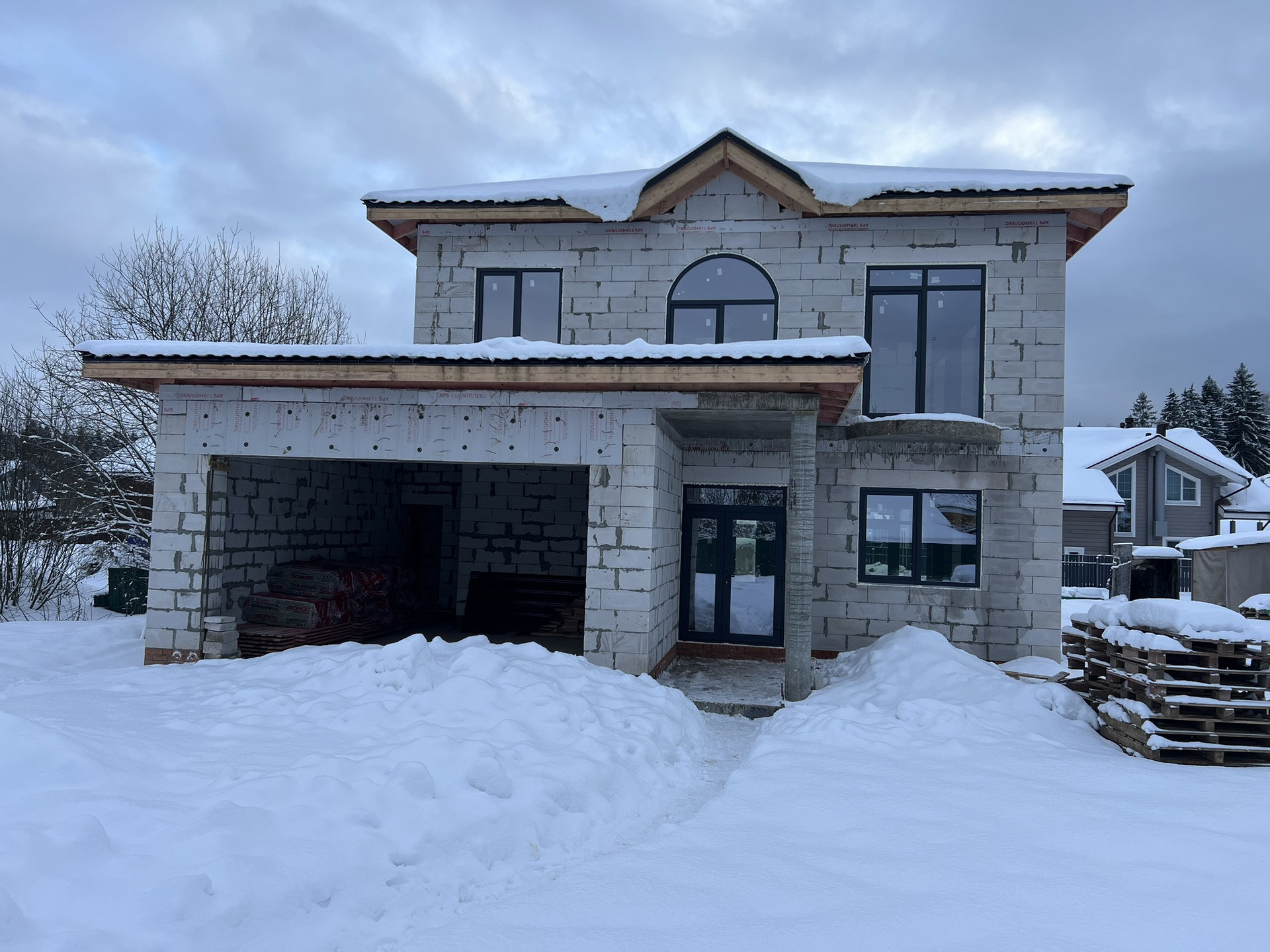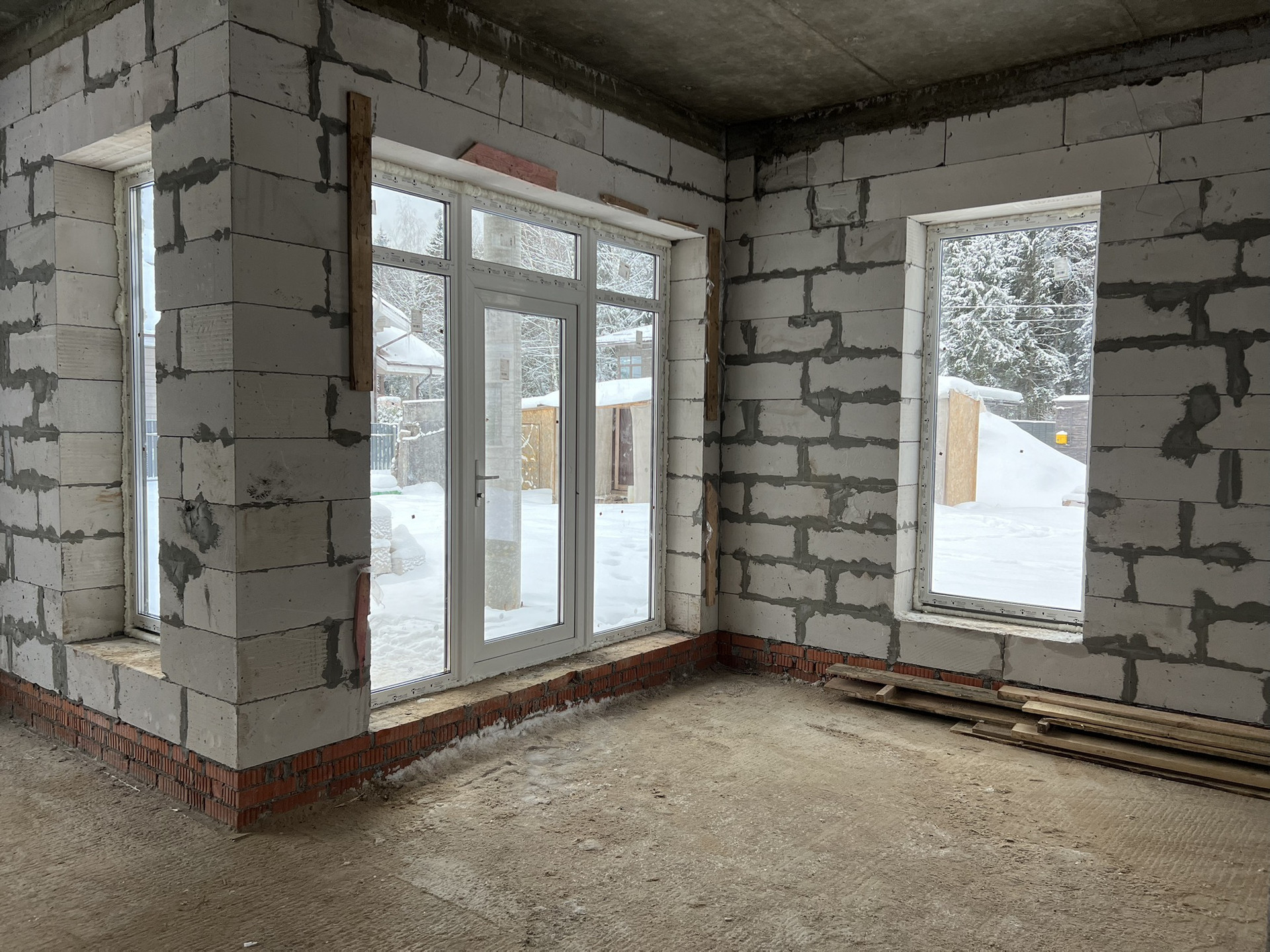 * Выполнено остекление дома, установлена входная дверь
