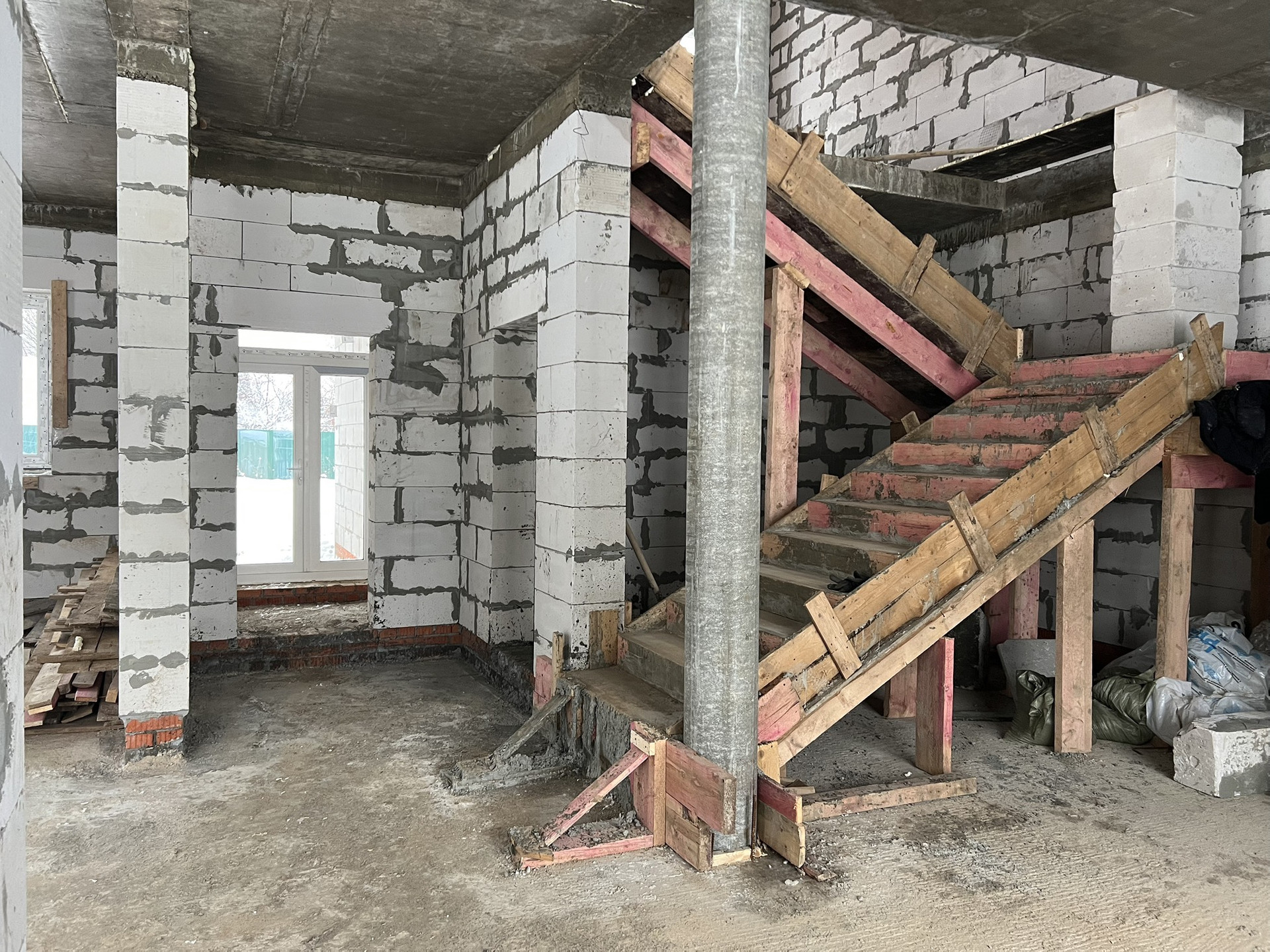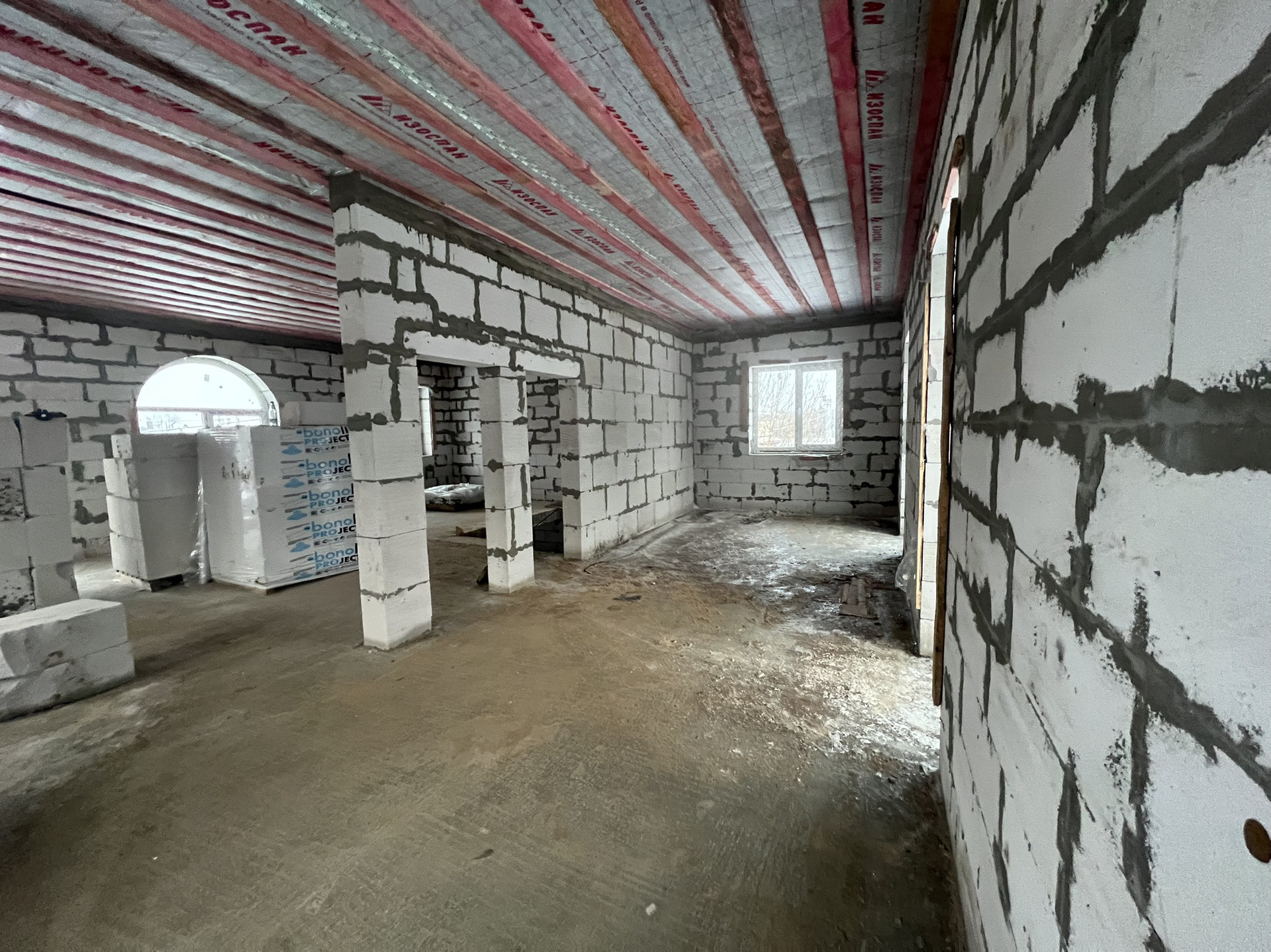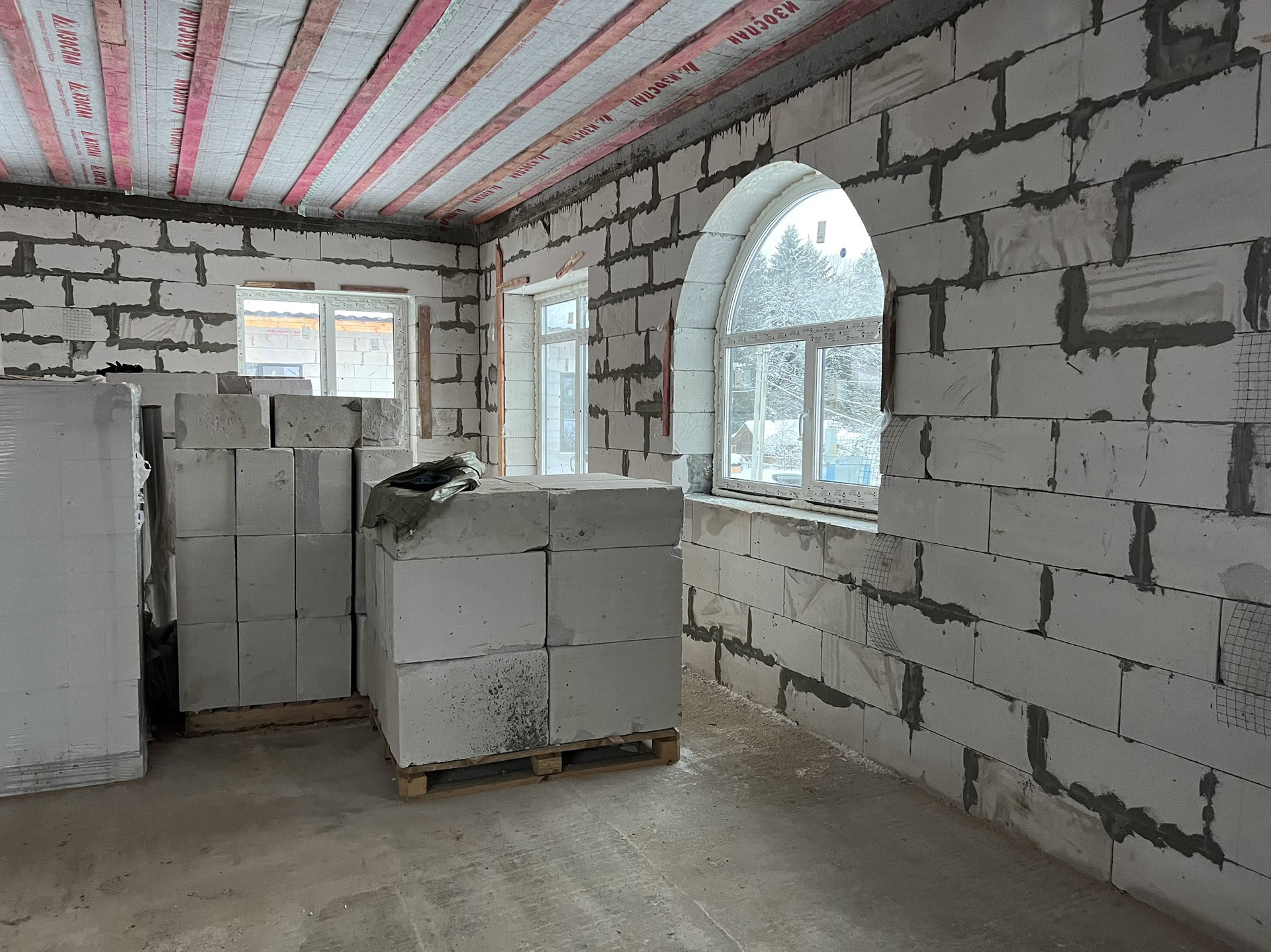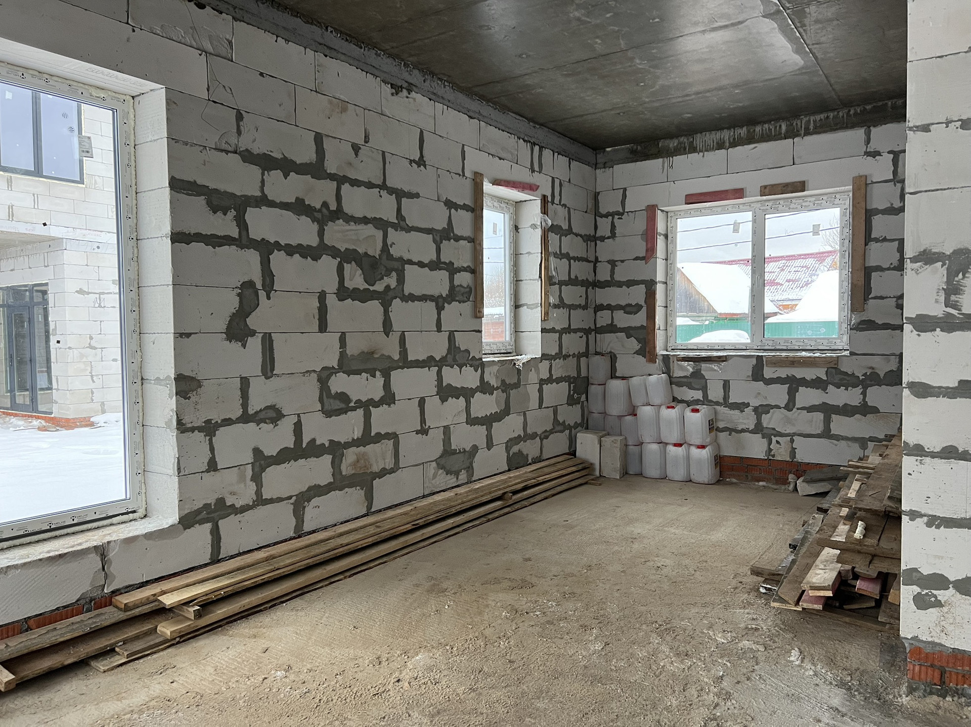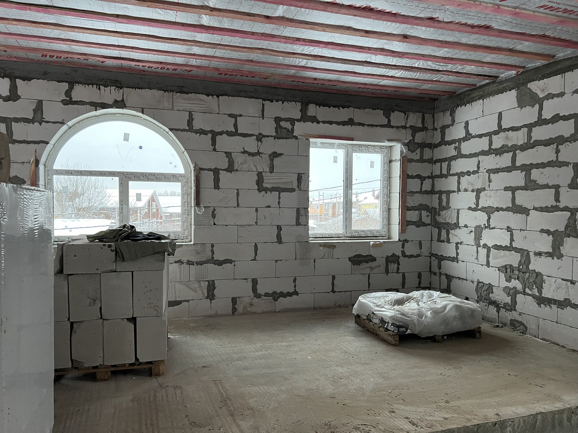 * Выполнено остекление дома, установлена входная дверь