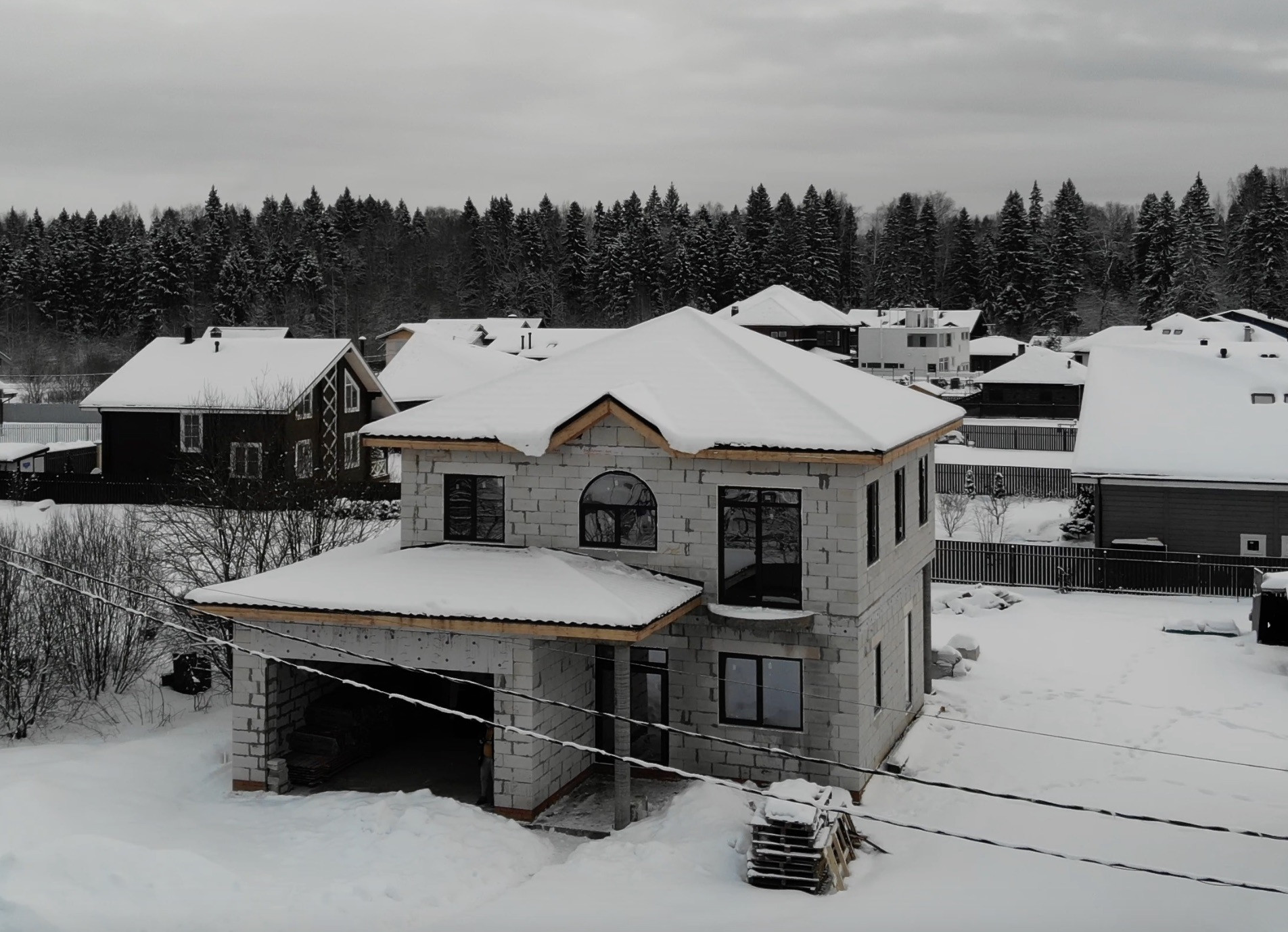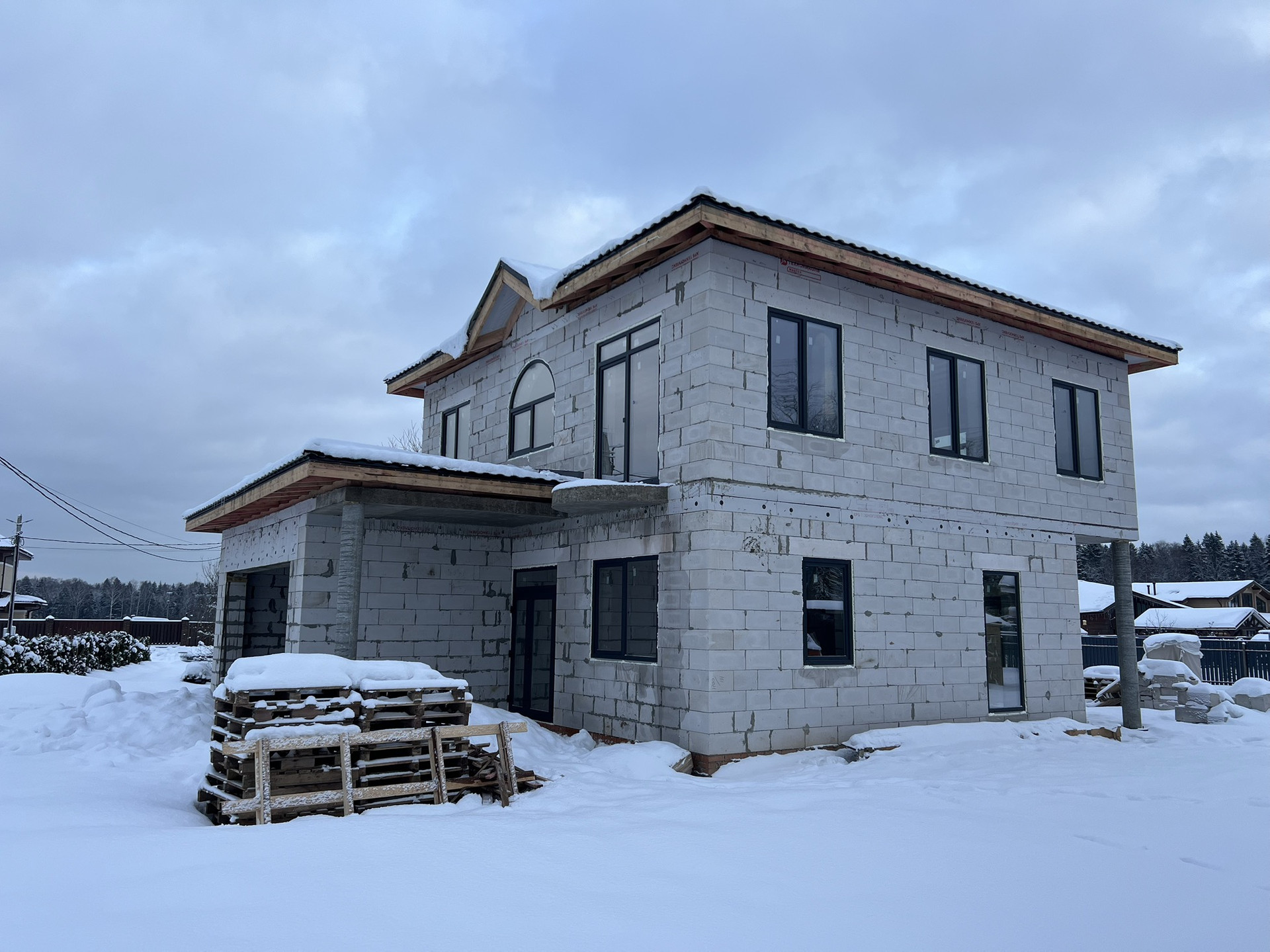 Продаётся дом на завершающейся стадии строительства с панорамными окнами, просторными комнатами и видом на хвойный лес!